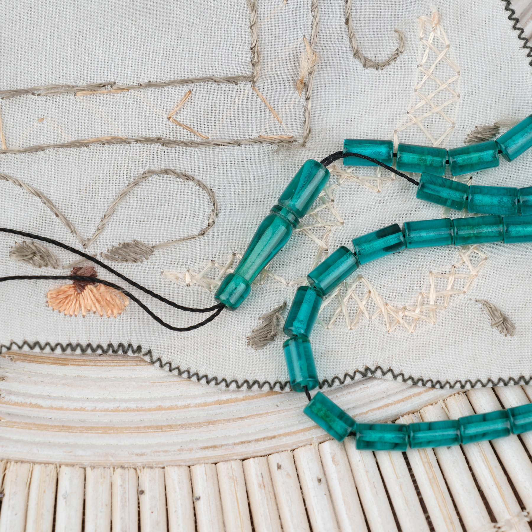 Ateş Kehribar Kesme Kesim 4x7mm Tesbih- Turkuaz Yeşili