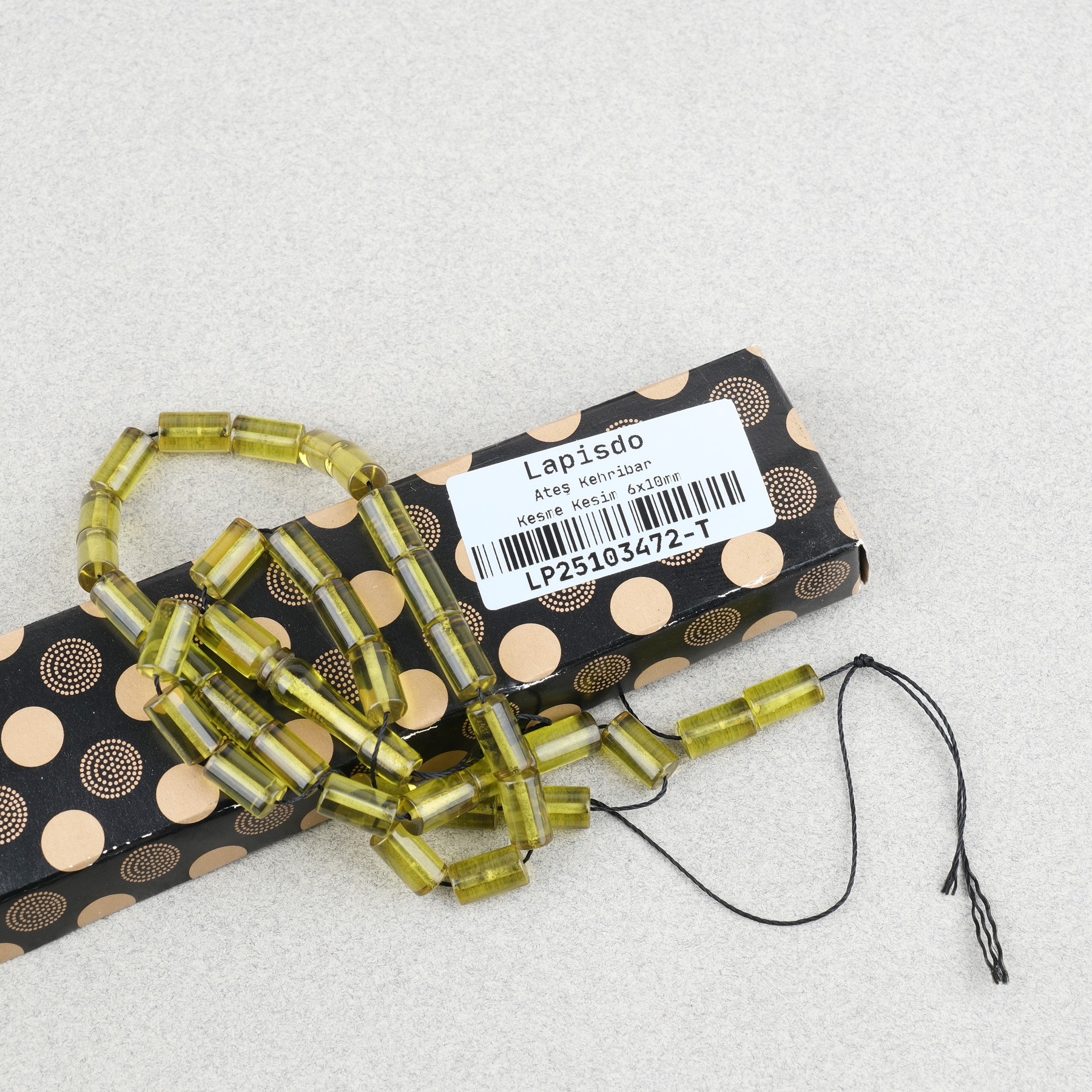 Ateş Kehribar Kesme Kesim 6x10mm Tesbih Püskülsüz