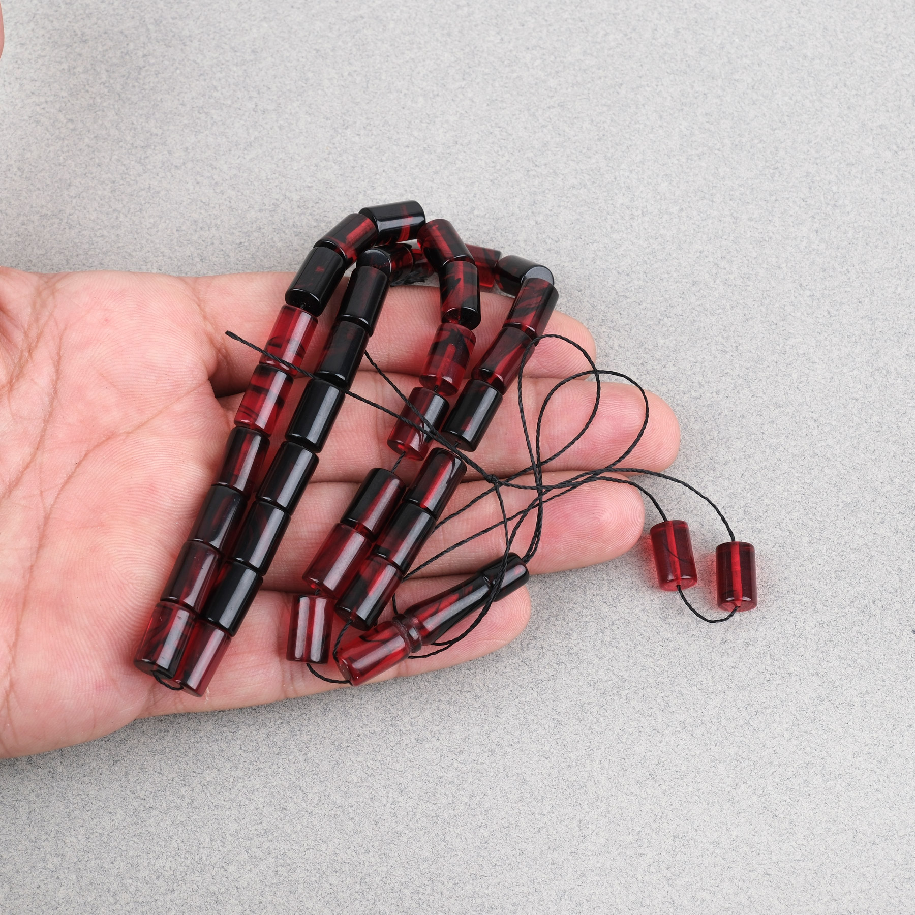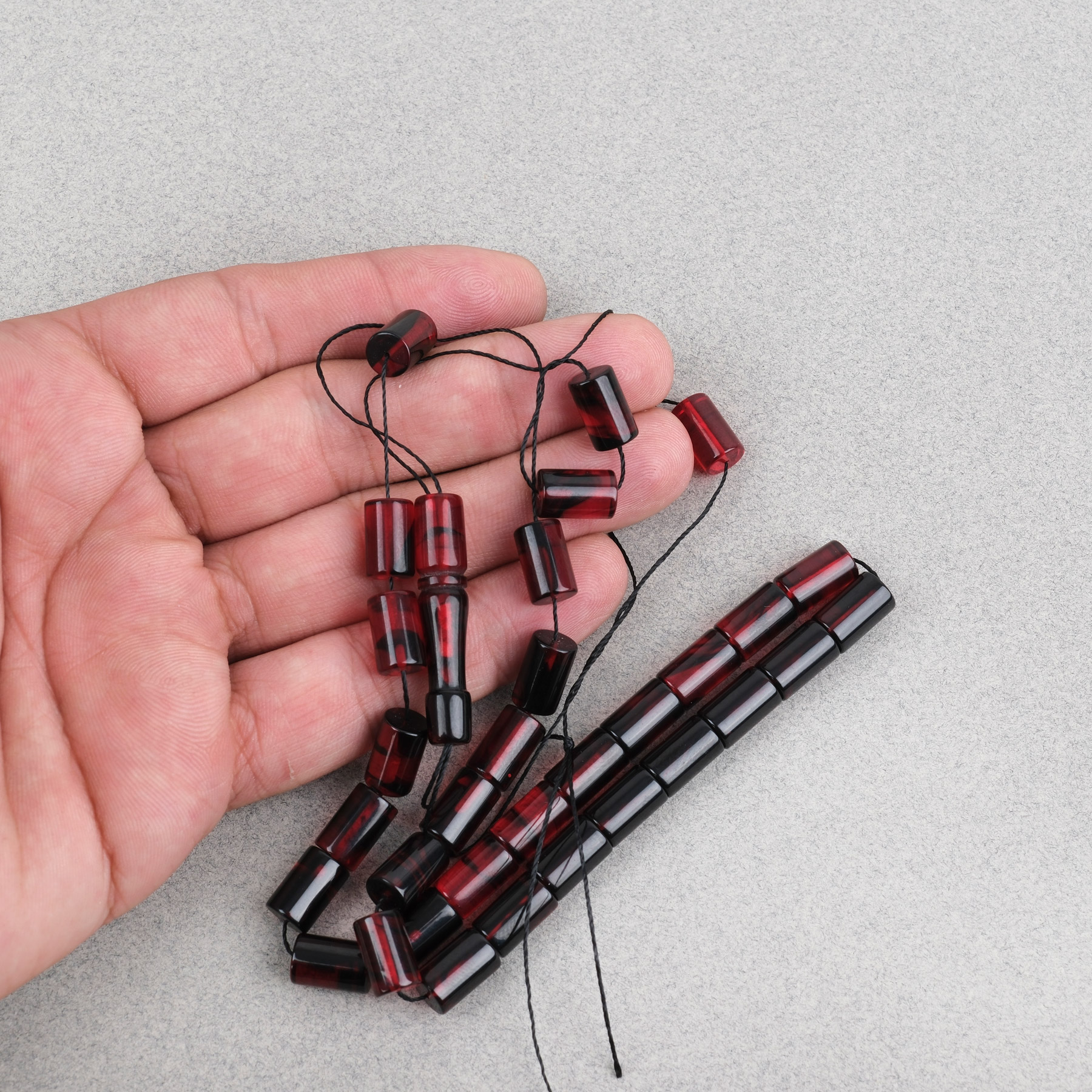 Ateş Kehribar Kesme Kesim 7x11mm Tesbih -Bordo