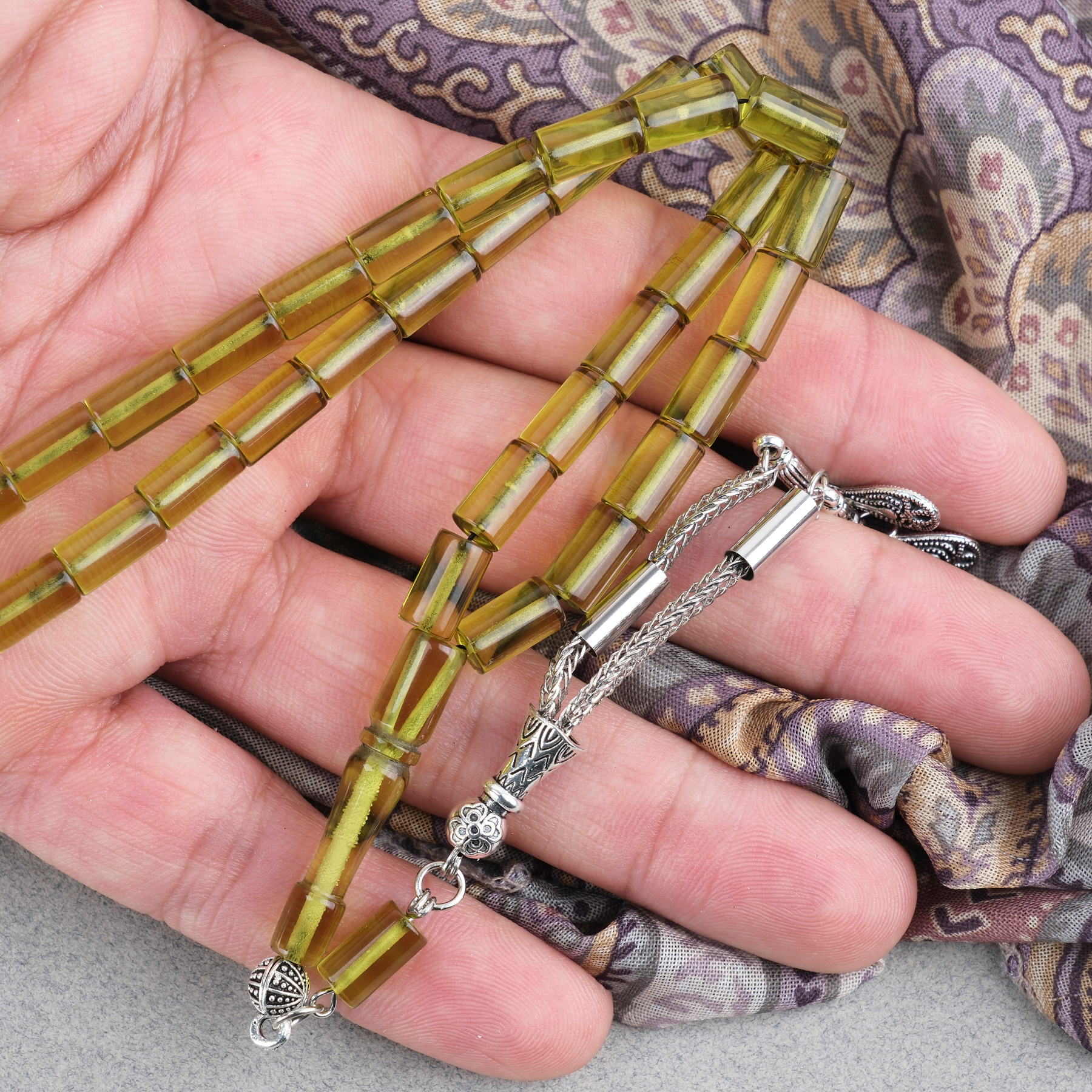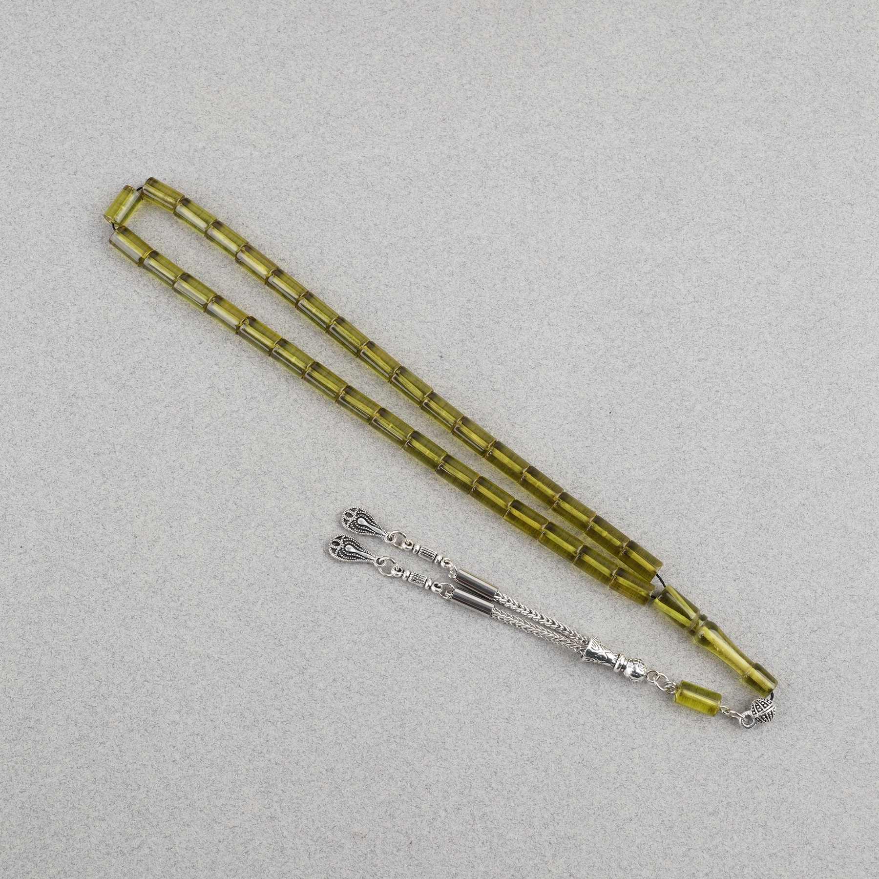 Ateş Kehribar Kesme Kesim Alpaka Püsküllü 6x10mm Tesbih