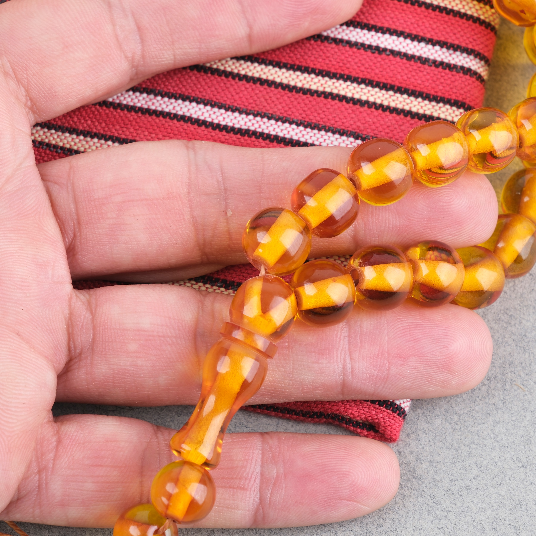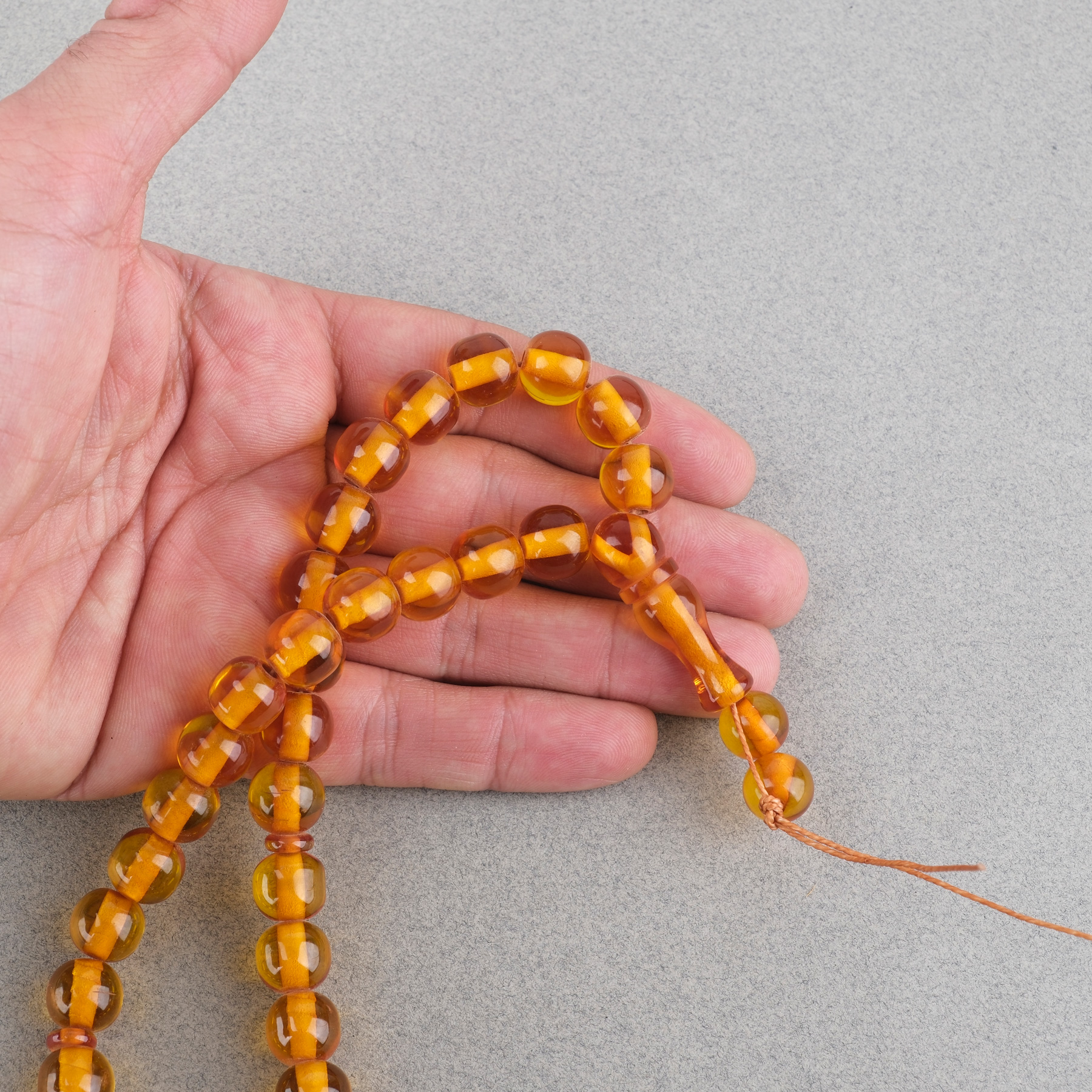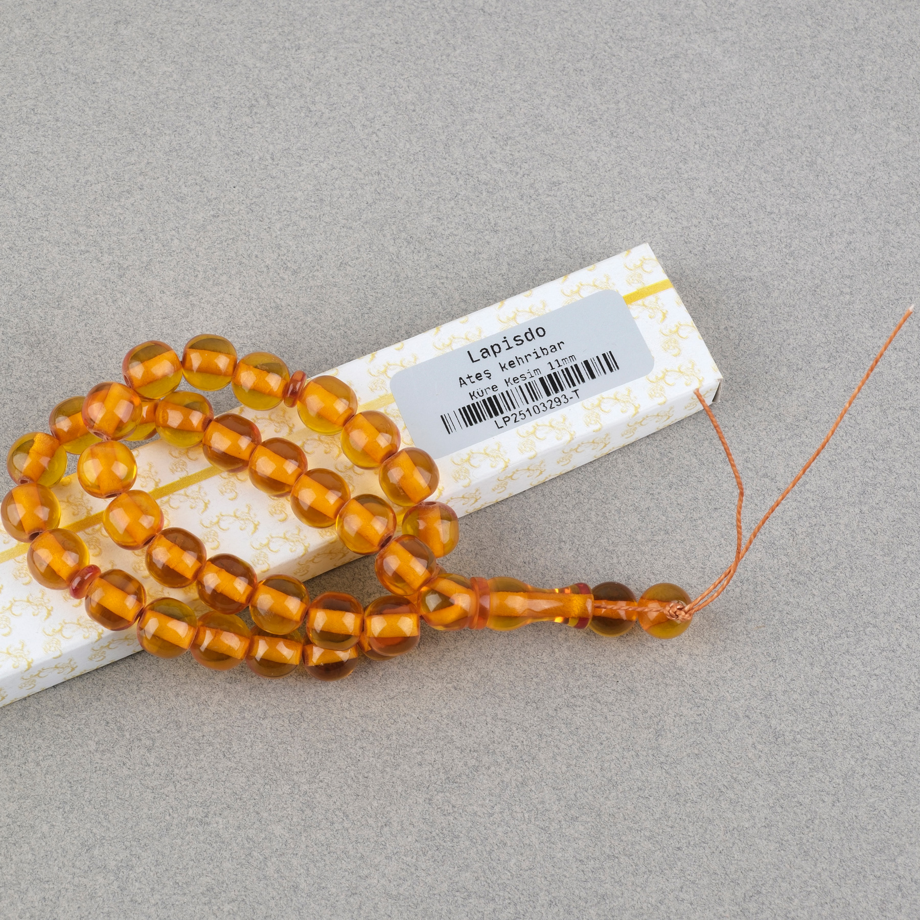Ateş Kehribar Küre Kesim 1mm Tesbih - Bal Sarısı Püskülsüz