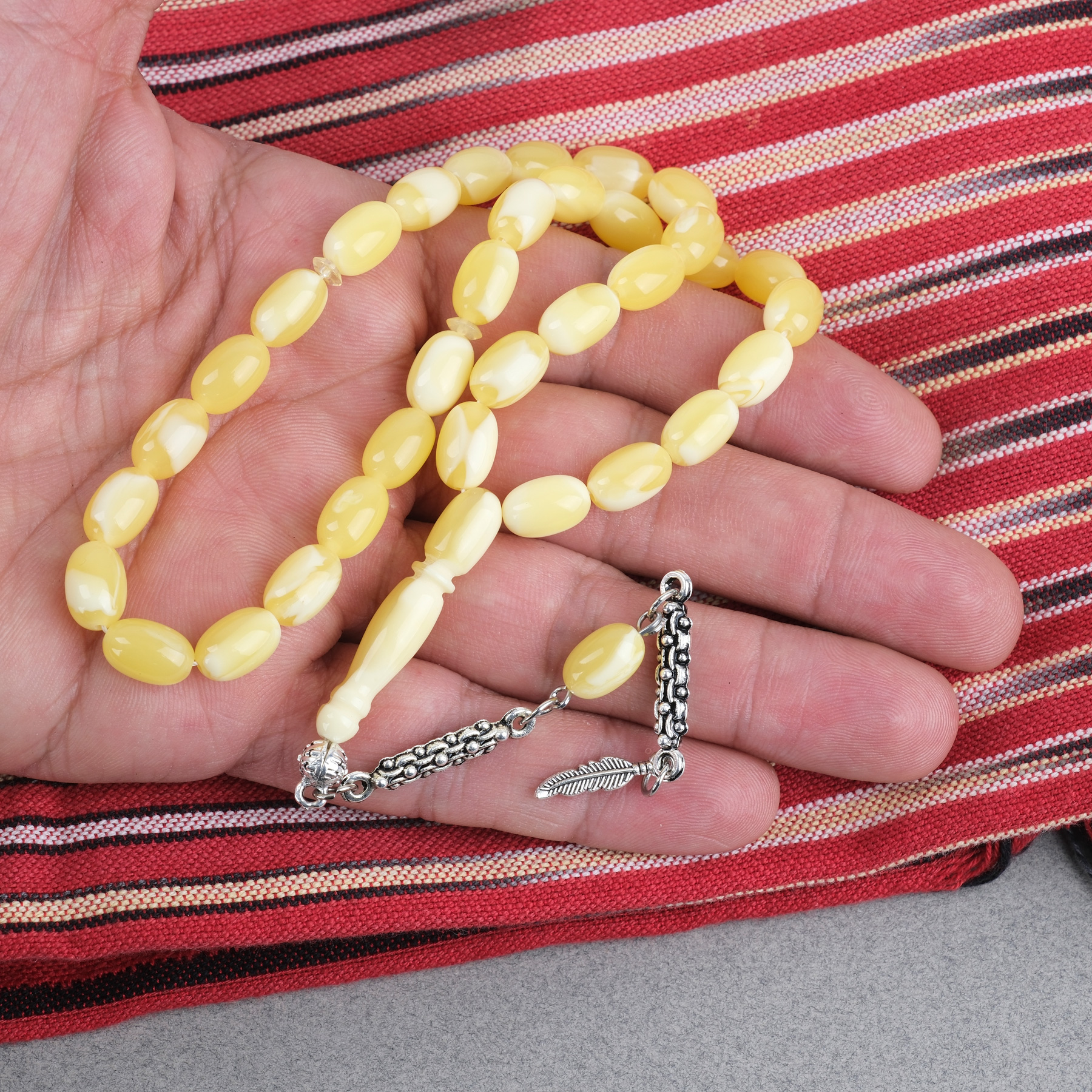 Beyrut Kehribar tesbihler, özel reçinelerin karıştırılması ile elde edilen yapay bir üründür,doğal değildir. Damla kehribara olan benzirliğinden dolayı BEYRUT DAMLASI adını almıştır.