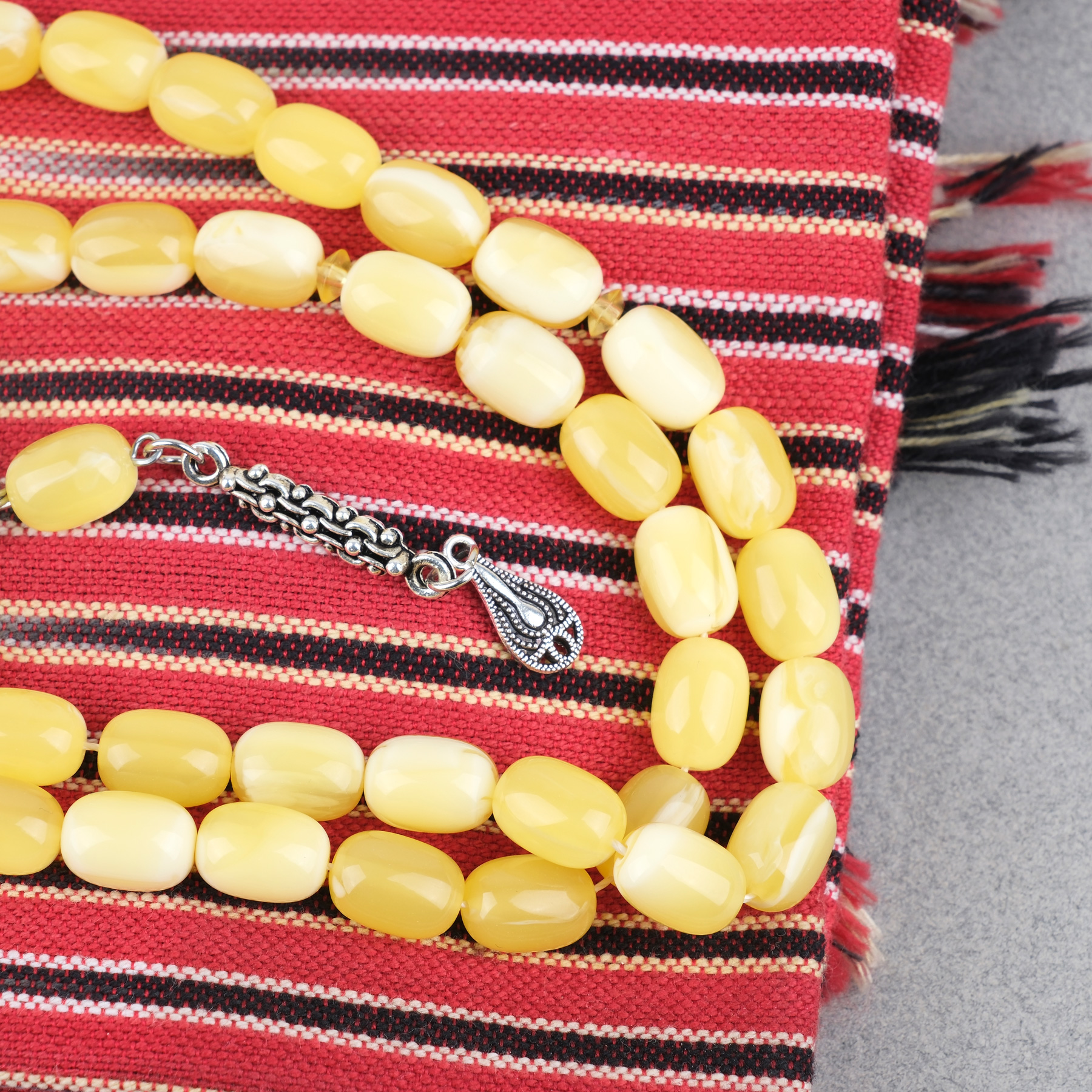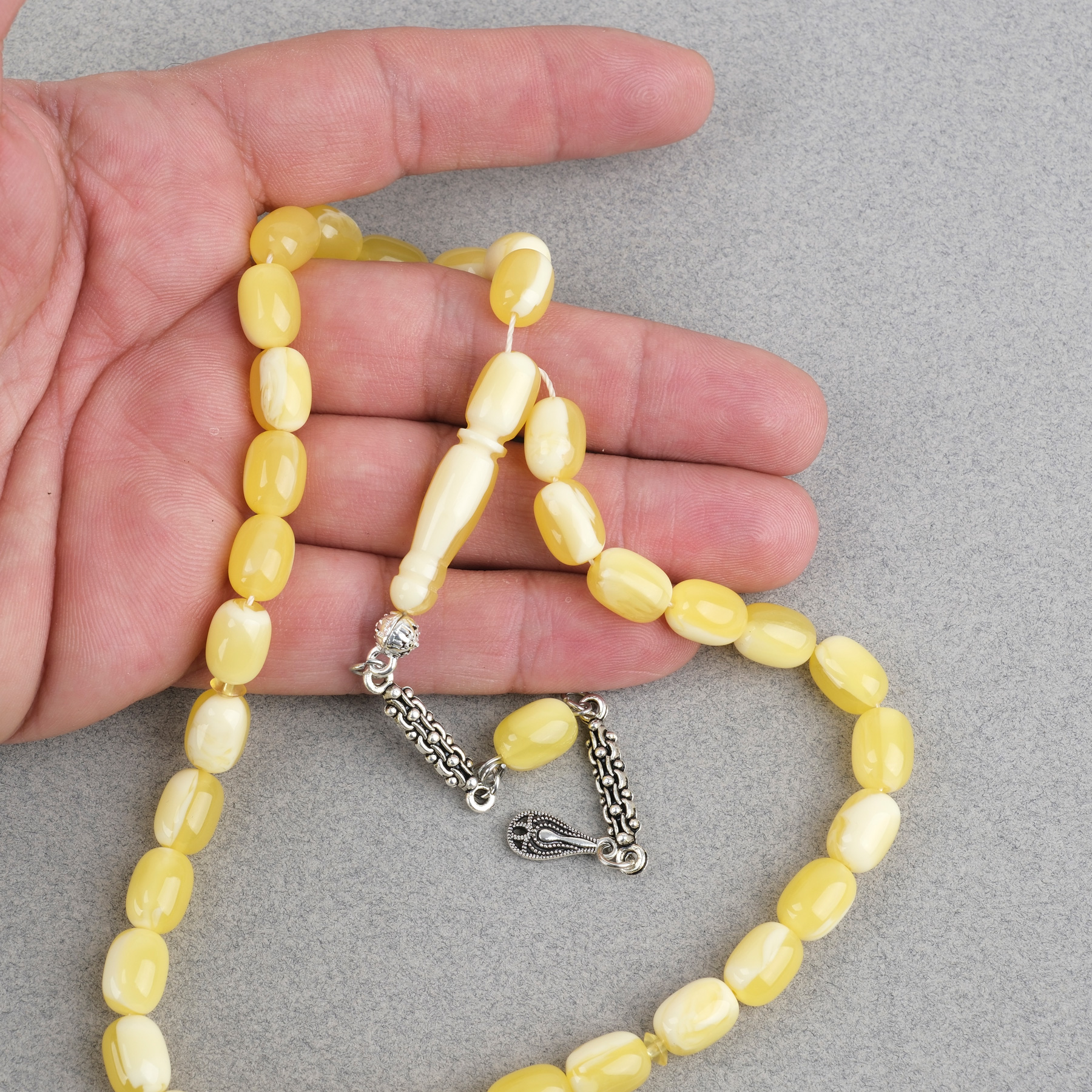 Beyrut Kehribar tesbihler, özel reçinelerin karıştırılması ile elde edilen yapay bir üründür,doğal değildir. Damla kehribara olan benzirliğinden dolayı BEYRUT DAMLASI adını almıştır.