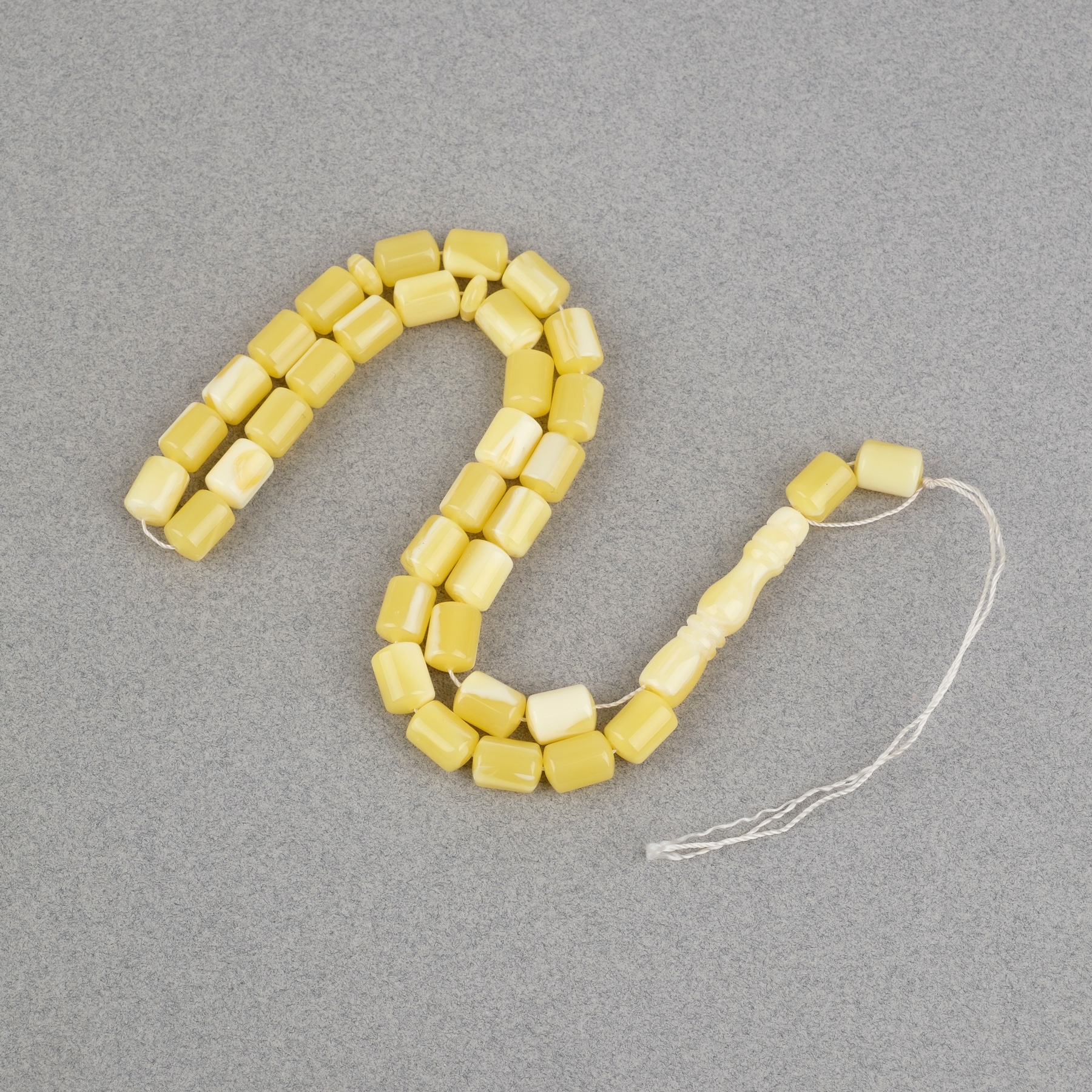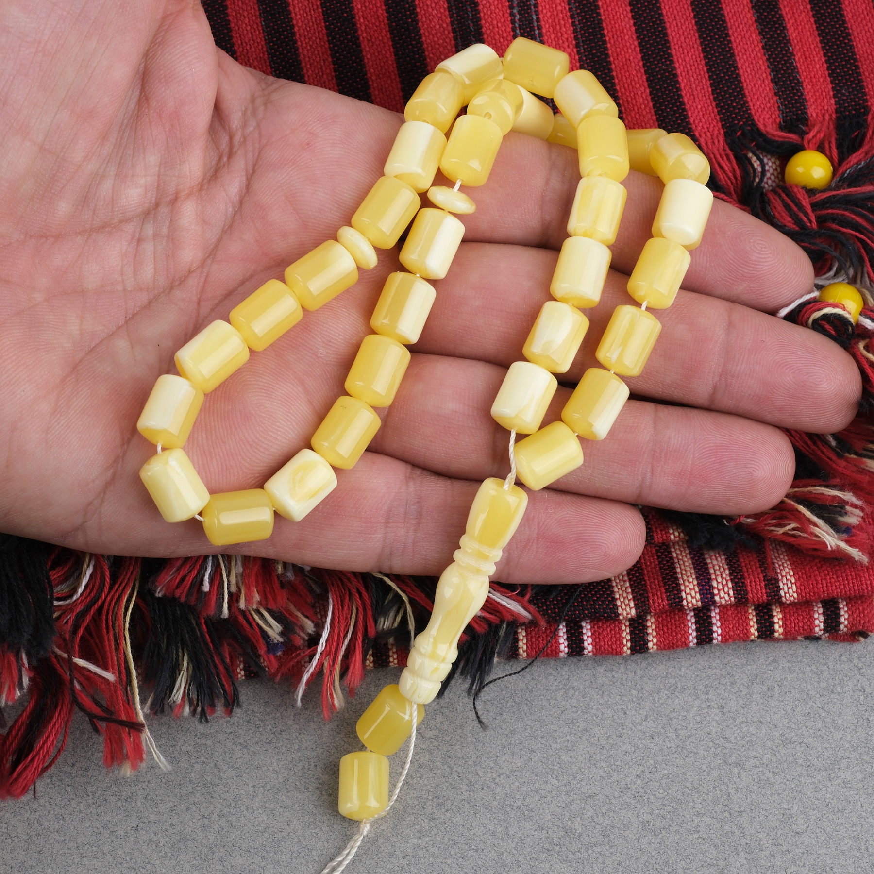 Beyrut Kehribar tesbihler, özel reçinelerin karıştırılması ile elde edilen yapay bir üründür,doğal değildir. Damla kehribara olan benzirliğinden dolayı BEYRUT DAMLASI adını almıştır.