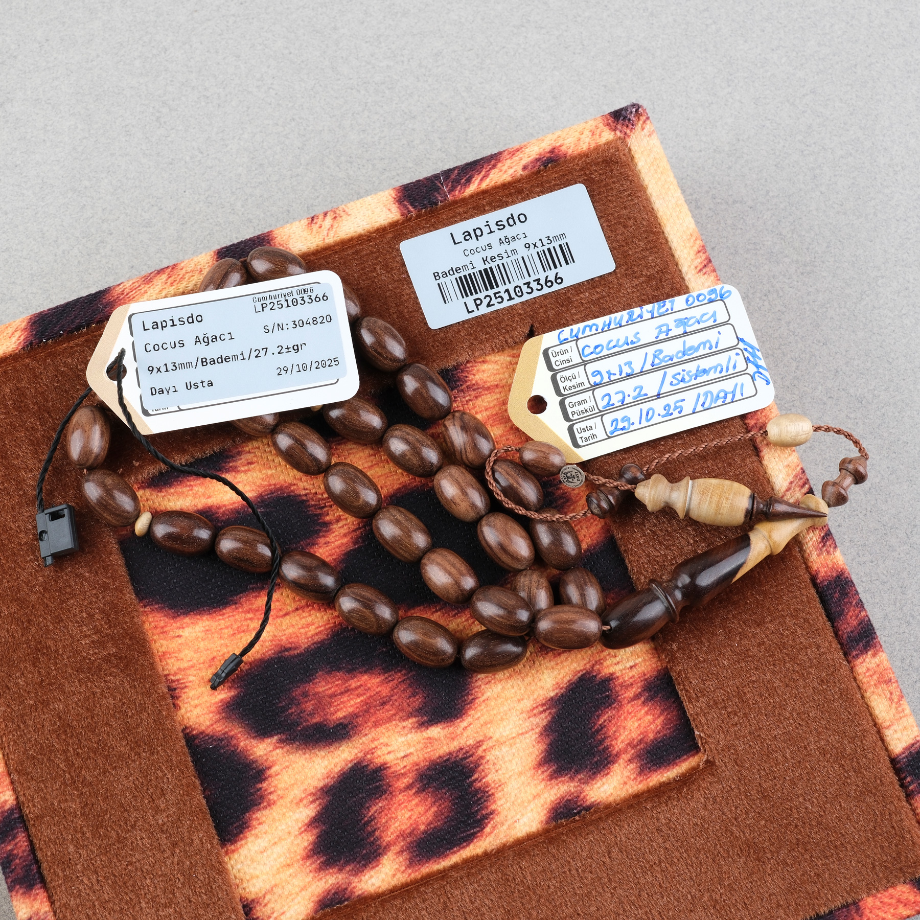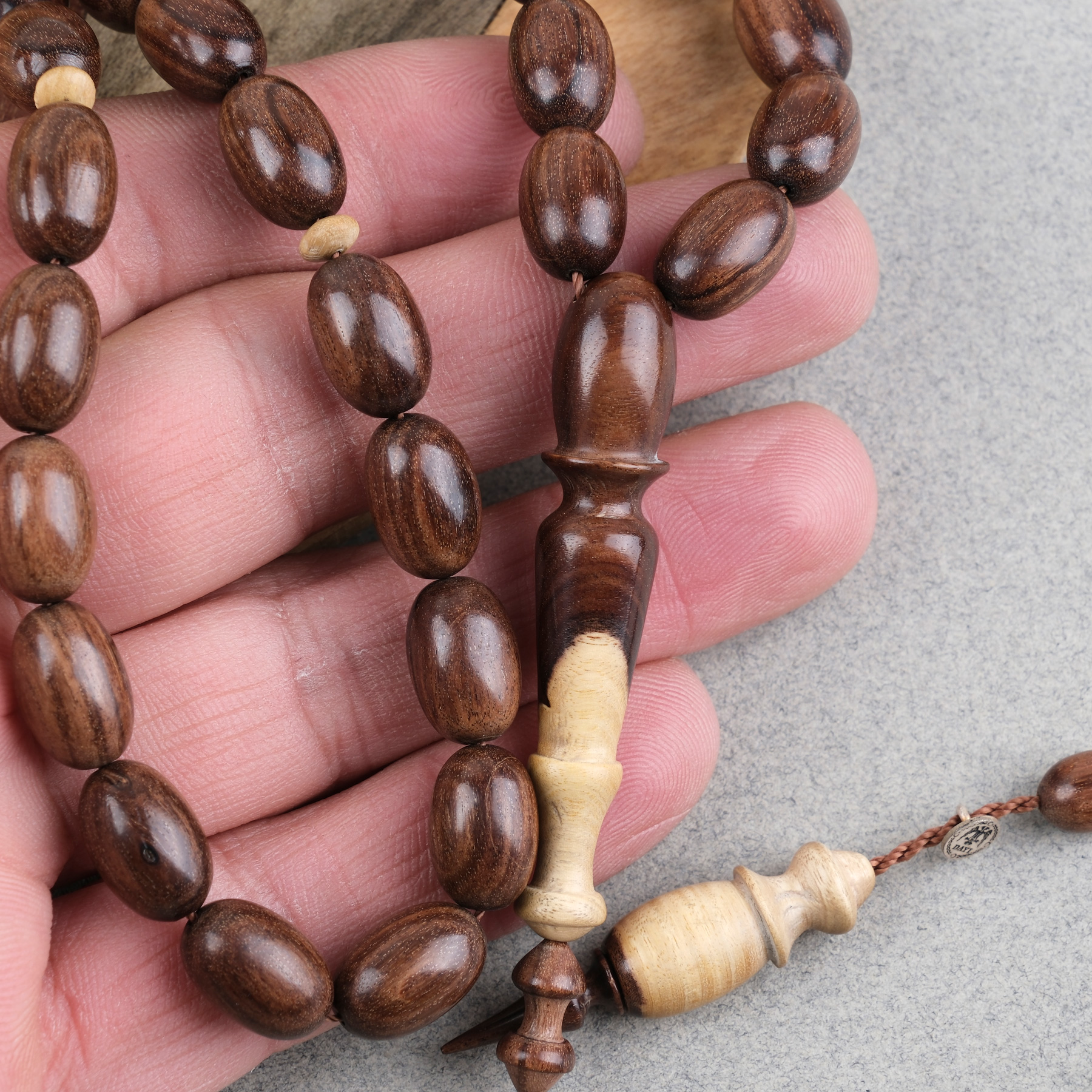 Cocus Ağacı Usta İşi İmzalı Bademi Kesim 9x13mm Tesbih
