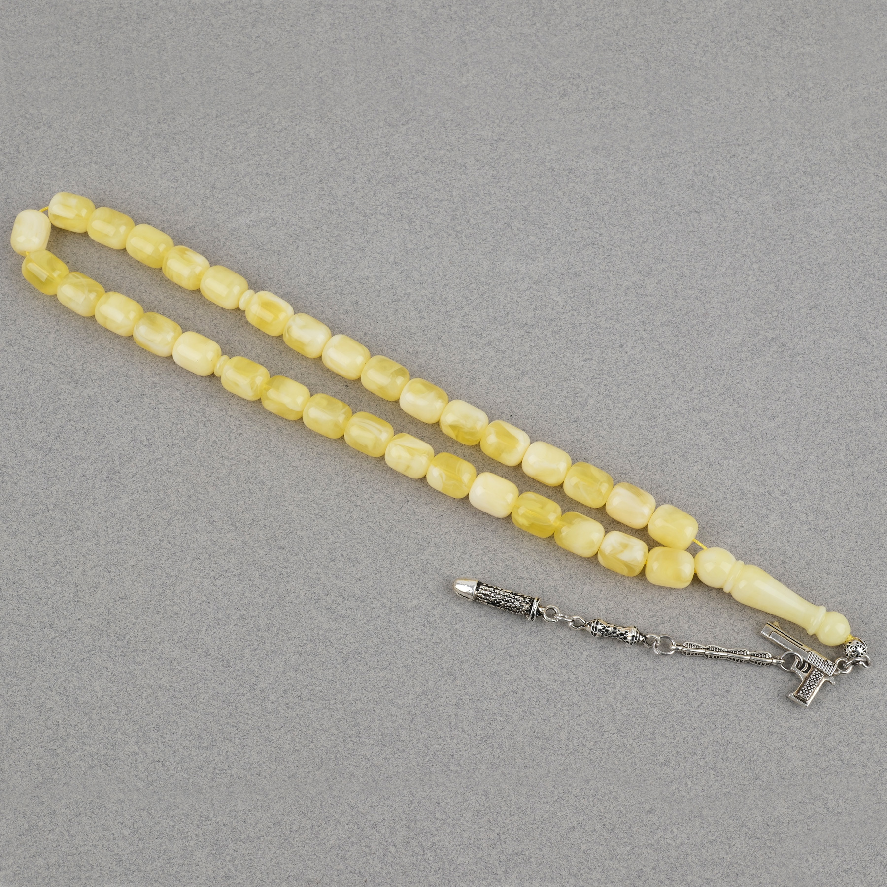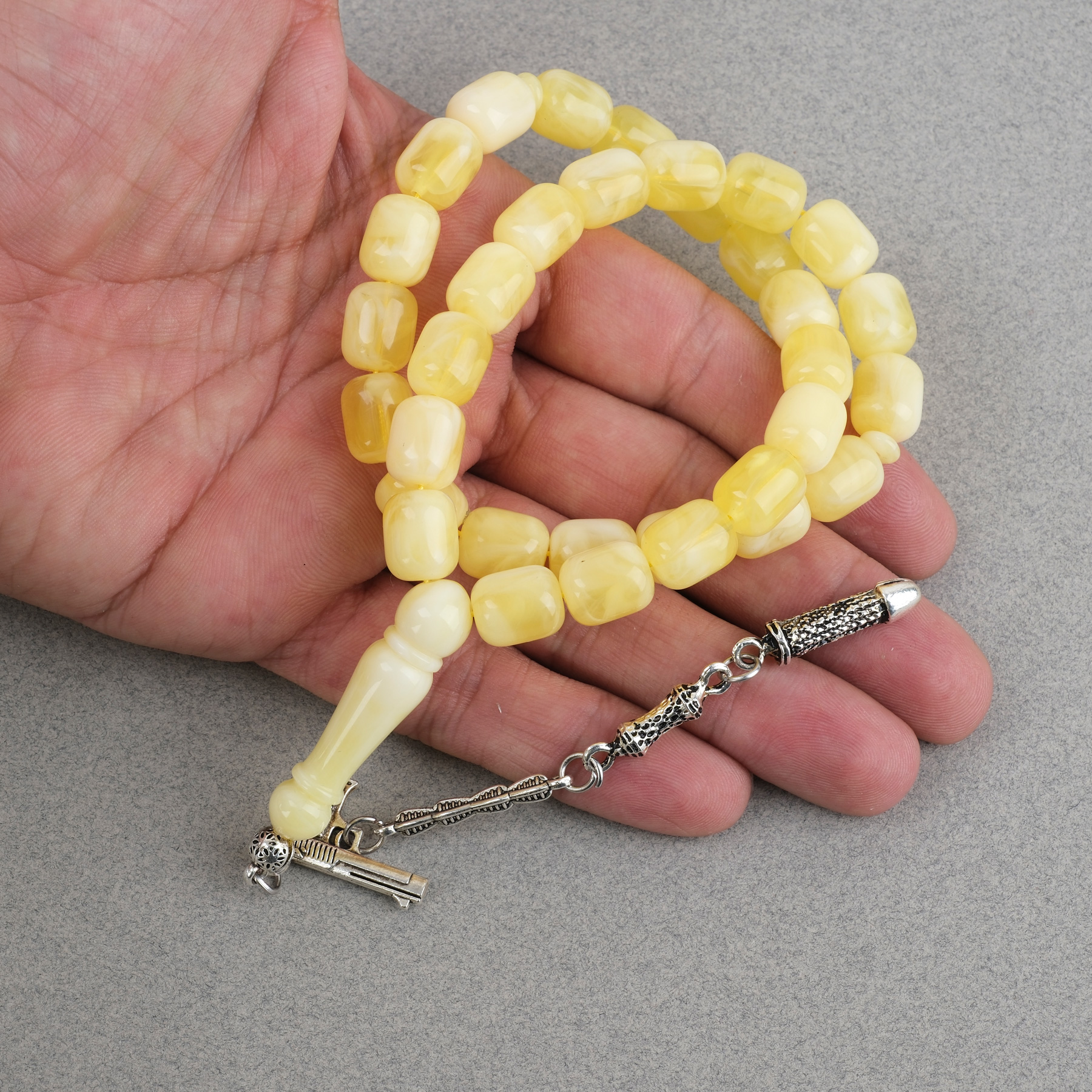 Damla Kehribar Alpaka Püsküllü Kapsül Kesim 10x12mm Tesbih