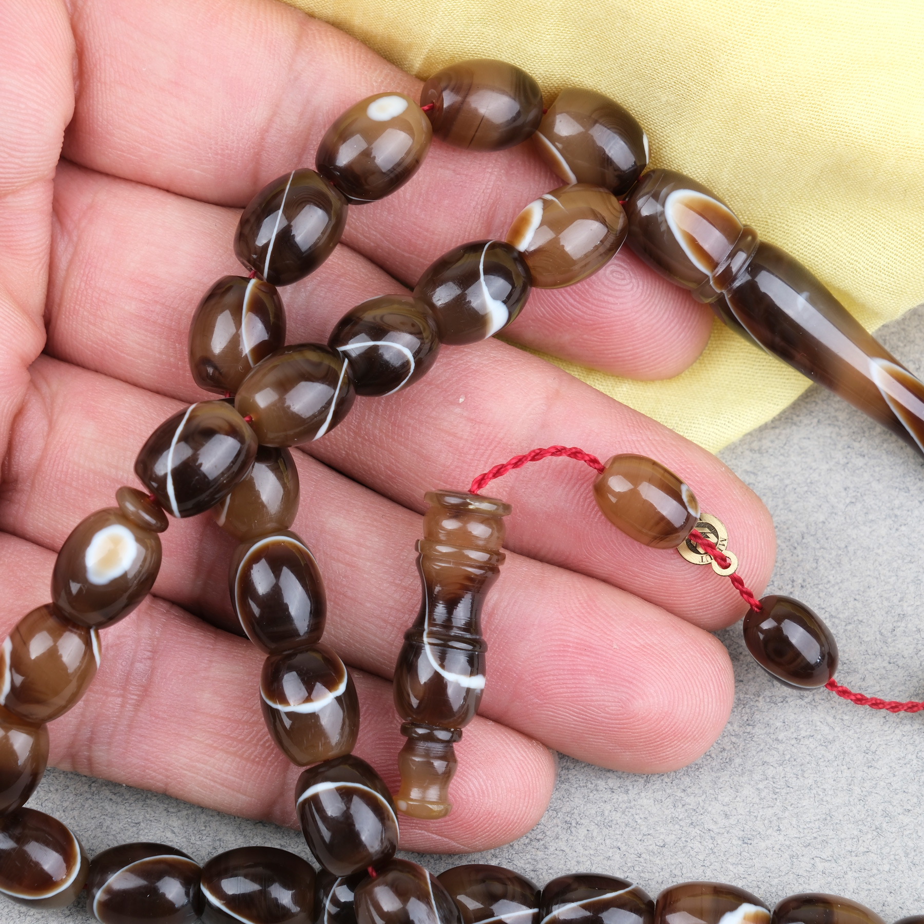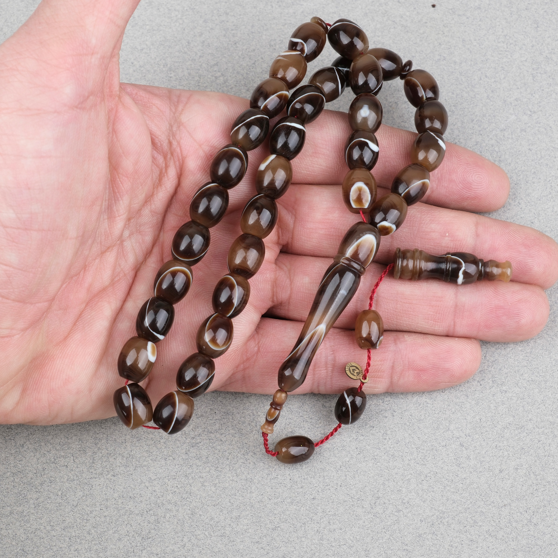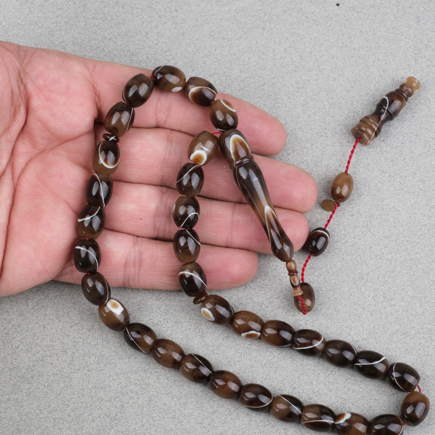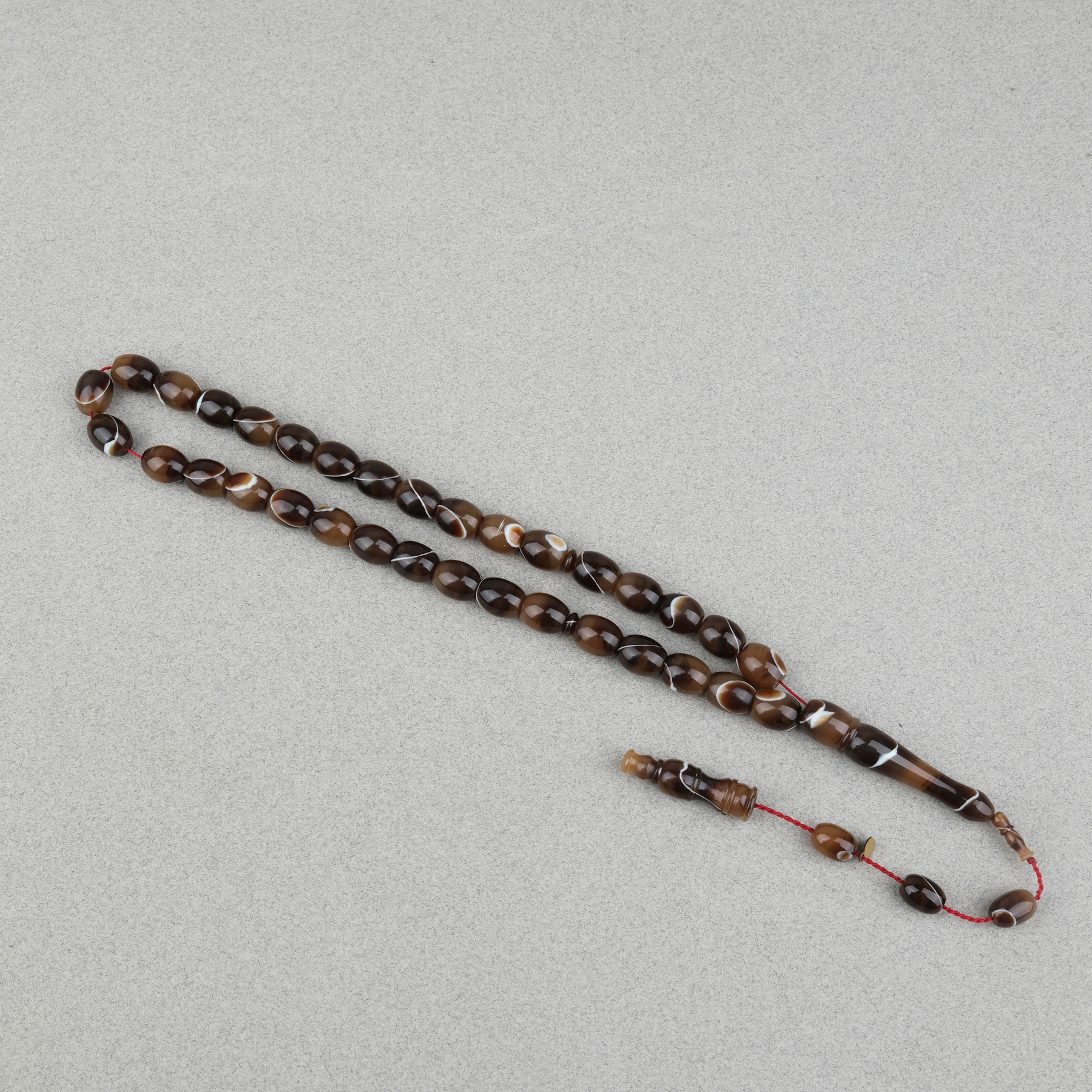 Eski Fransız Galalit Fıçı Kesim Mesut Varlı Usta İşi 9x11mm Tesbih - Kahverengi Beyaz