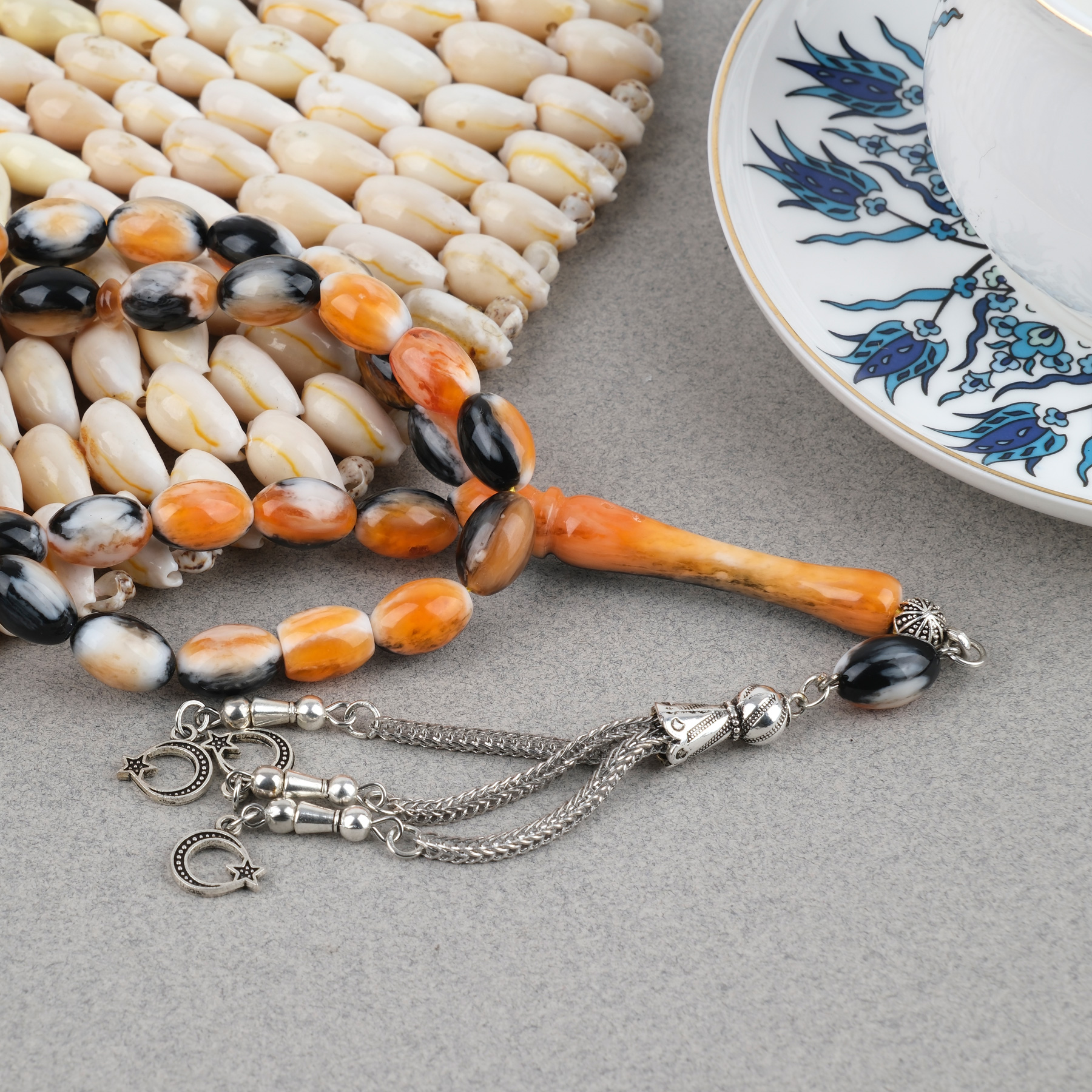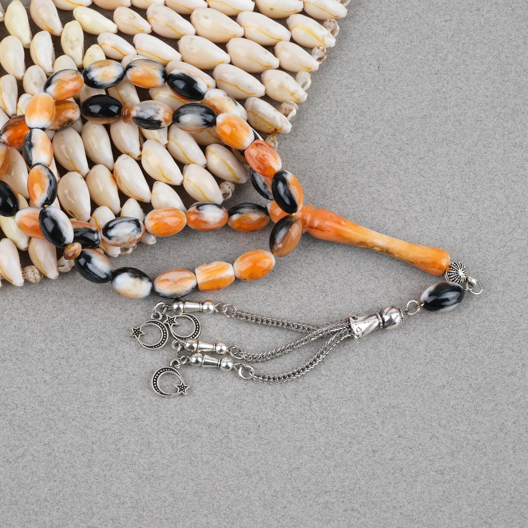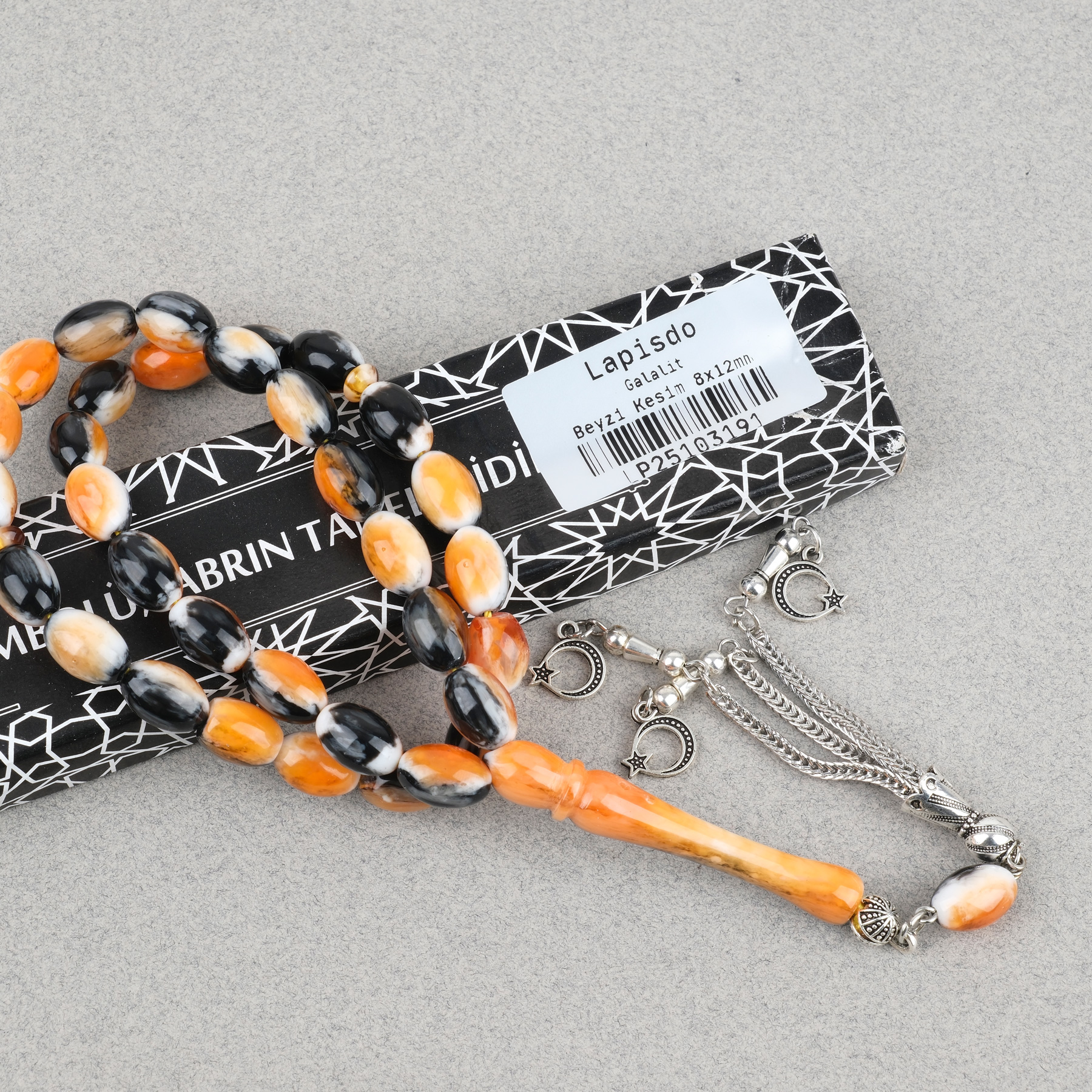 Galalit Alpaka Püsküllü Beyzi Kesim 8x12mm Tesbih