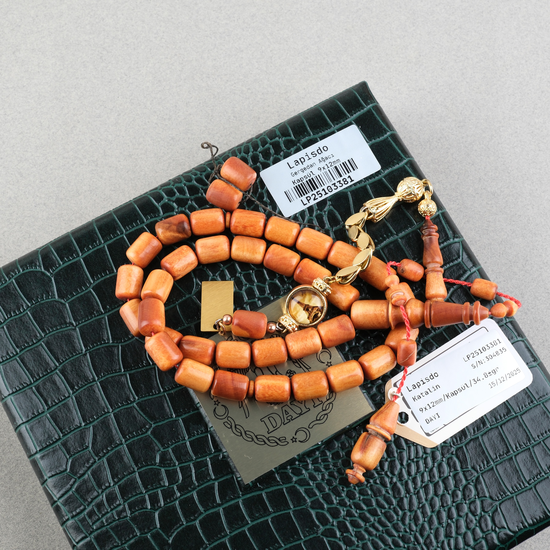Gergedan Ağacı Usta İşi İmzalı Değişen İmameli Kapsül Kesim 9x12mm Tesbih