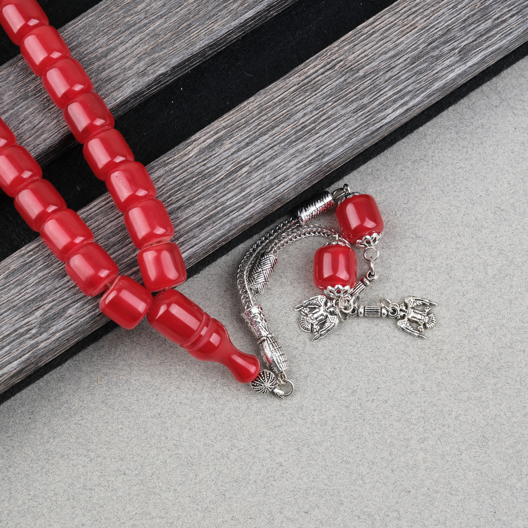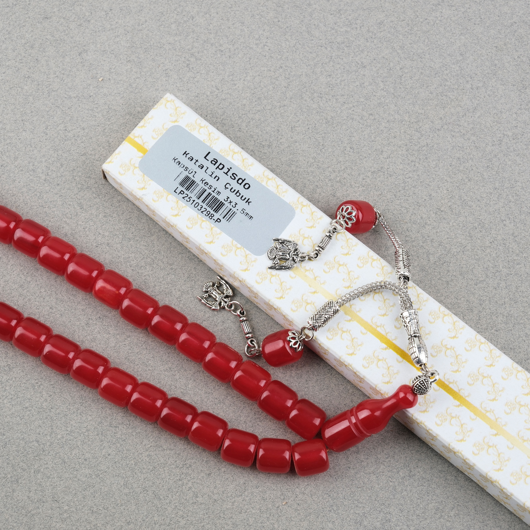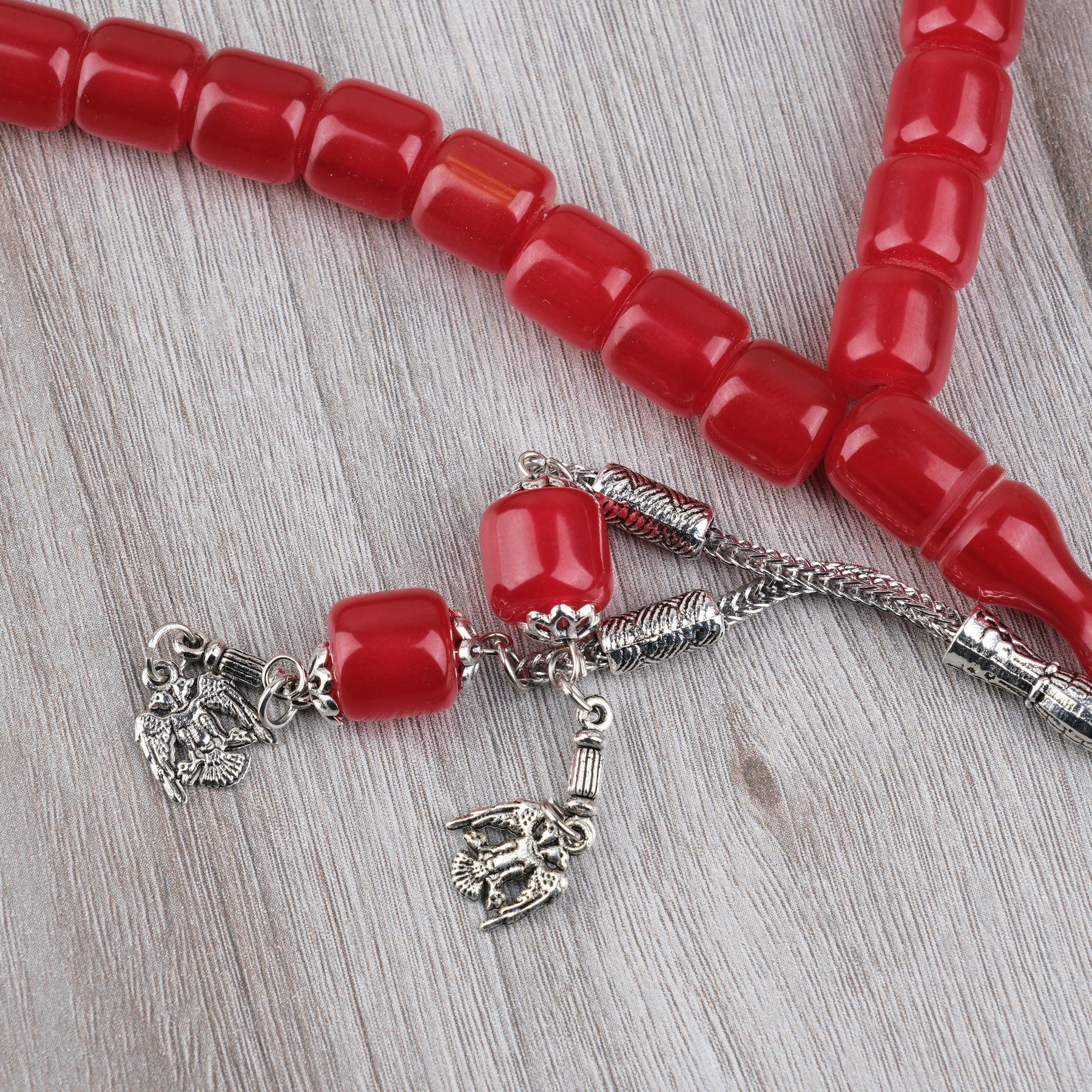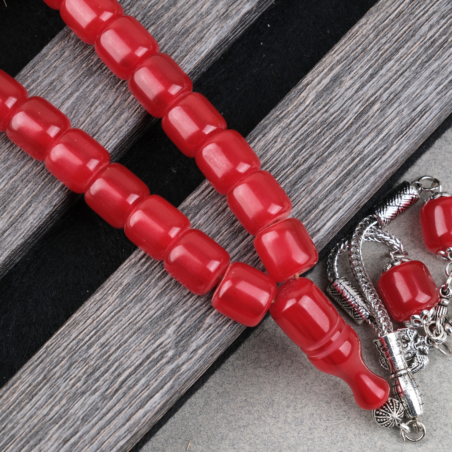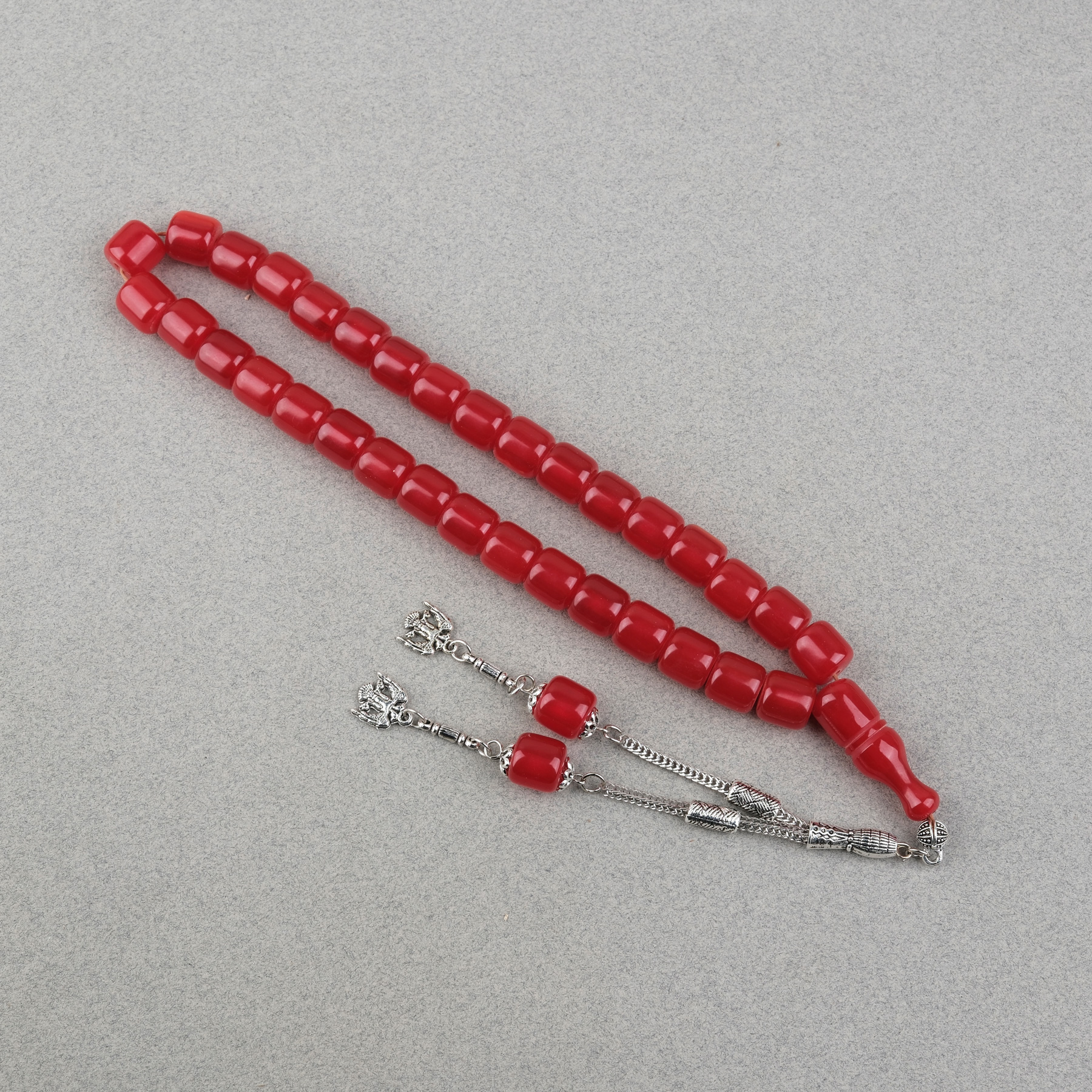 Katalin Çubuk Alpaka Püsküllü Kapsül Kesim 10.5x11mm Tesbih - Kırmızı