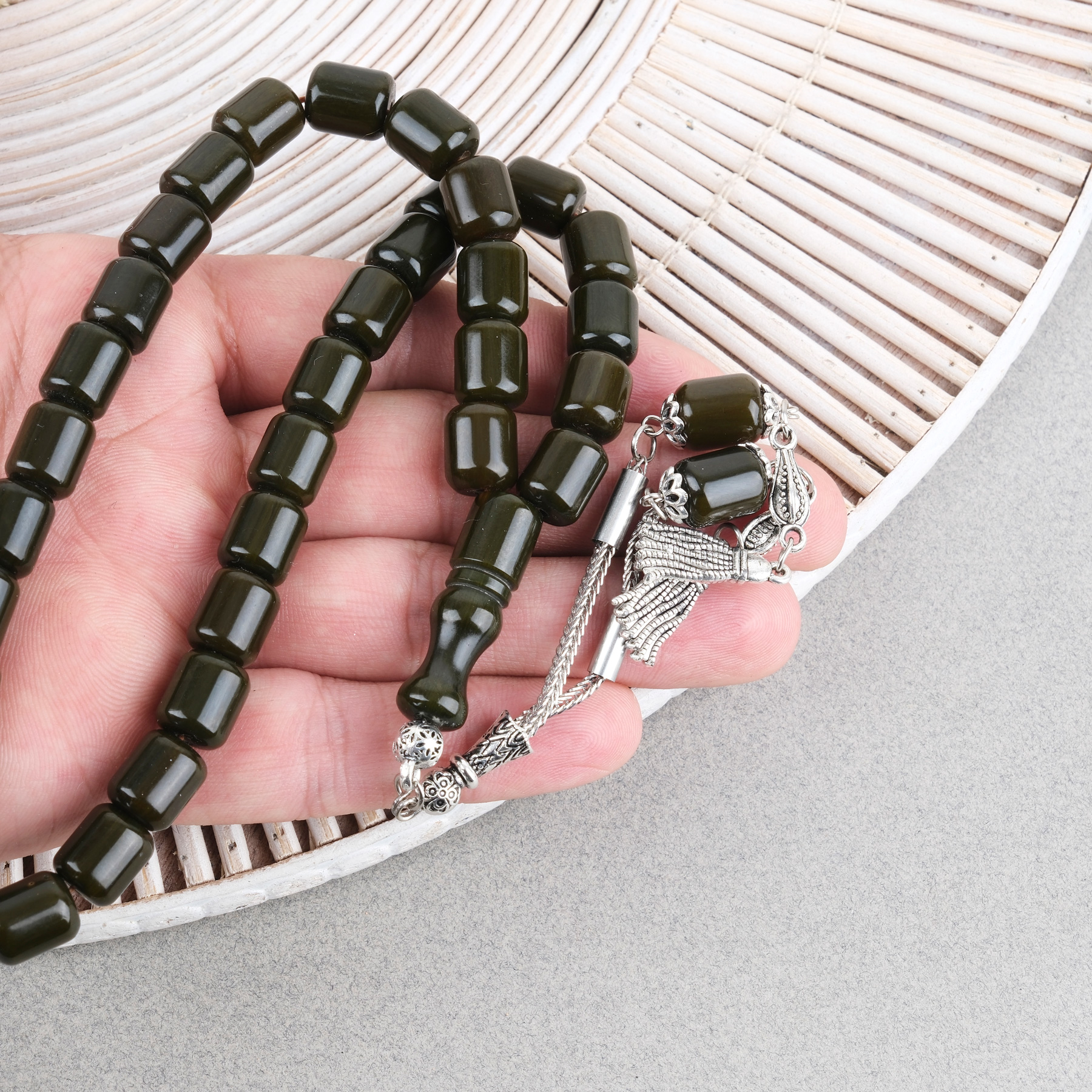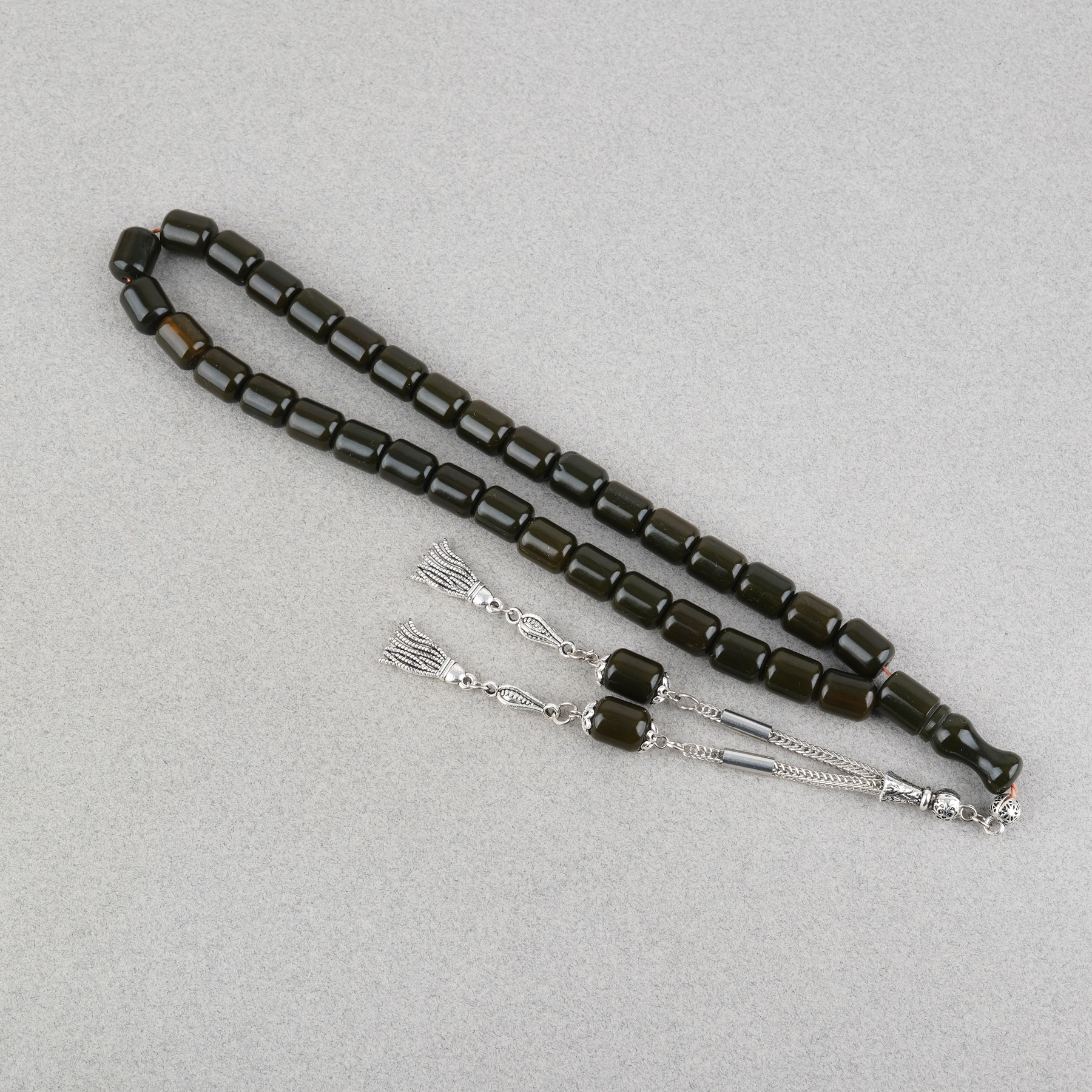 Katalin Çubuk Alpaka Püsküllü Kapsül Kesim 9x11mm Tesbih -Haki