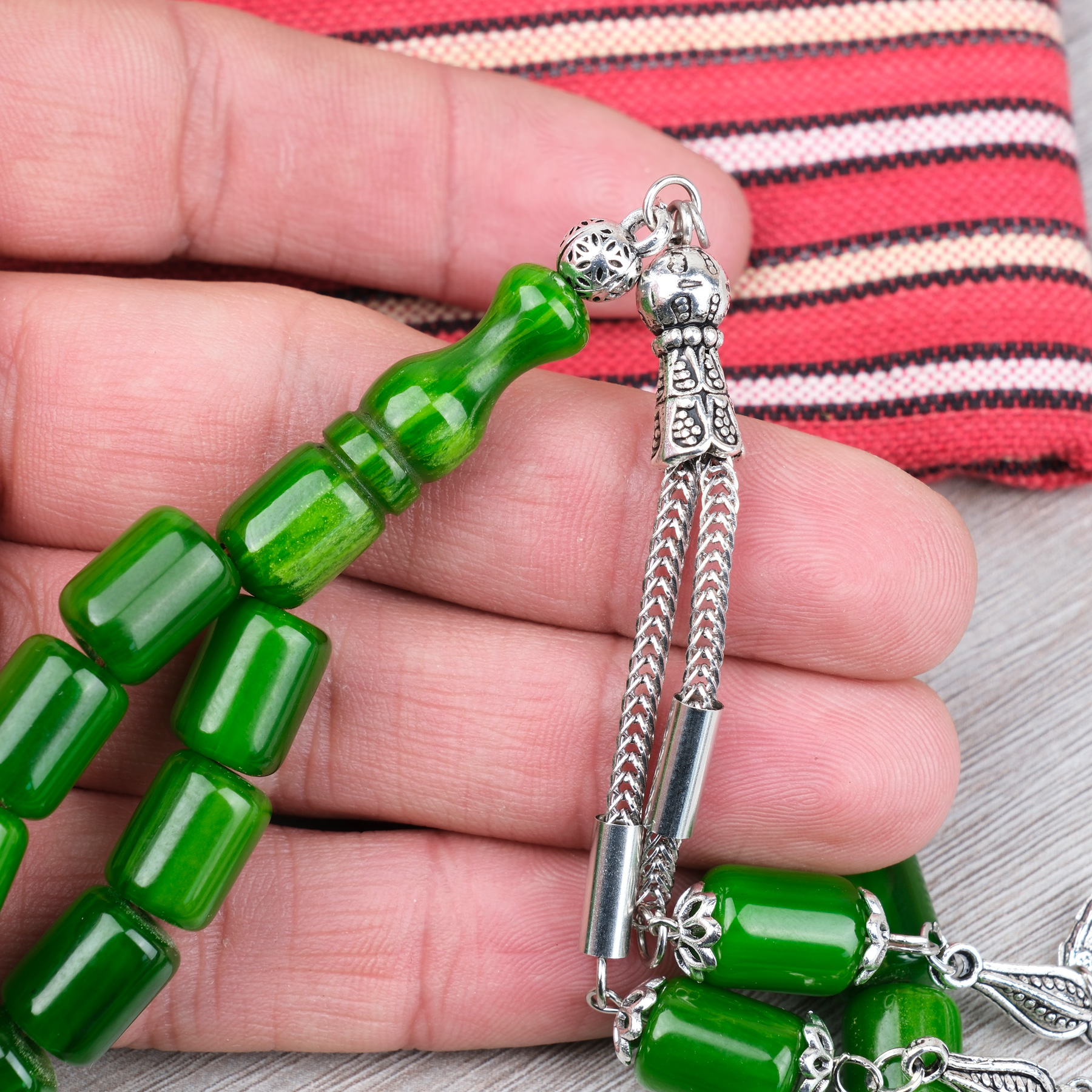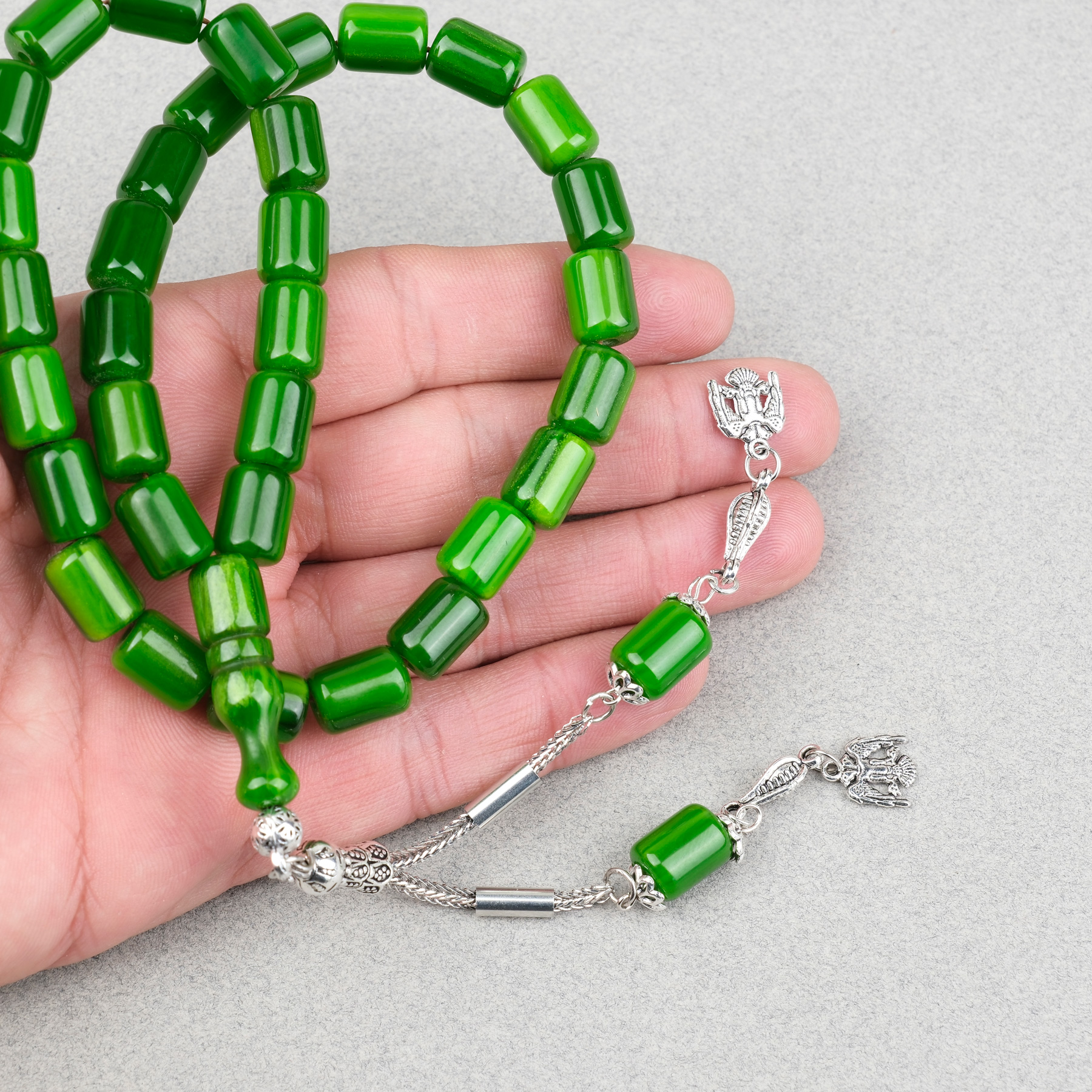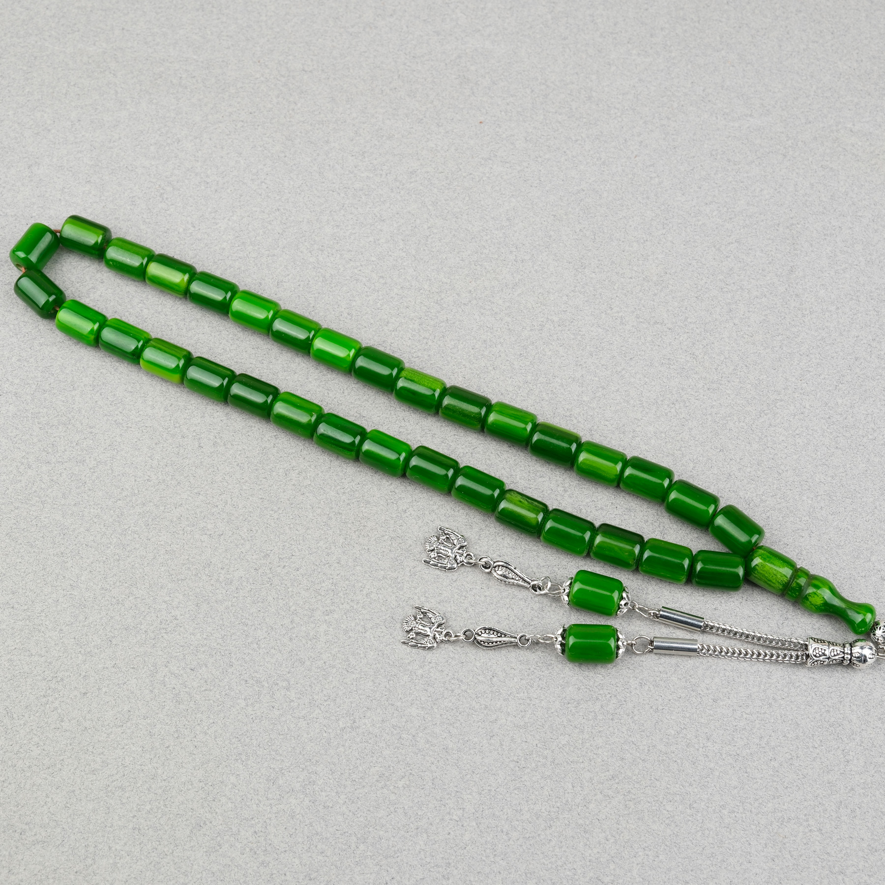 Katalin Çubuk Alpaka Püsküllü Kapsül Kesim 9x13mm Tesbih - Yeşil