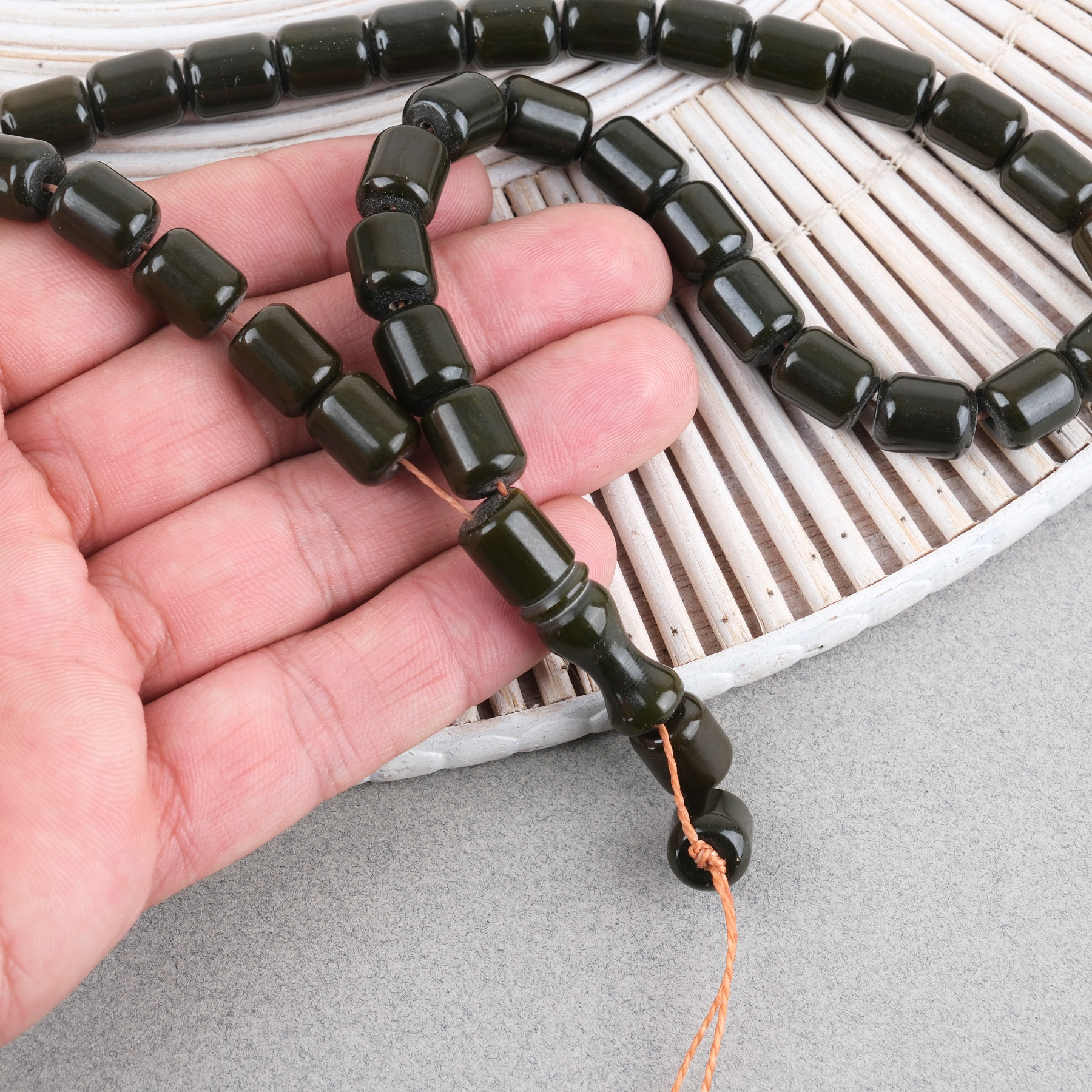 Katalin Çubuk Kapsül Kesim 9x11mm Tesbih -Haki Püksülsüz