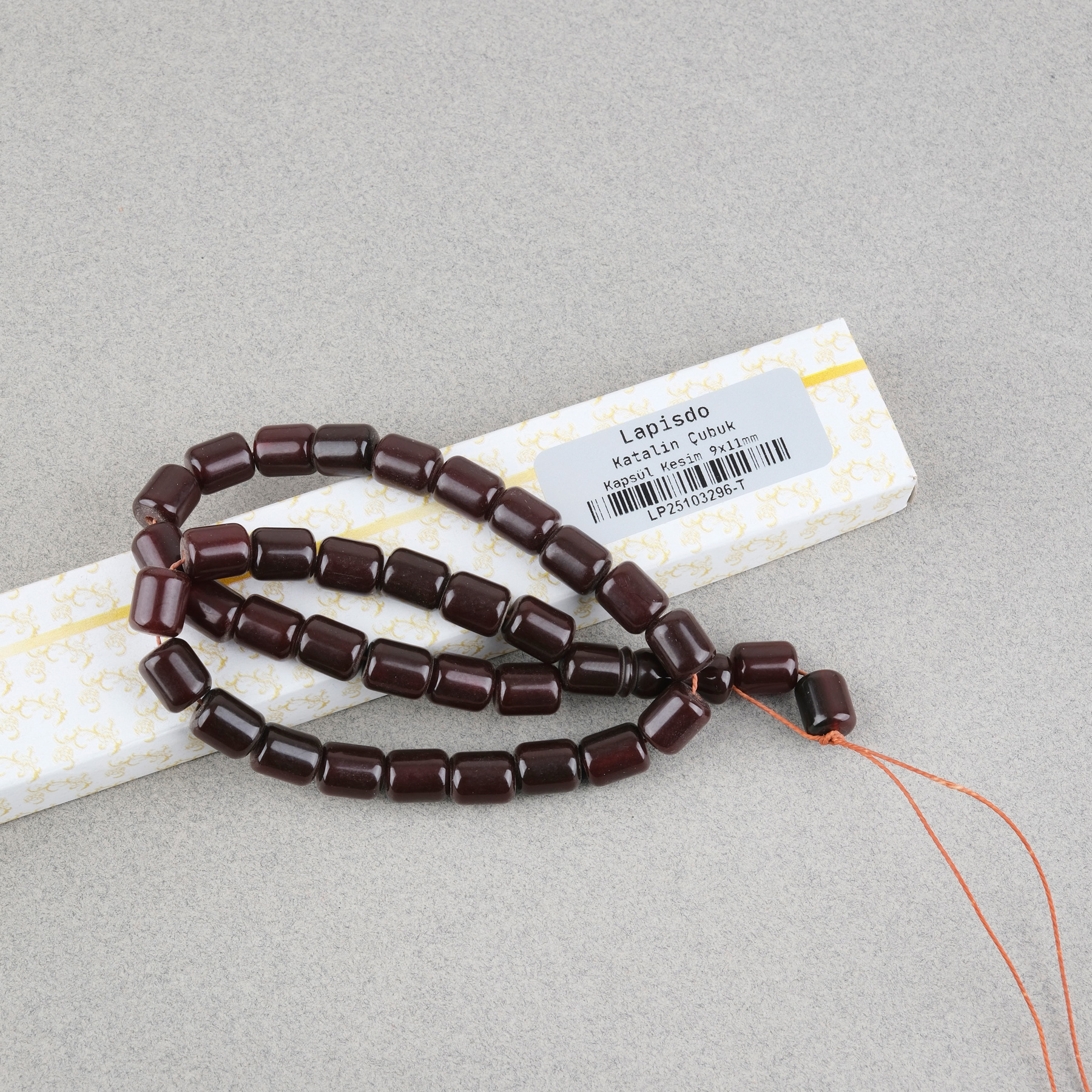 Katalin Çubuk Kapsül Kesim 9x11mm Tesbih -Koyu Bordo Püksülsüz
