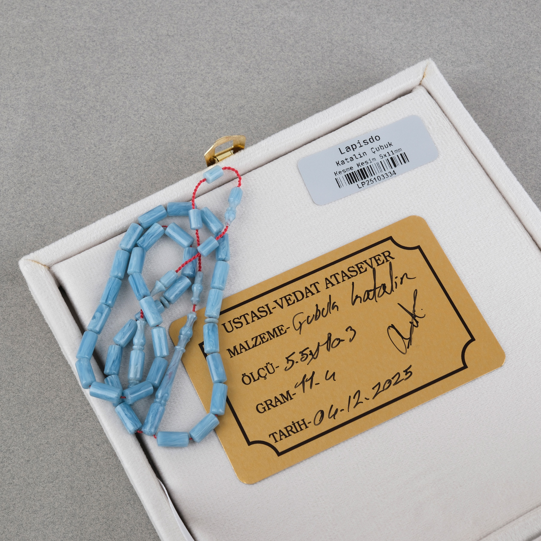 Katalin Çubuk Usta İşi Kesme Kesim 5x11mm Tesbih -Açık Mavi