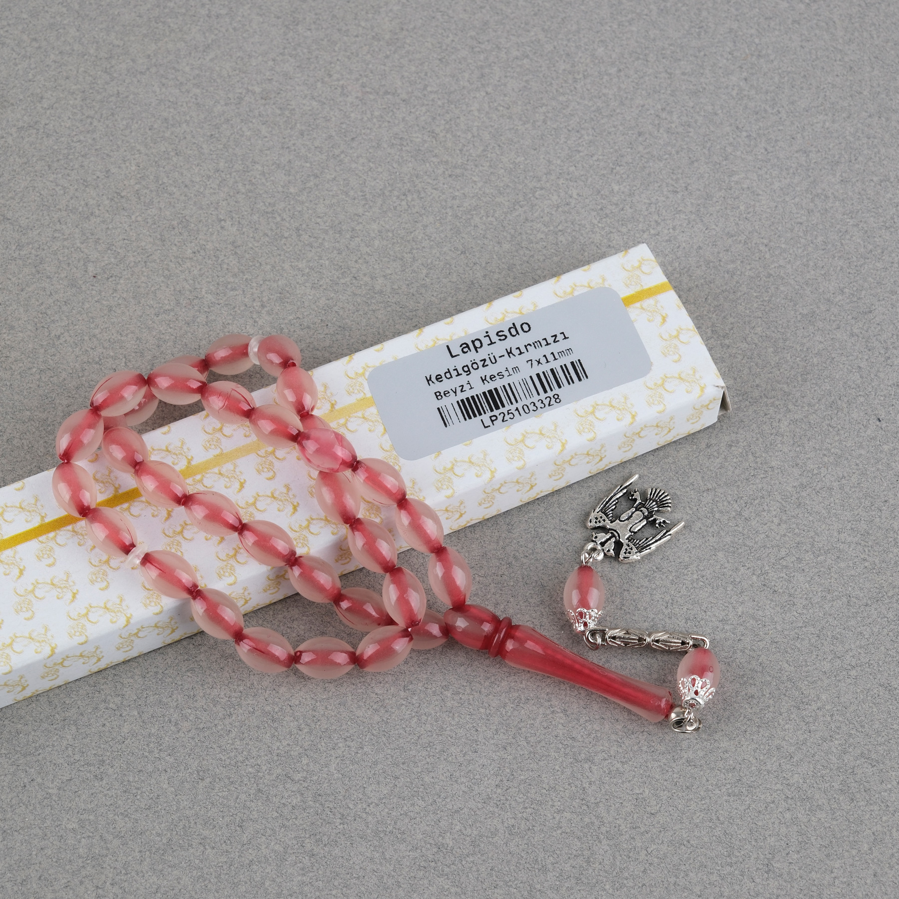 Kedigözü Alpaka Püsküllü Beyzi Kesim 7x11mm Tesbih- Kırmızı