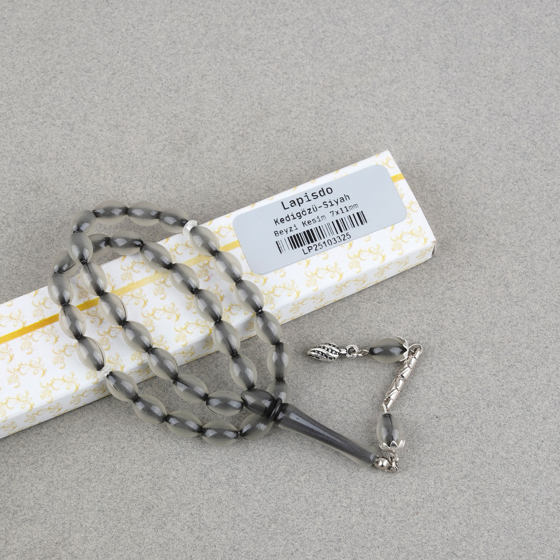 Kedigözü Alpaka Püsküllü Beyzi Kesim 7x11mm Tesbih- Siyah