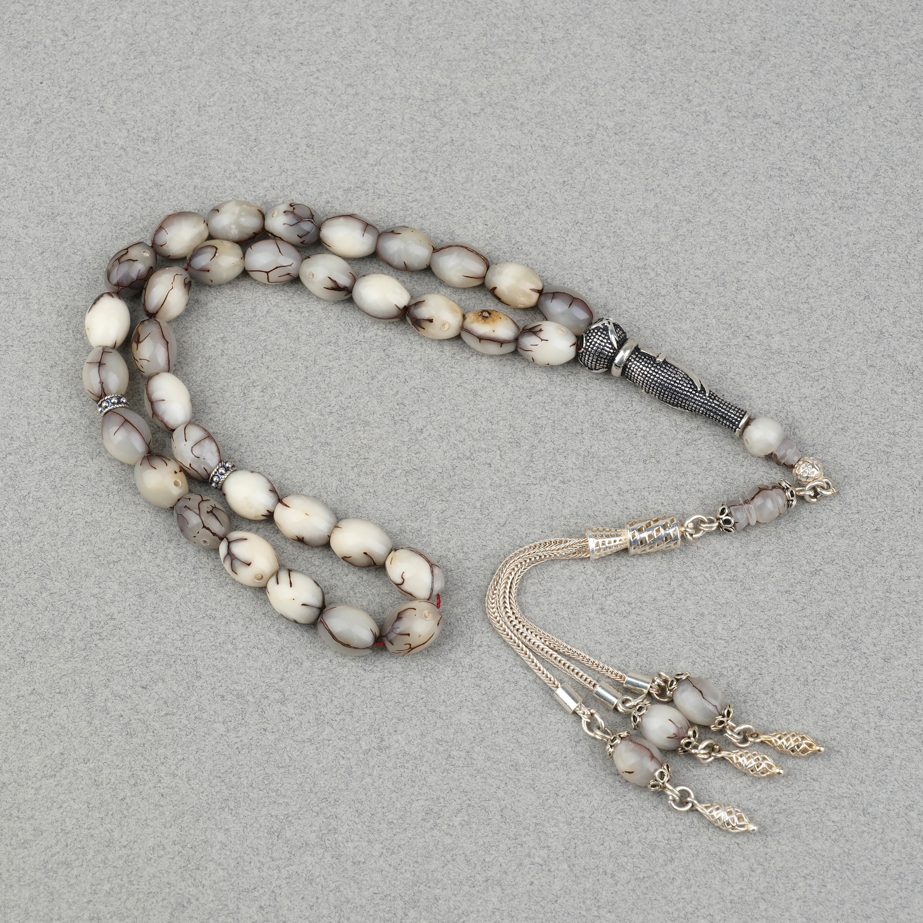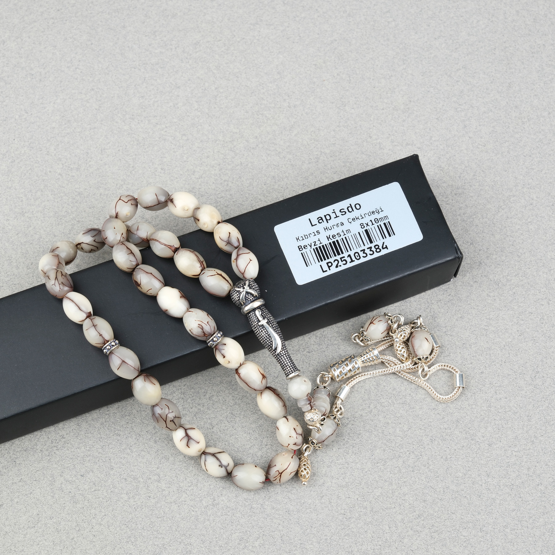 Kıbrıs Hurma Çekirdeği 925Ayar Gümüş Püskül 8x10mm Tesbih