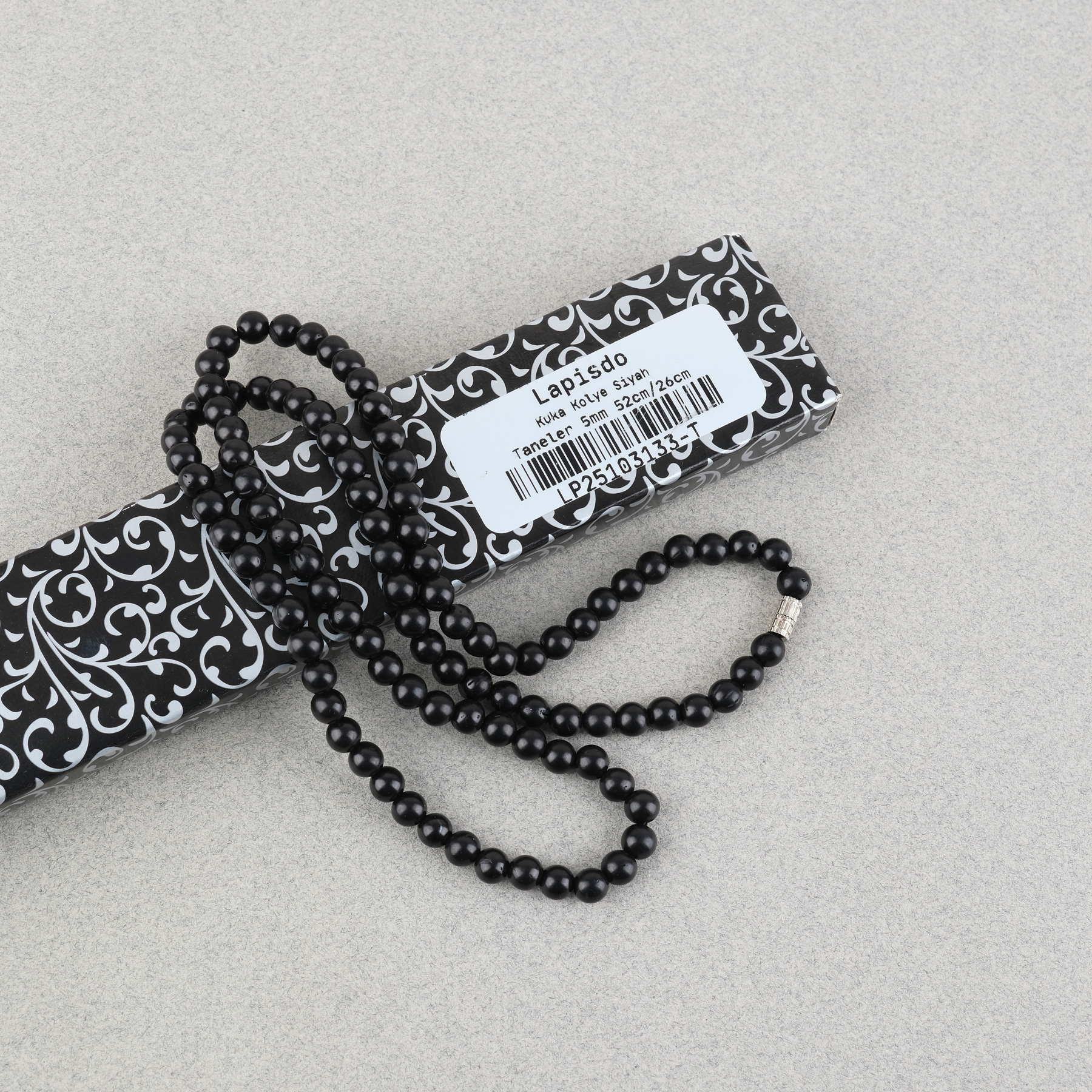Kuka 5mm Küre Kolye 52cm/26cm - Siyah