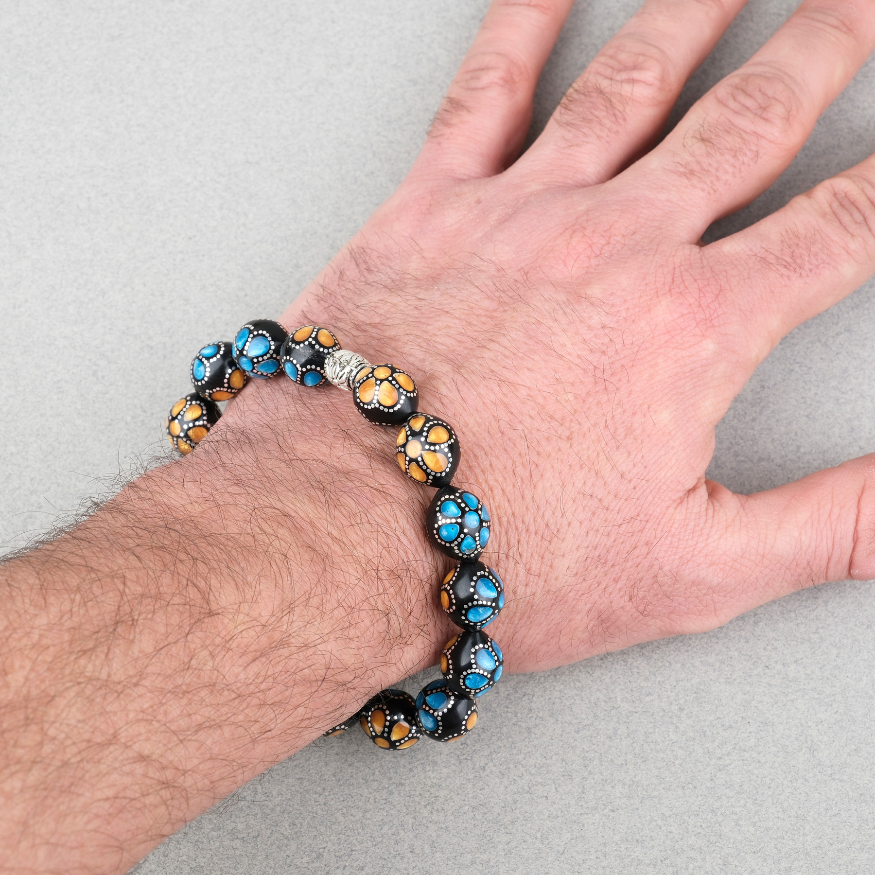 Kuka Gümüş İşlemeli Sistemli, Gümüş Nakkaş İmame Beyzi Kesim 11x13mm Tesbih ve Bileklik Seti