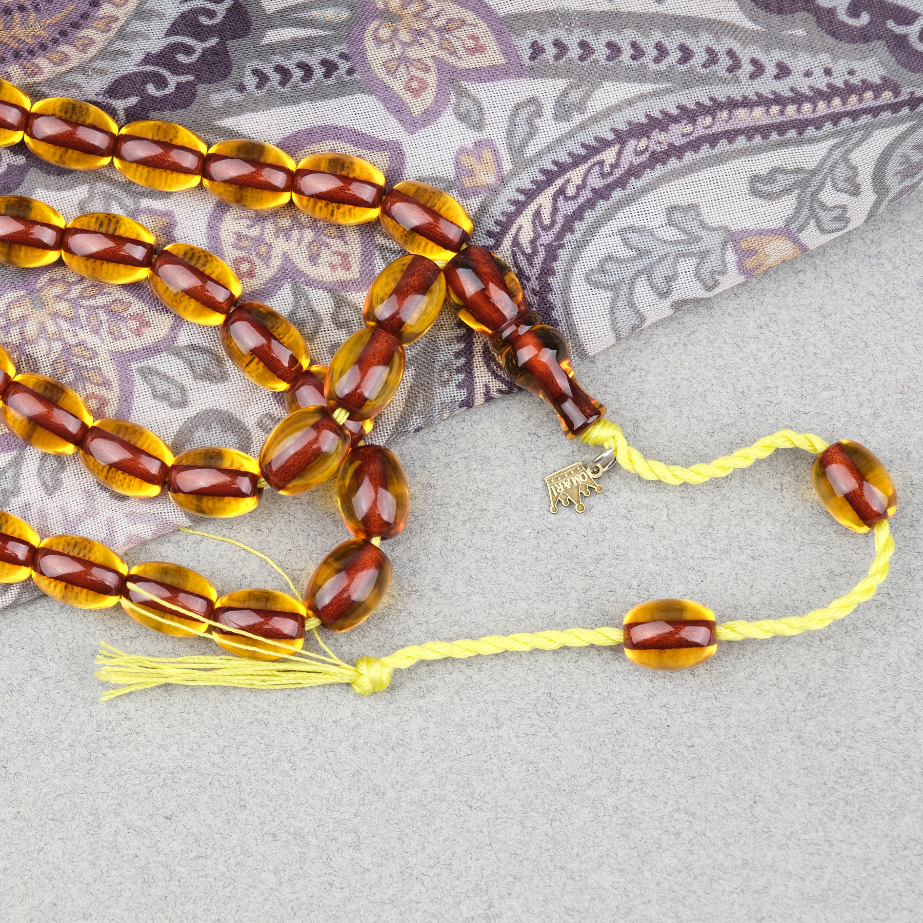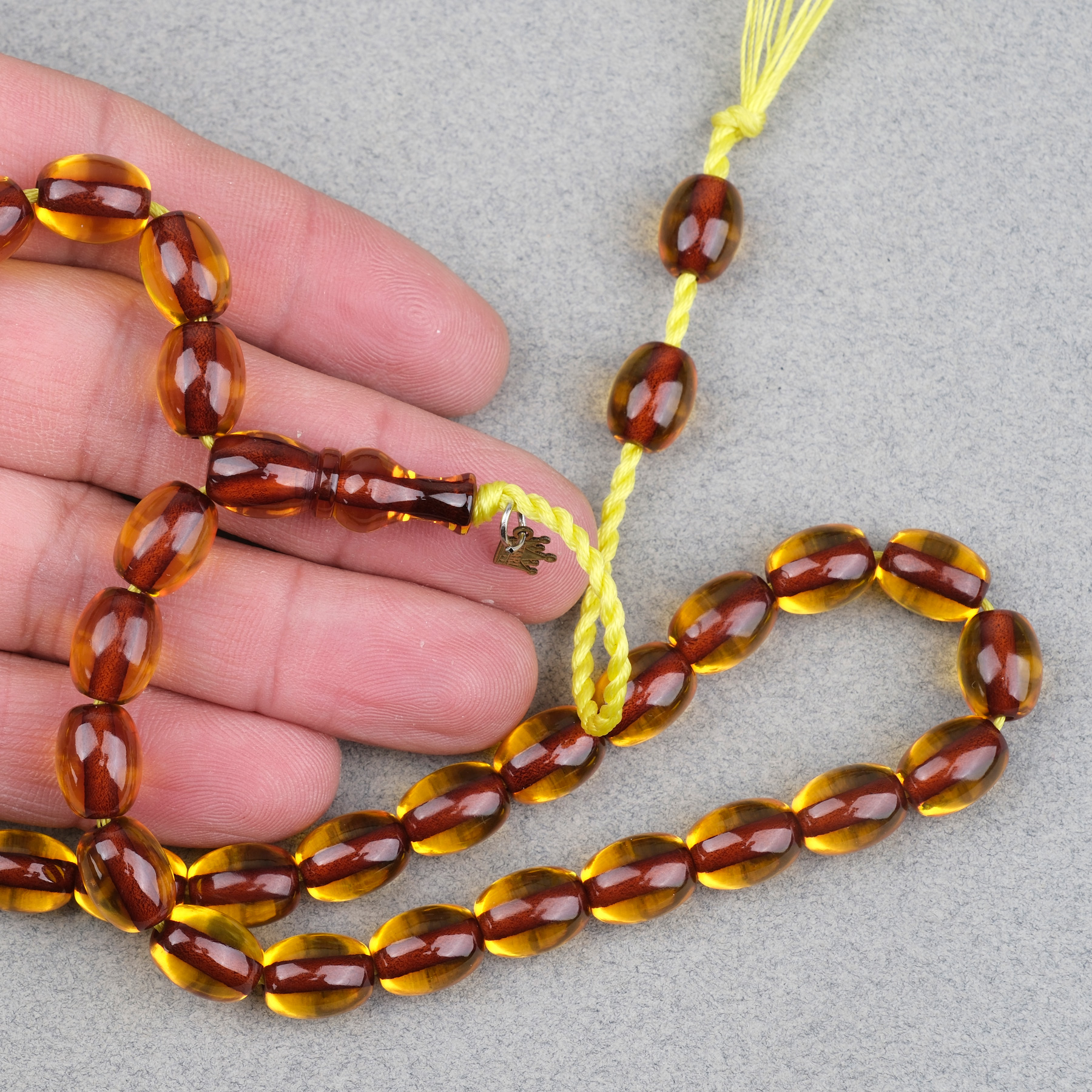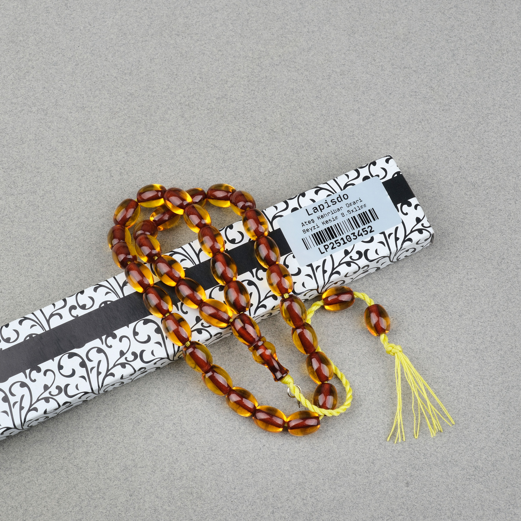 Omari Ateş Kehribar Beyzi Kesim Oturtma İmameli Sistemli 8.5x11mm Tesbih