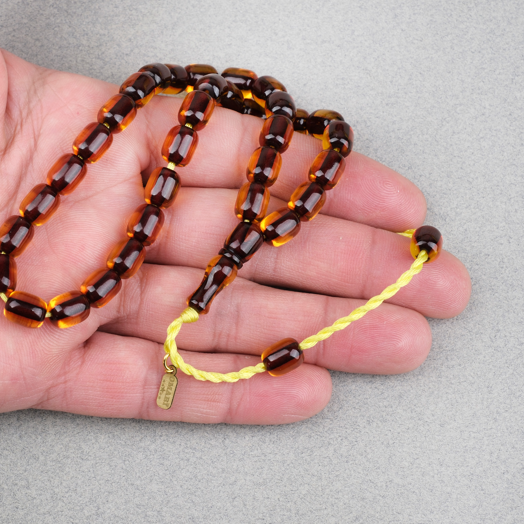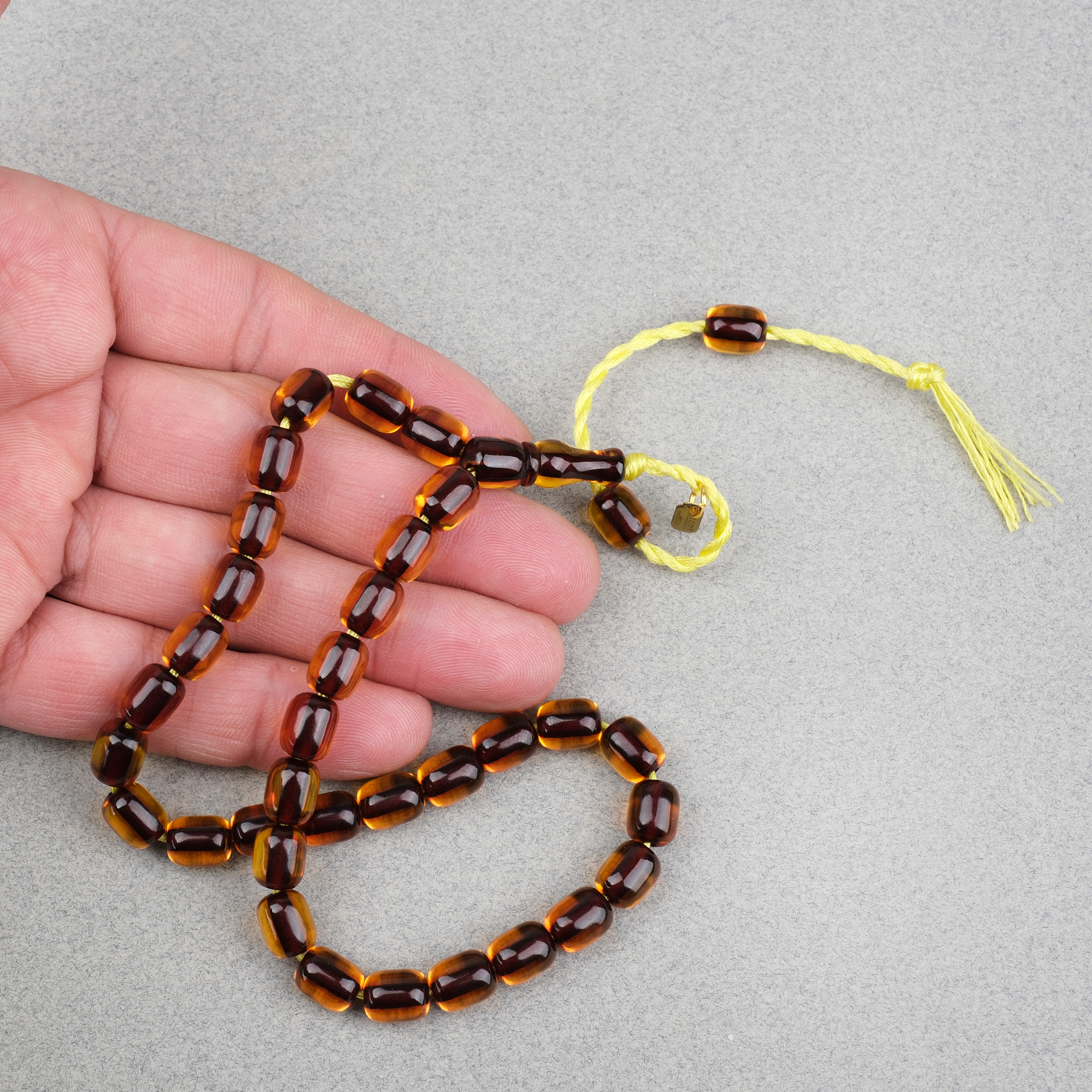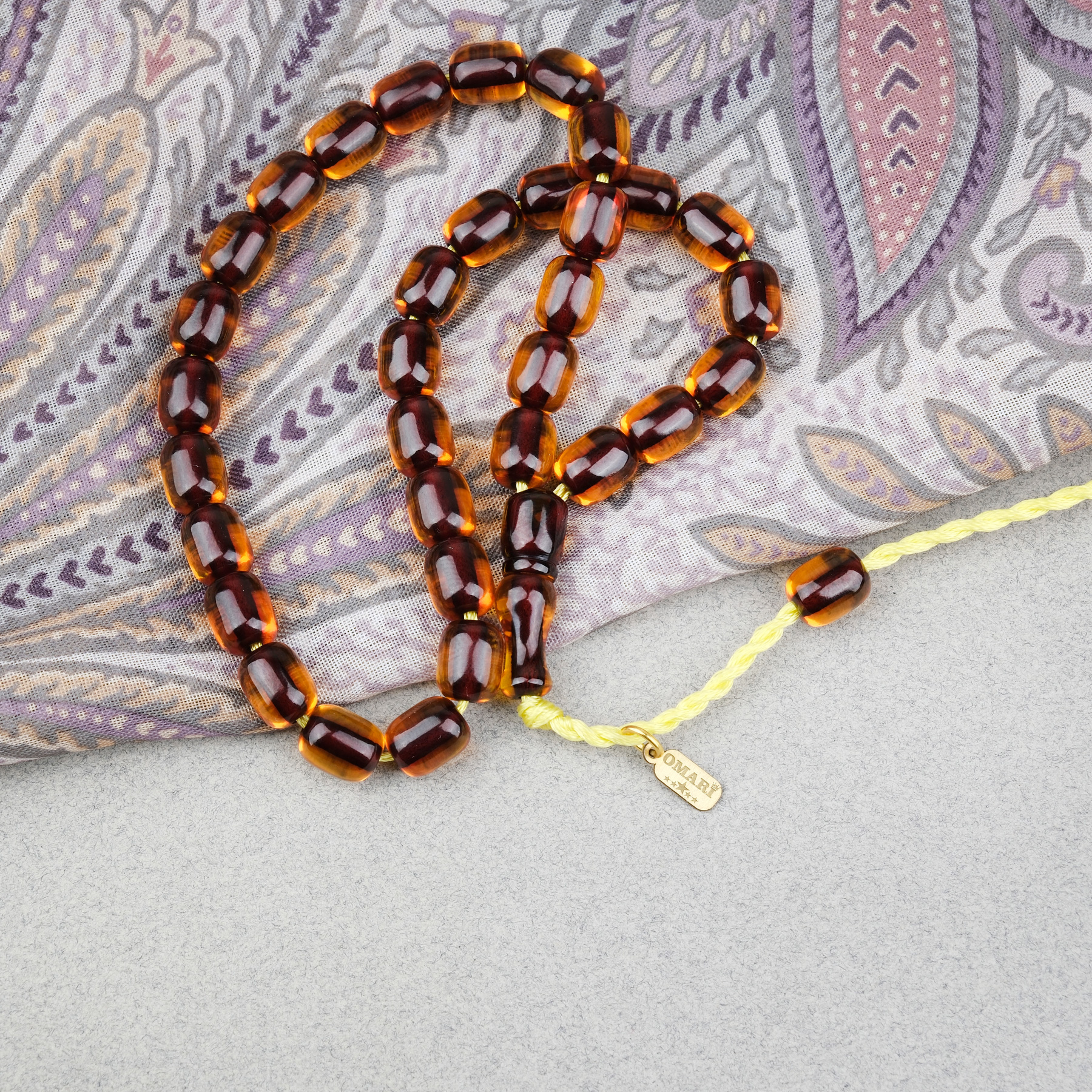Omari Ateş Kehribar Kapsül Kesim Oturtma İmameli Sistemli 7.5x10mm Tesbih