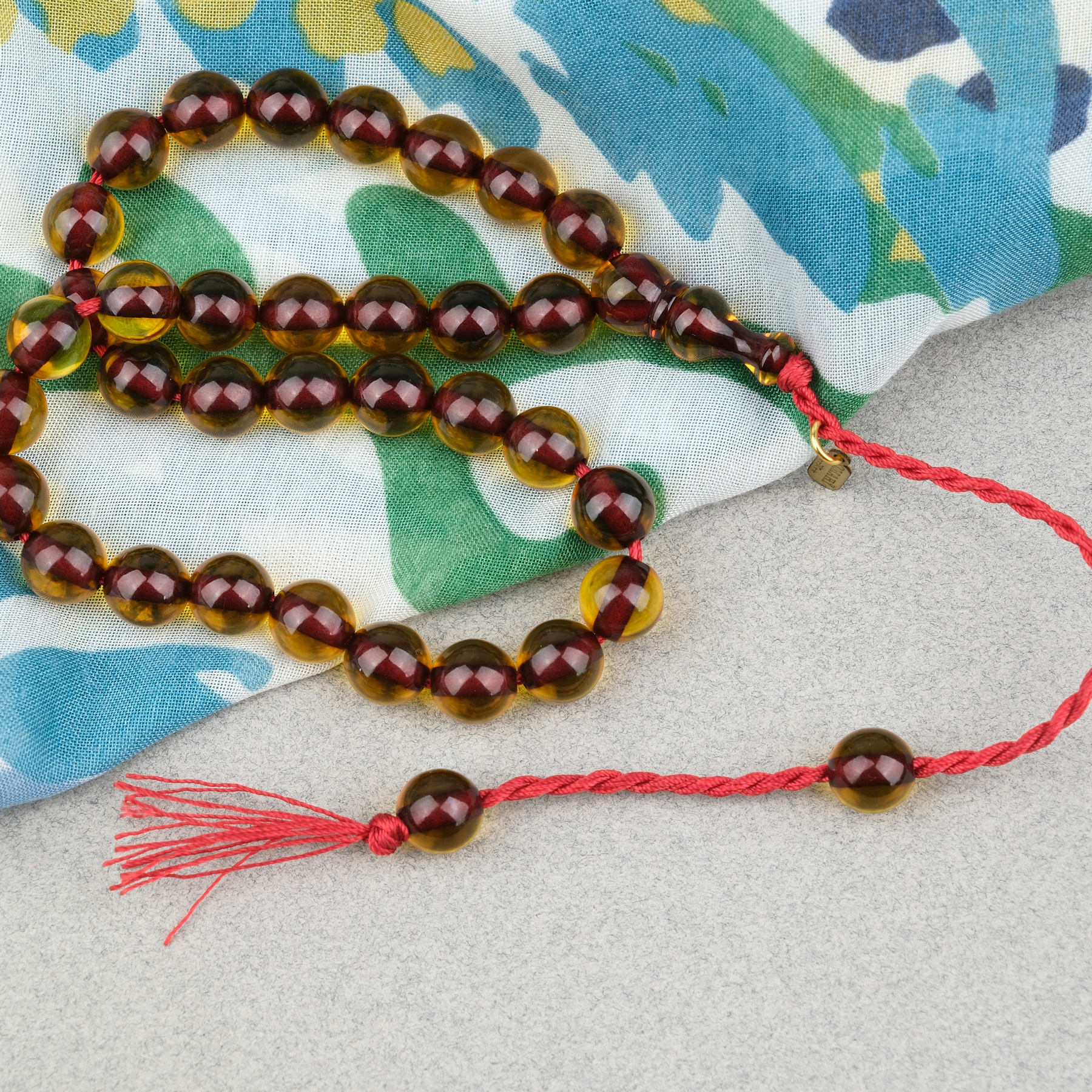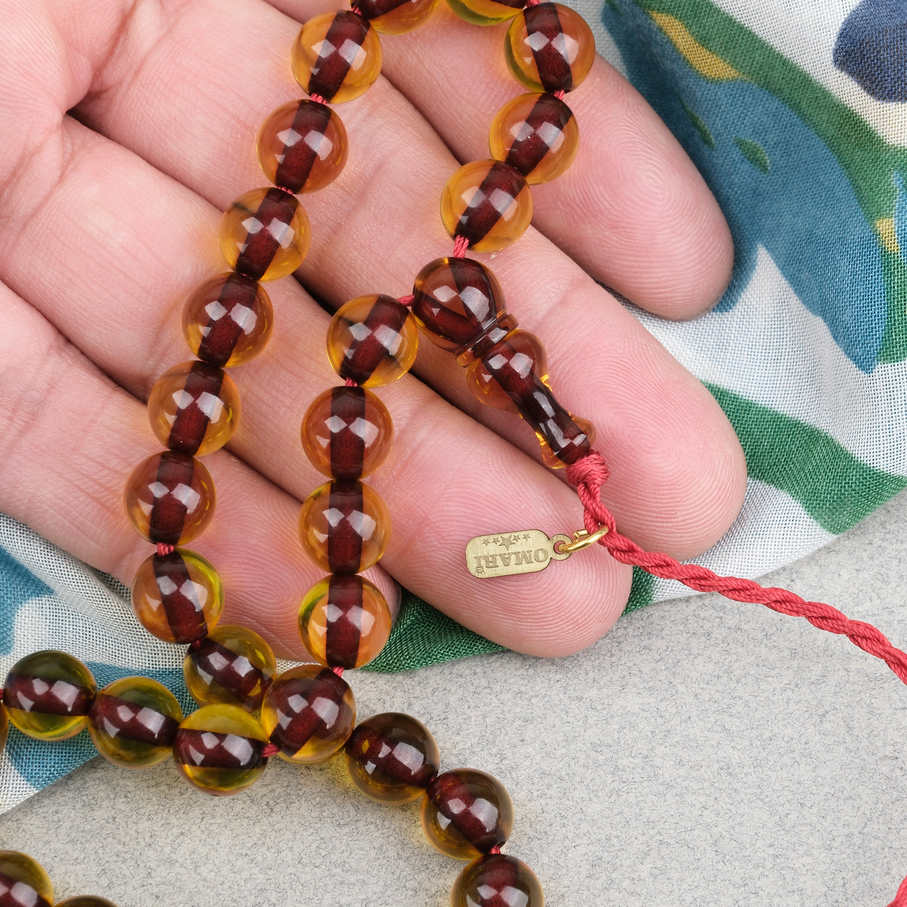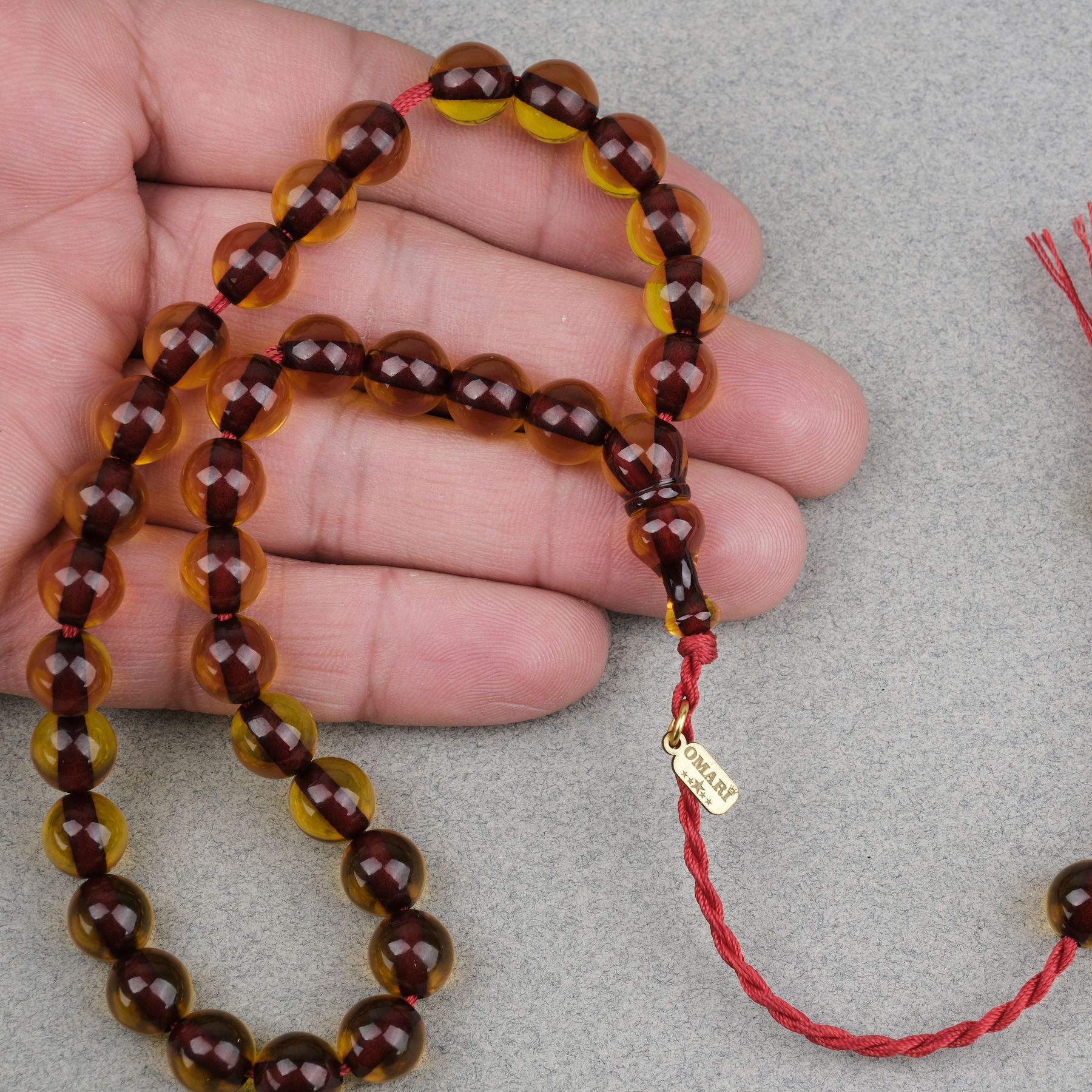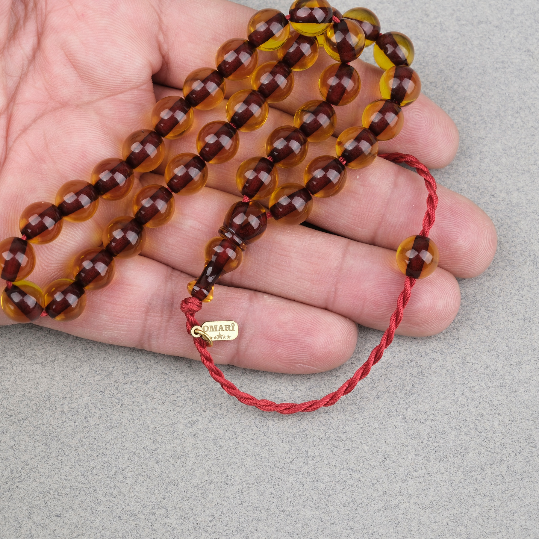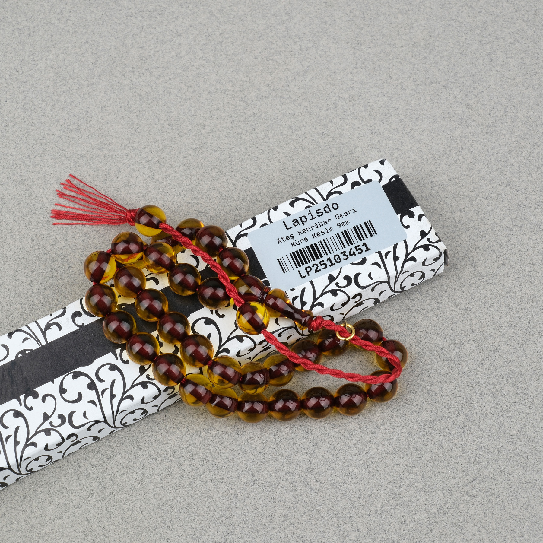 Ateş Kehribar Küre Kesim Oturtma İmameli Omari Sistemli 9mm Tesbih
