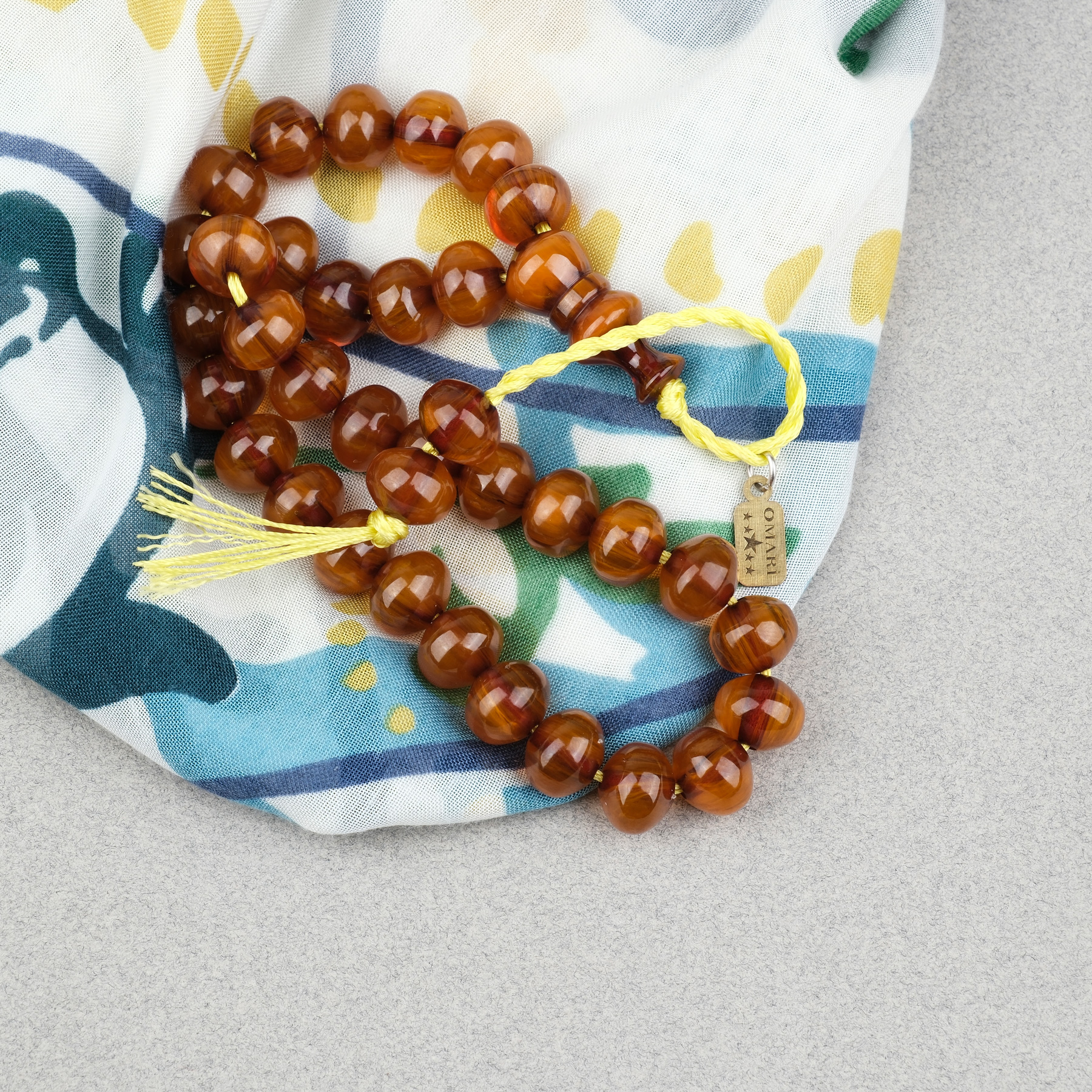 Sıkma Kehribar Basık Küre Kesim Omari Sistemli 9x11mm Tesbih- Kahverengi