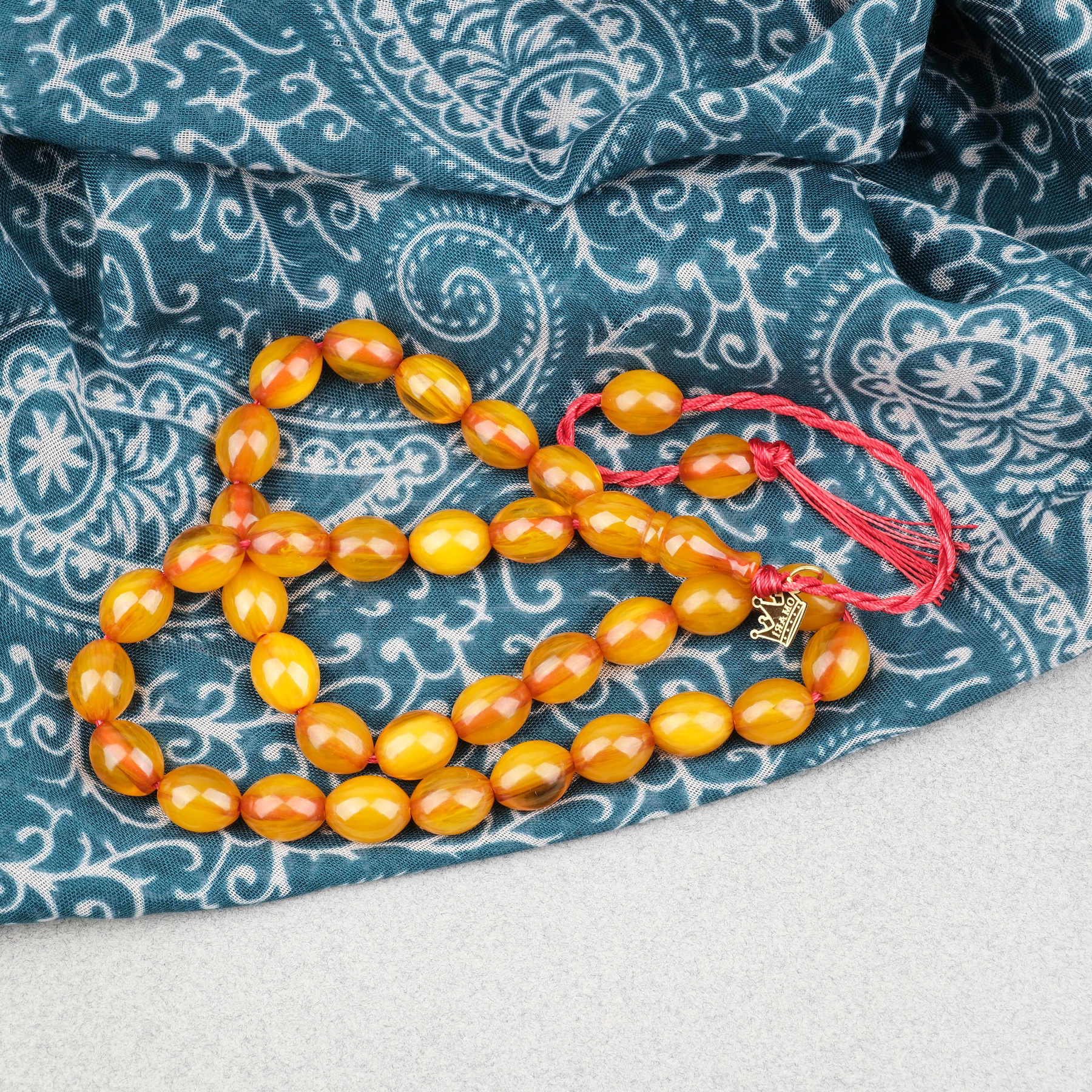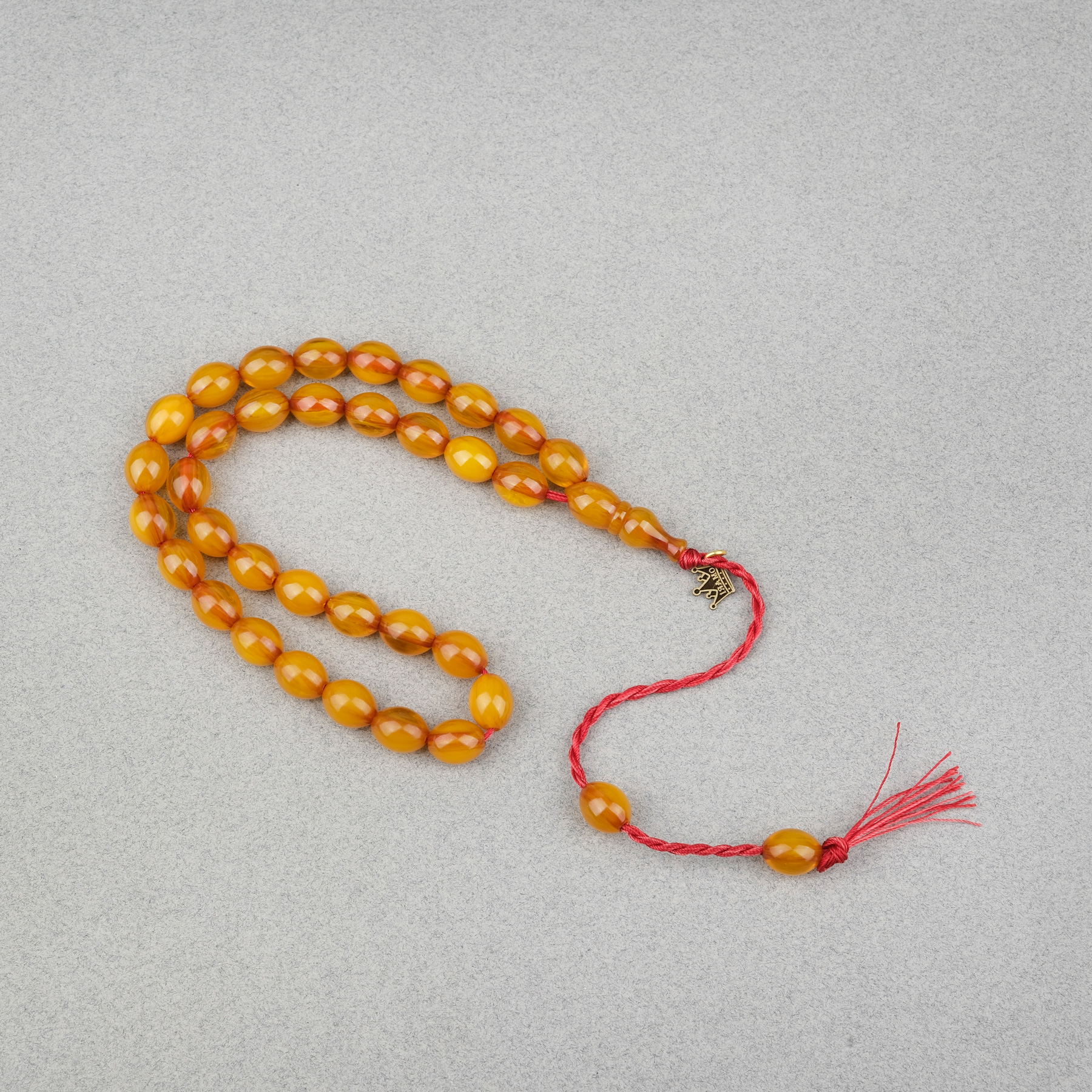 Sıkma Kehribar Beyzi Kesim Oturtma İmameli Omari Sistemli 9x11.5mm Tesbih