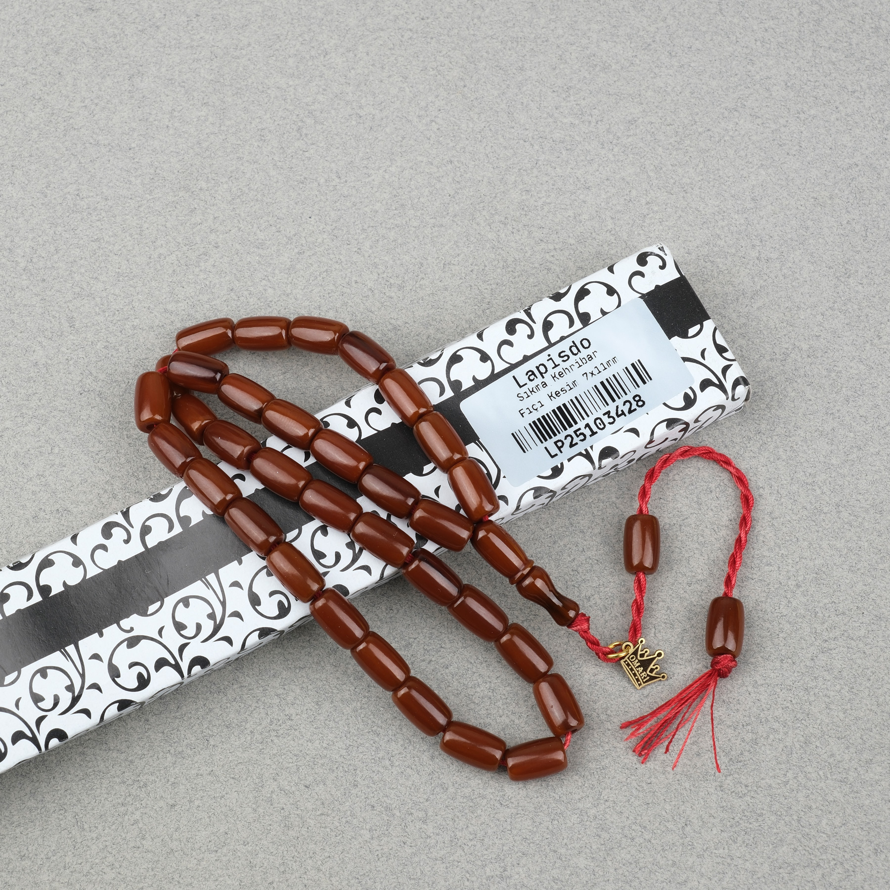 Omari Sıkma Kehribar Fıçı Kesim Oturtma İmameli Sistemli 7x11mm Tesbih