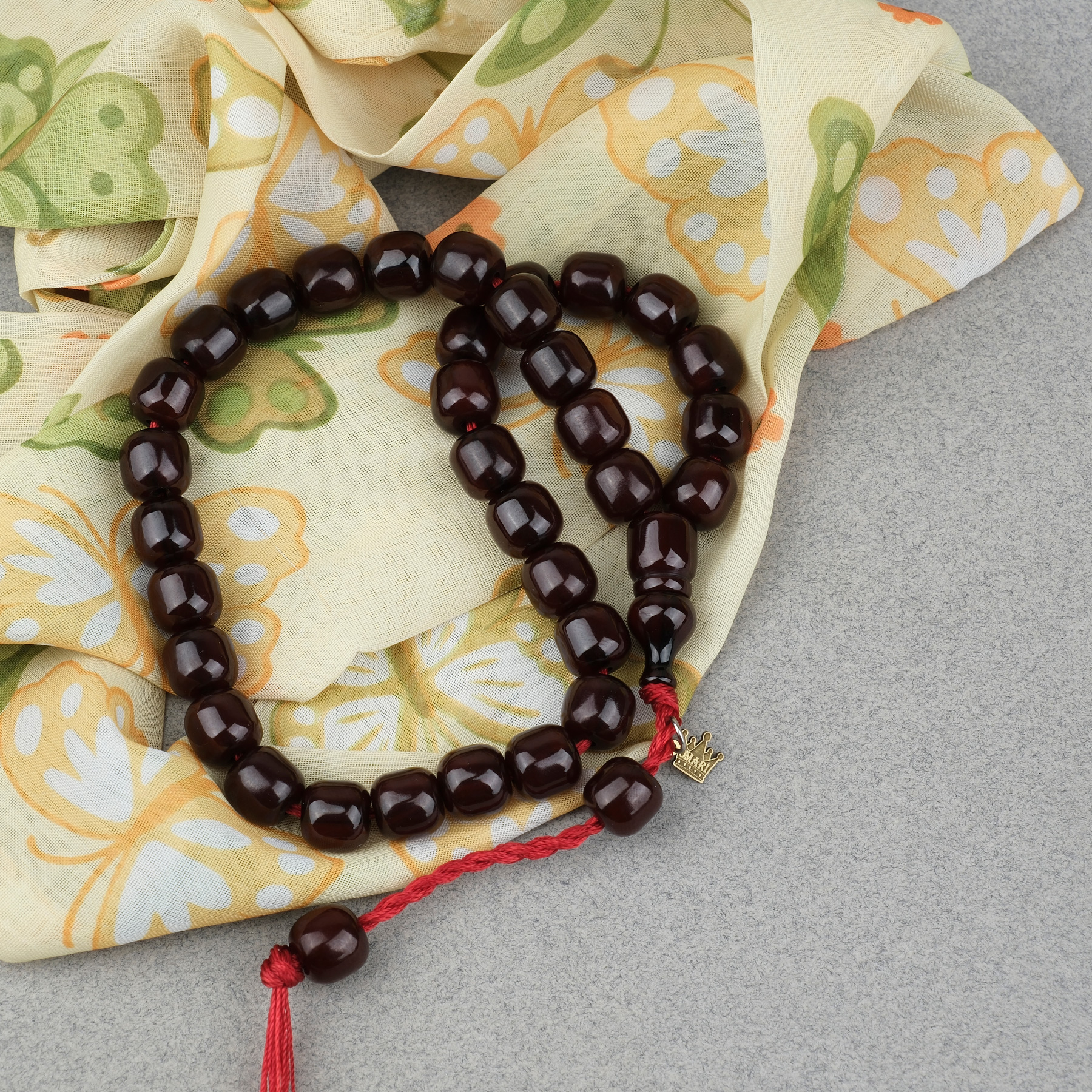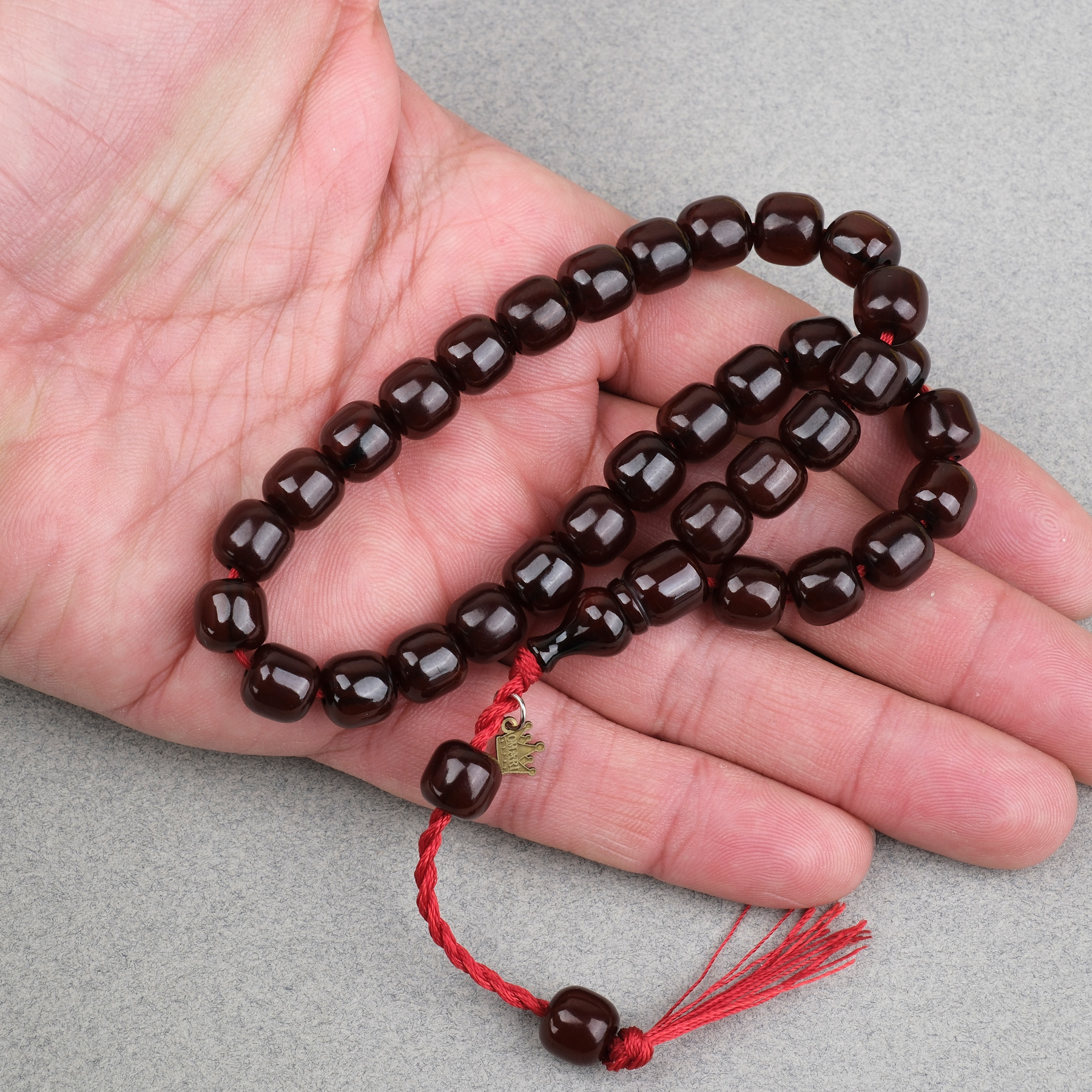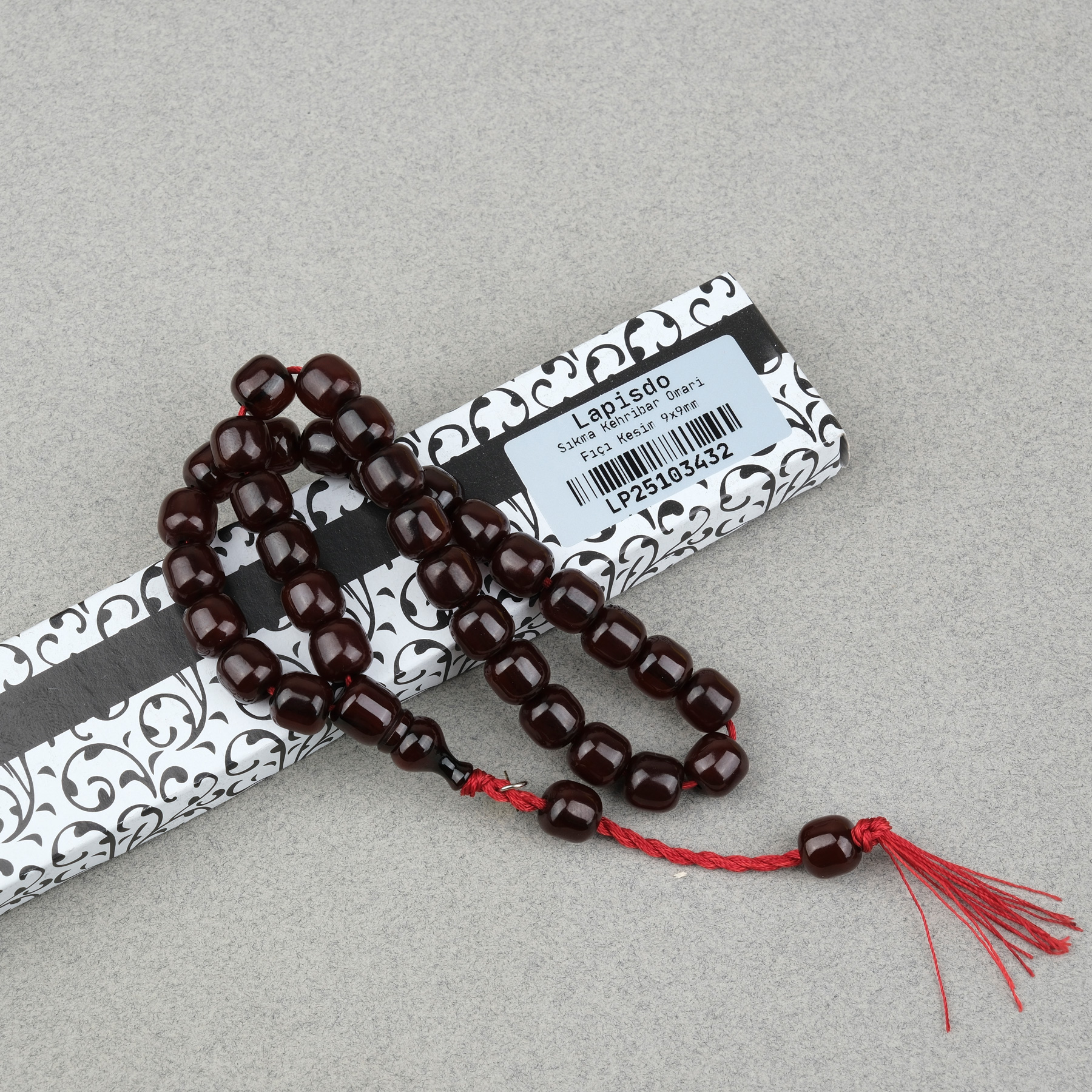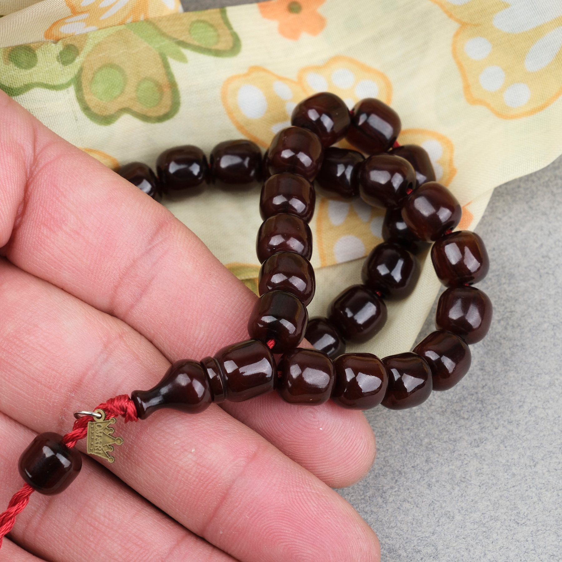 Sıkma Kehribar Fıçı Kesim Oturtma İmameli Omari Sistemli 9x9mm Tesbih