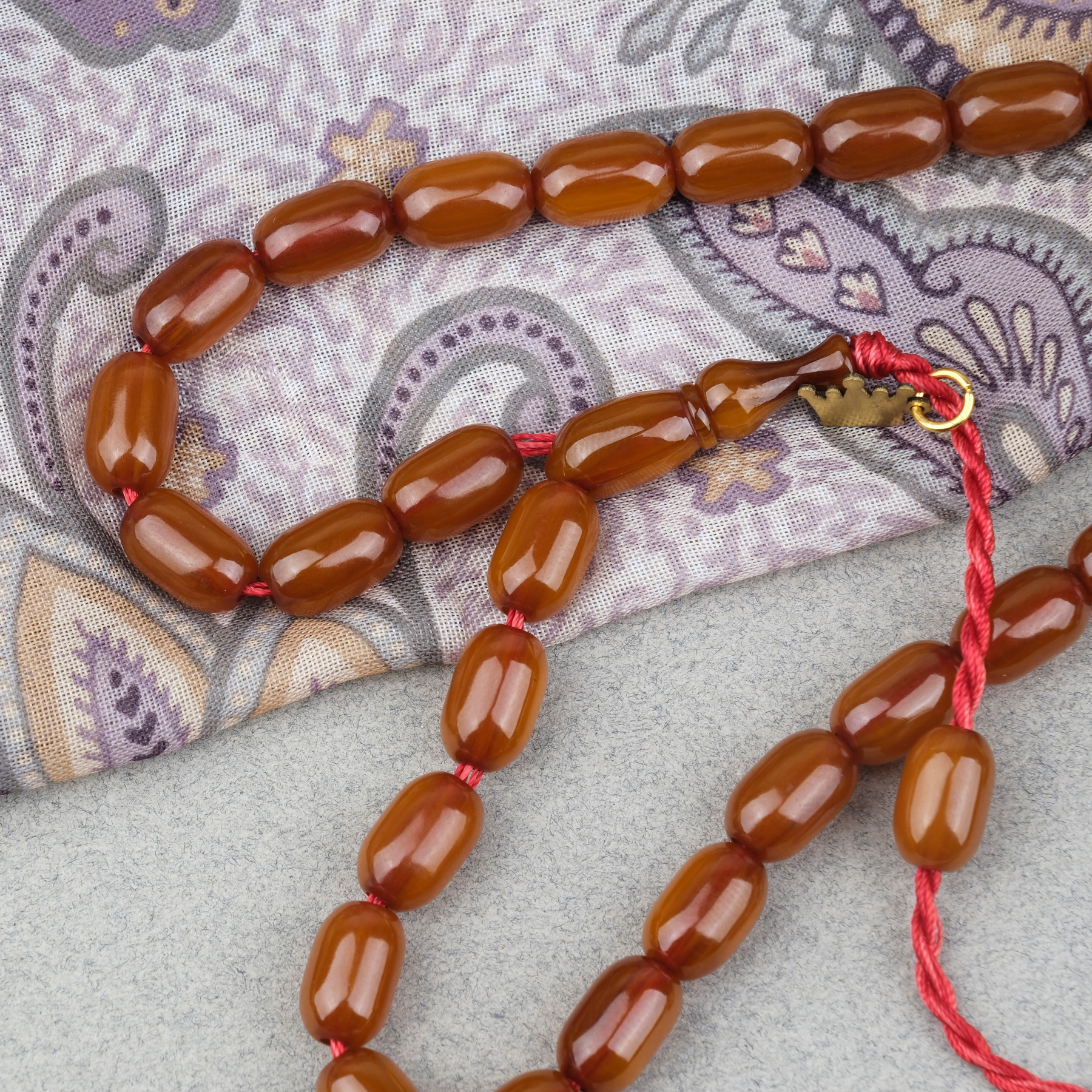 Omari Sıkma Kehribar Kapsül Kesim Oturtma İmameli Sistemli 7x12mm Tesbih