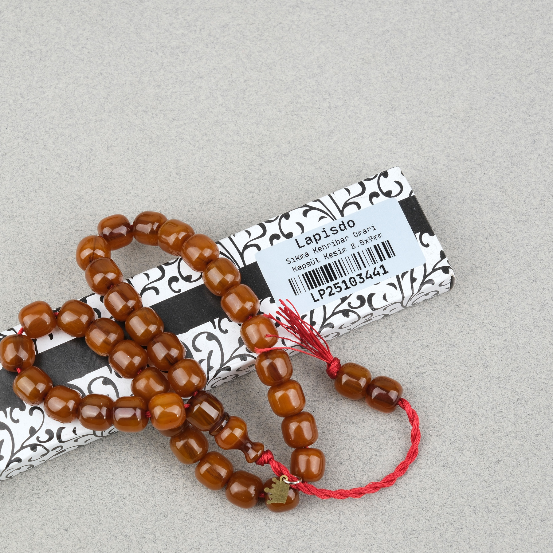 Sıkma Kehribar Kapsül Kesim Oturtma İmameli Omari Sistemli 8.5x9mm Tesbih