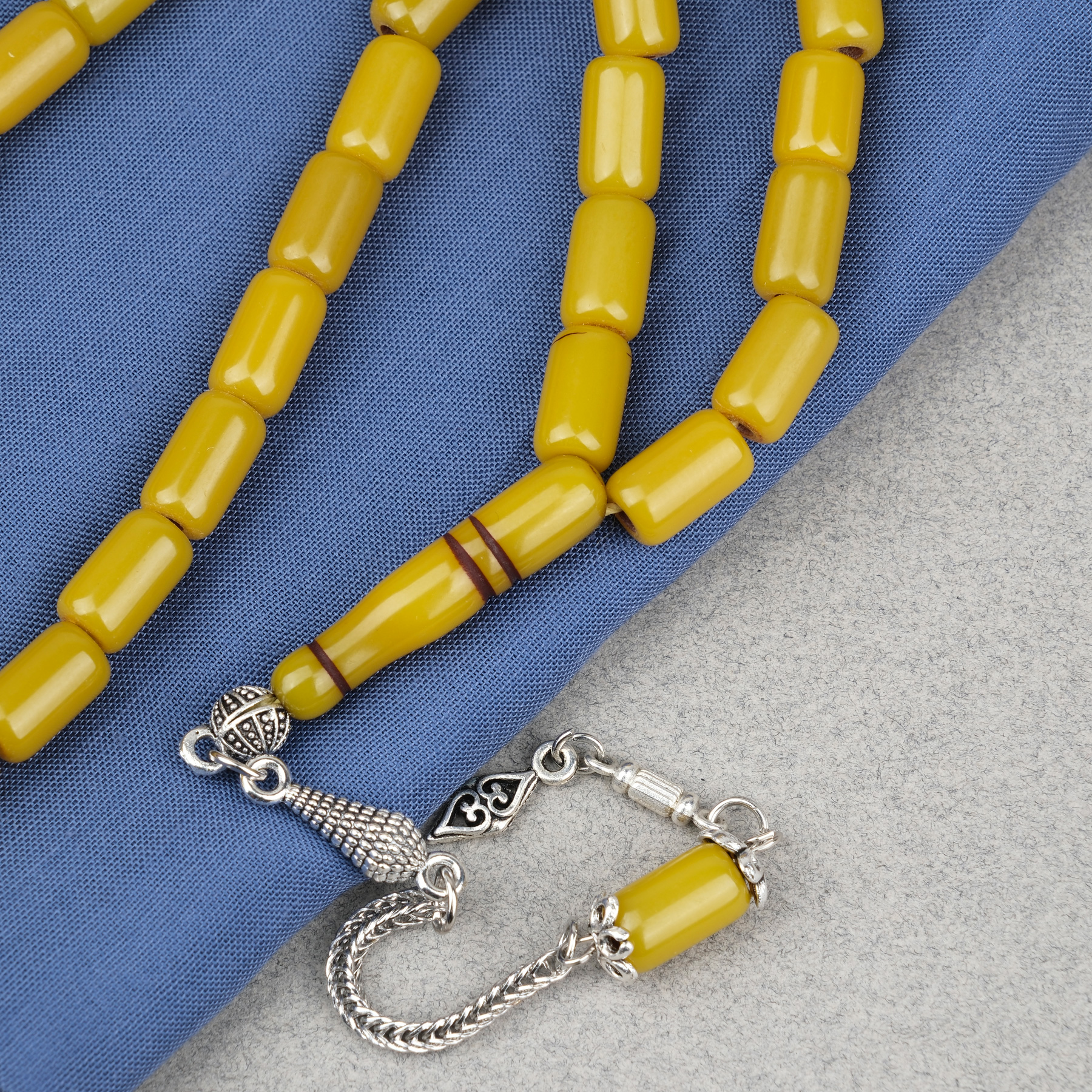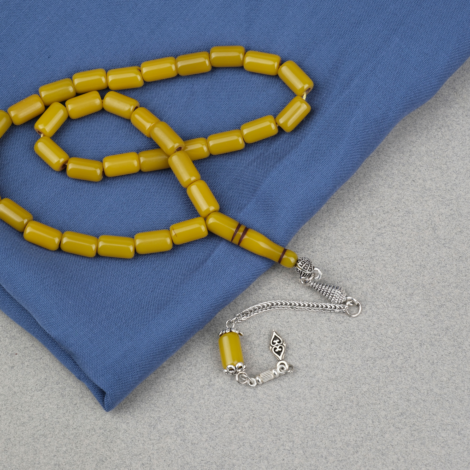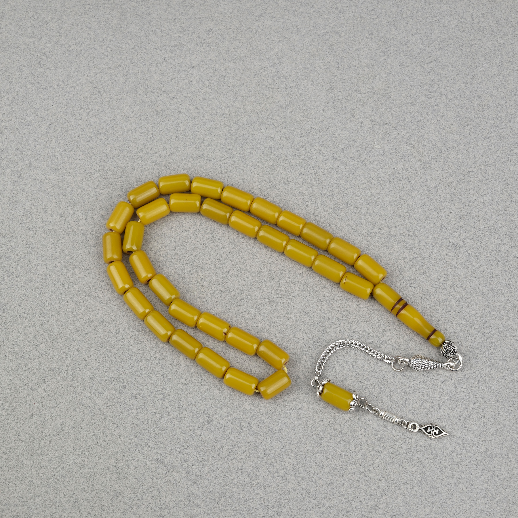 Sıkma Kehribar Alpaka Püsküllü Kapsül Kesim 7x11.5mm Tesbih - Yağ Yeşili