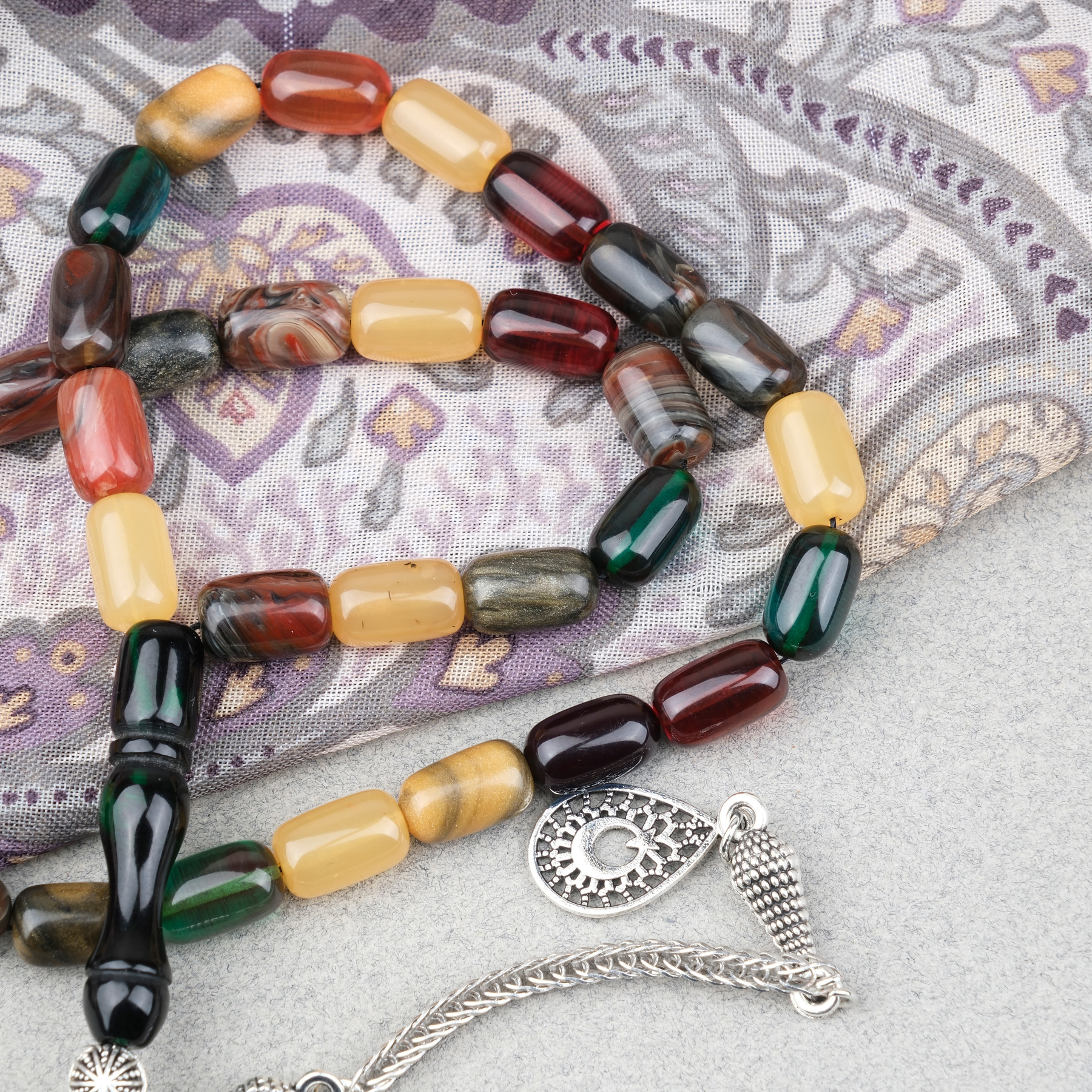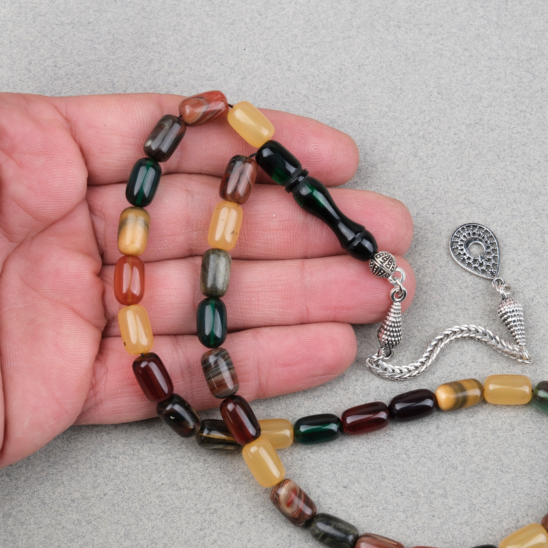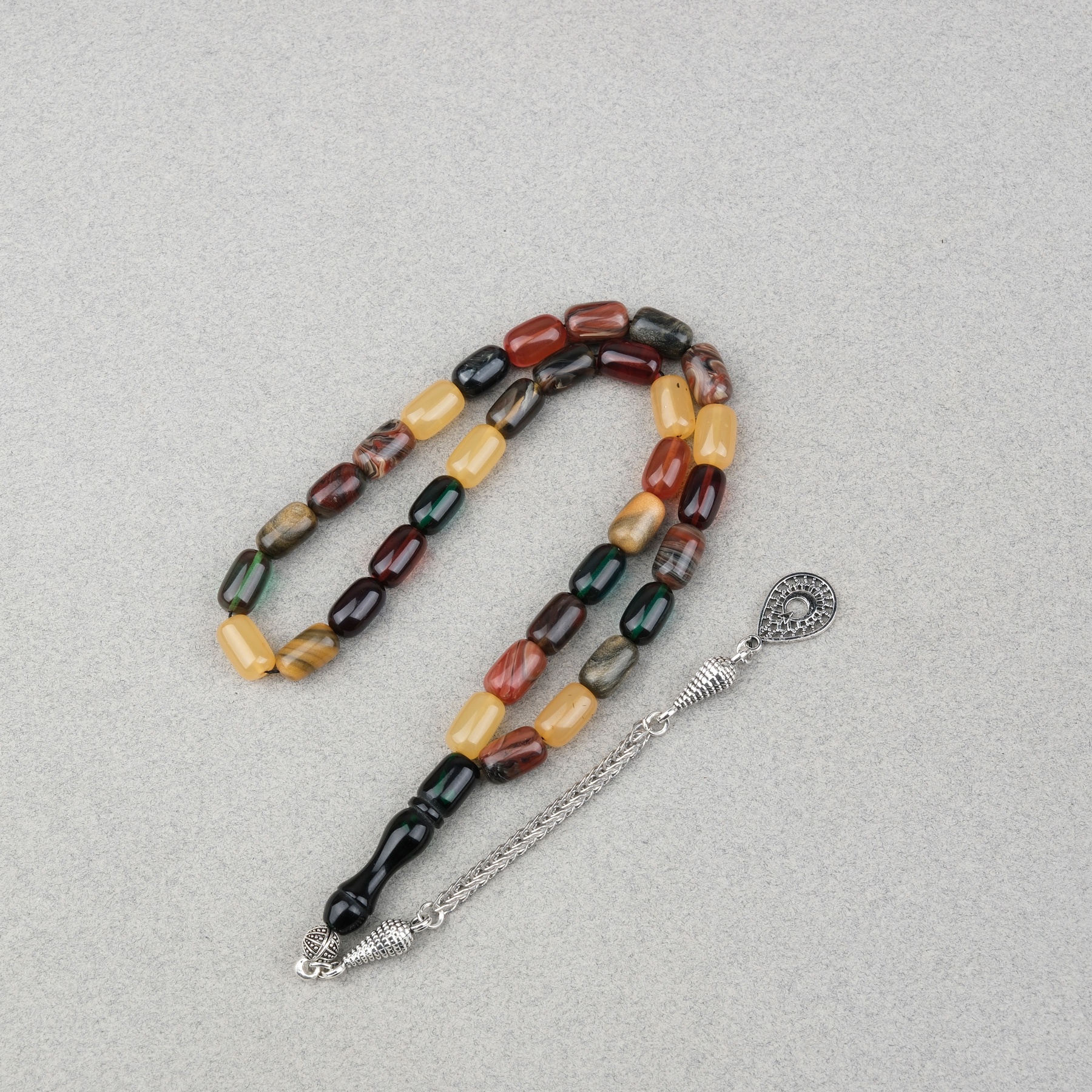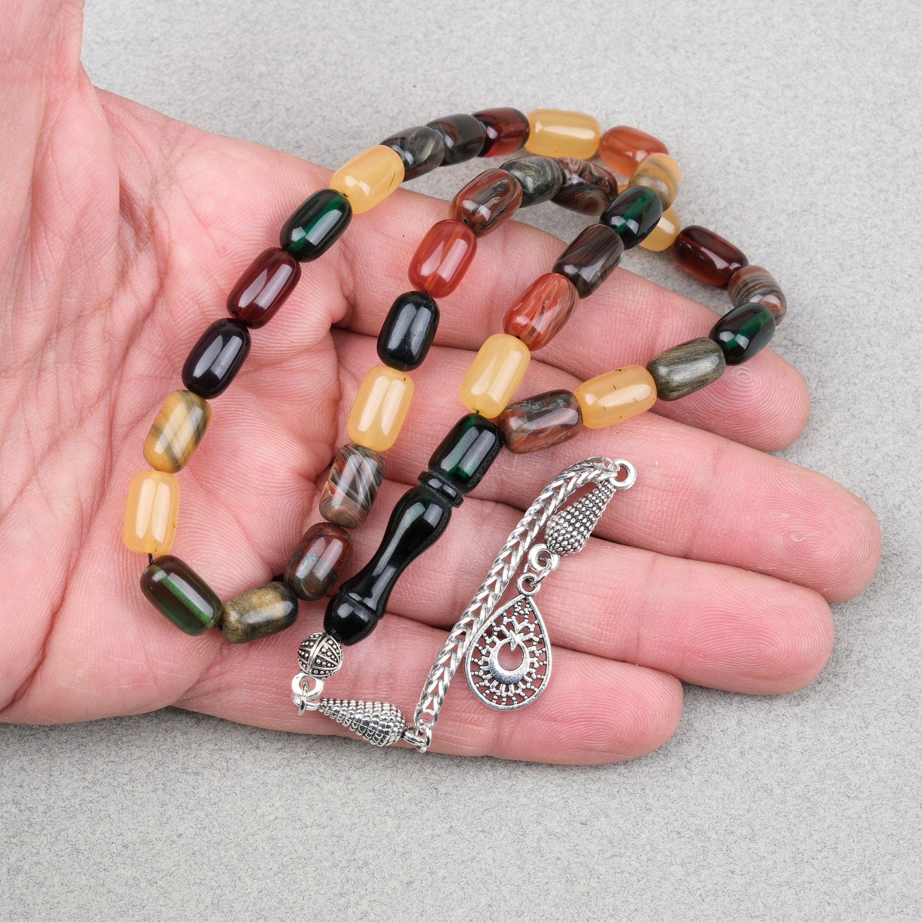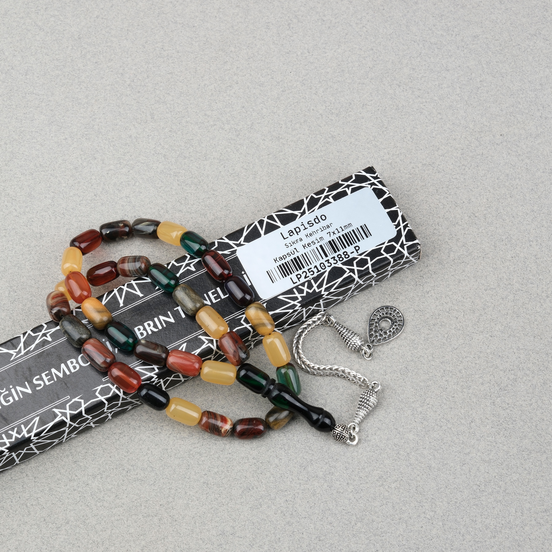 Sıkma Kehribar Alpaka Püsküllü Kapsül Kesim 7x11mm Tesbih- Bonibon