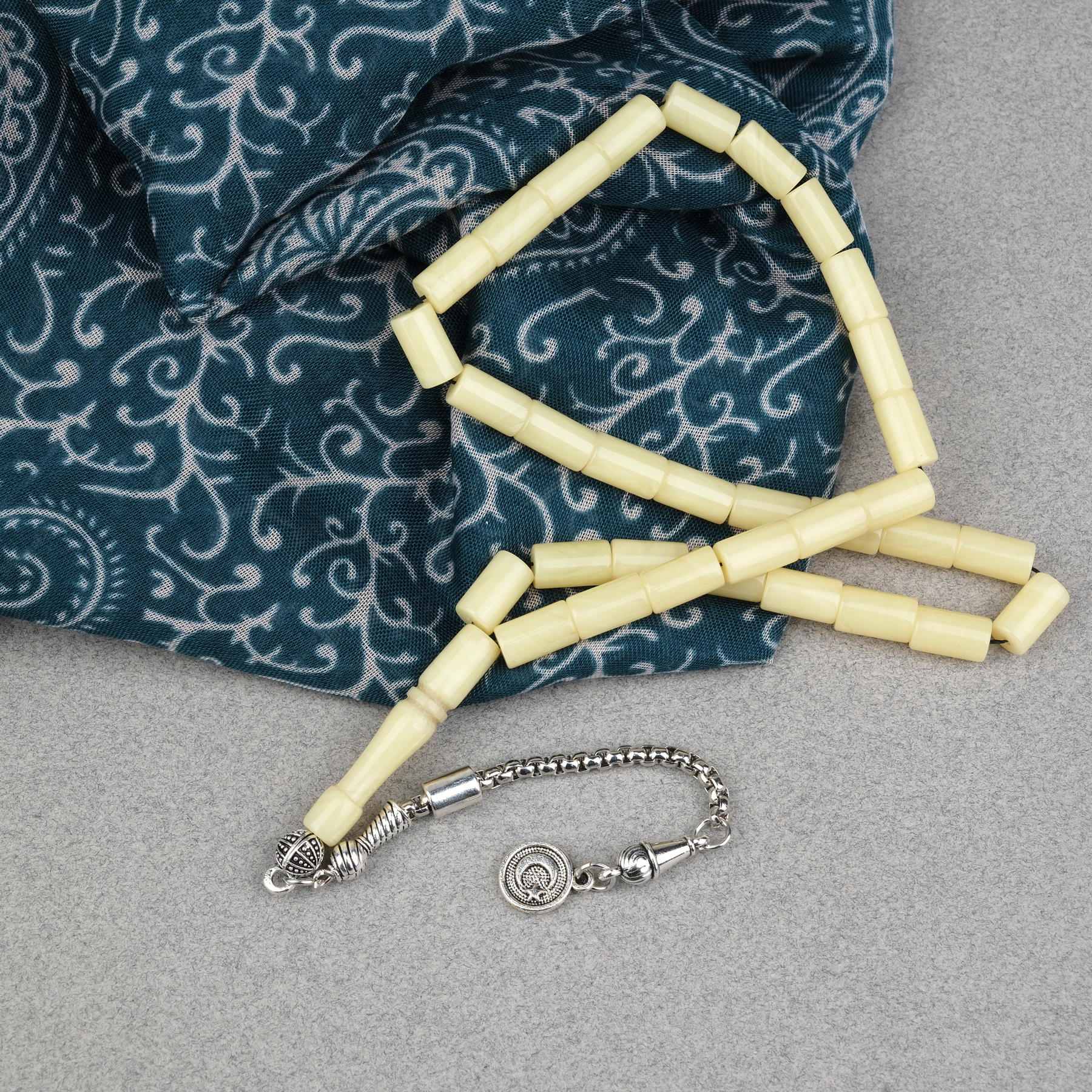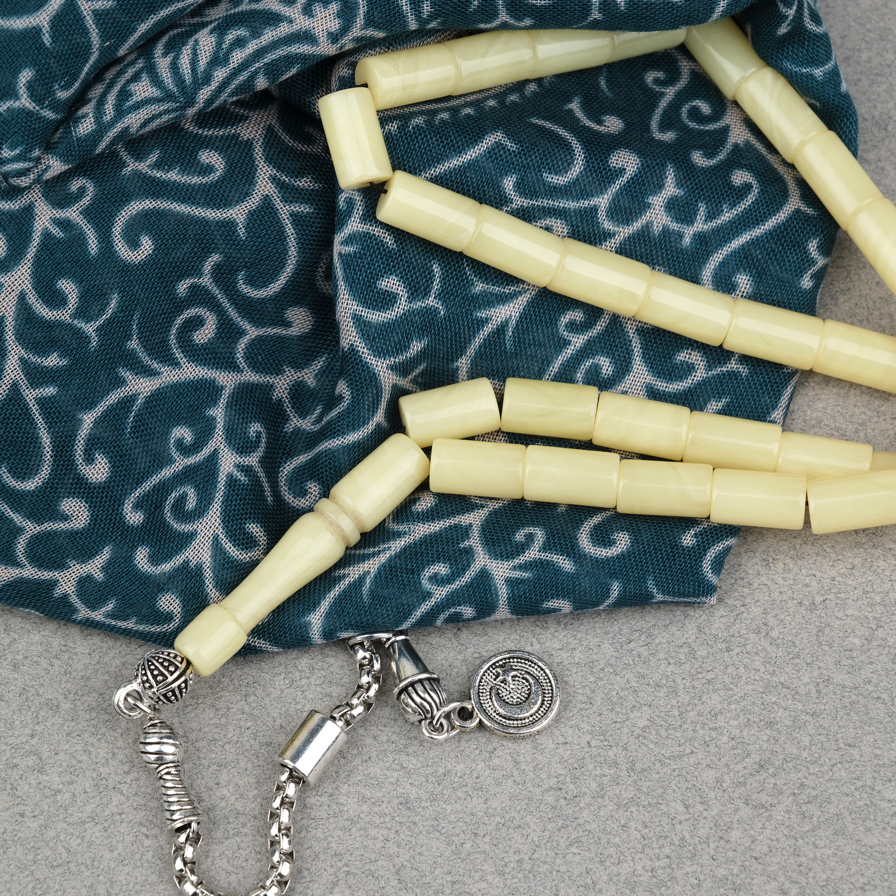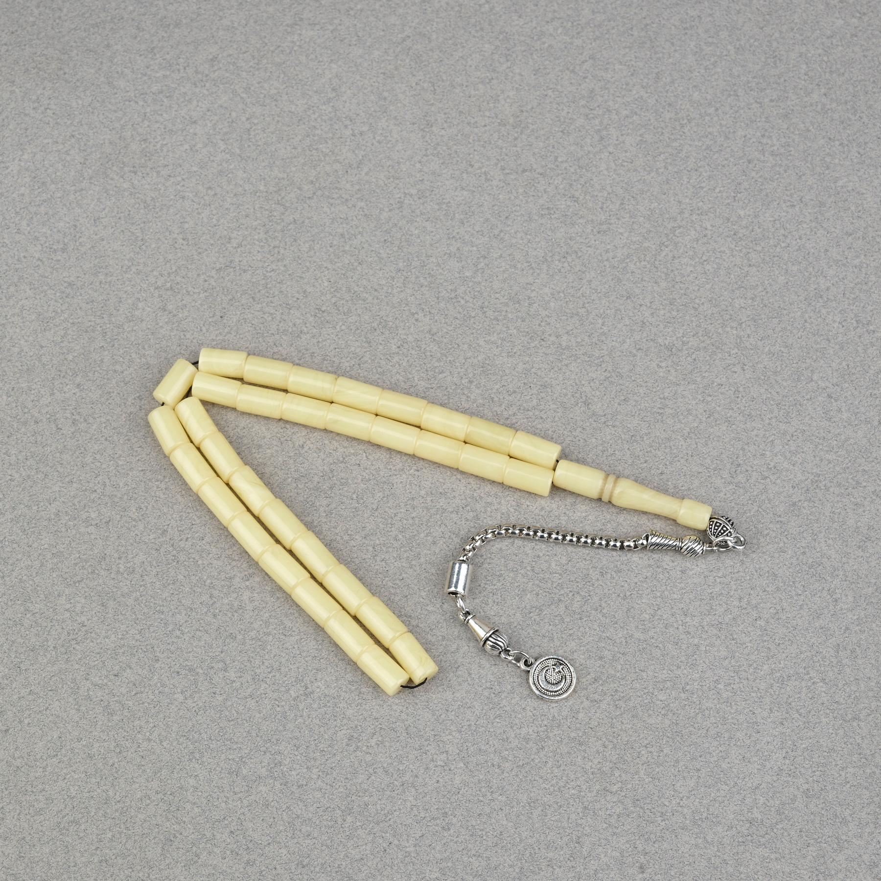Sıkma Kehribar Alpaka Püsküllü Kesme Kesim 6x10mm Tesbih - Sarı