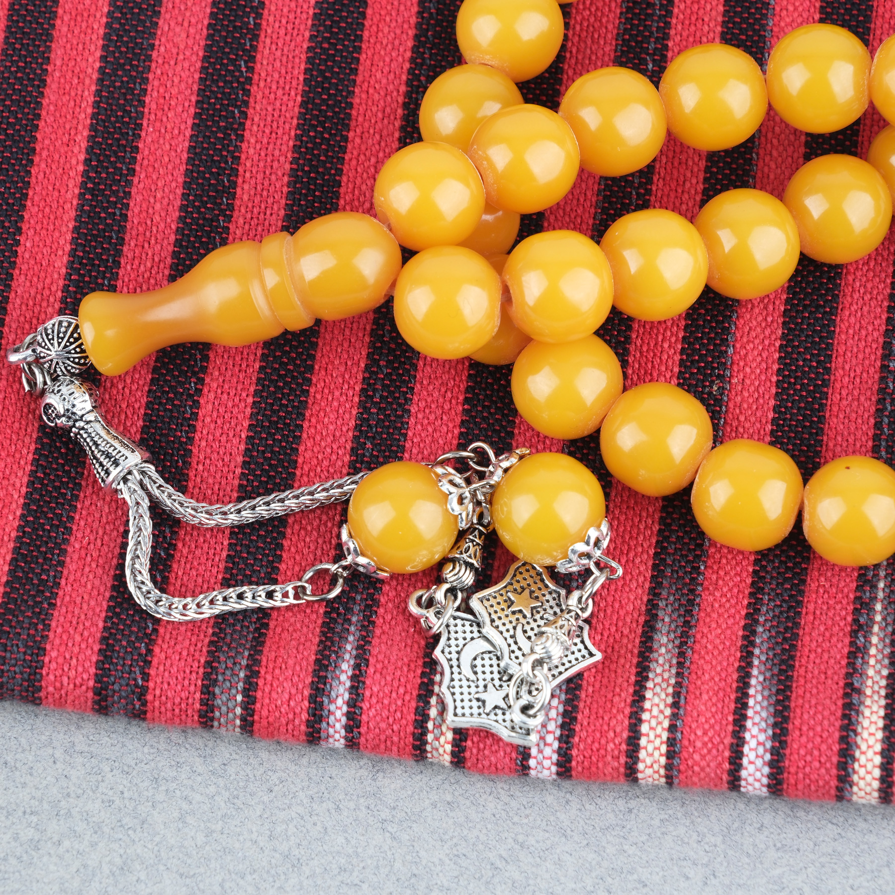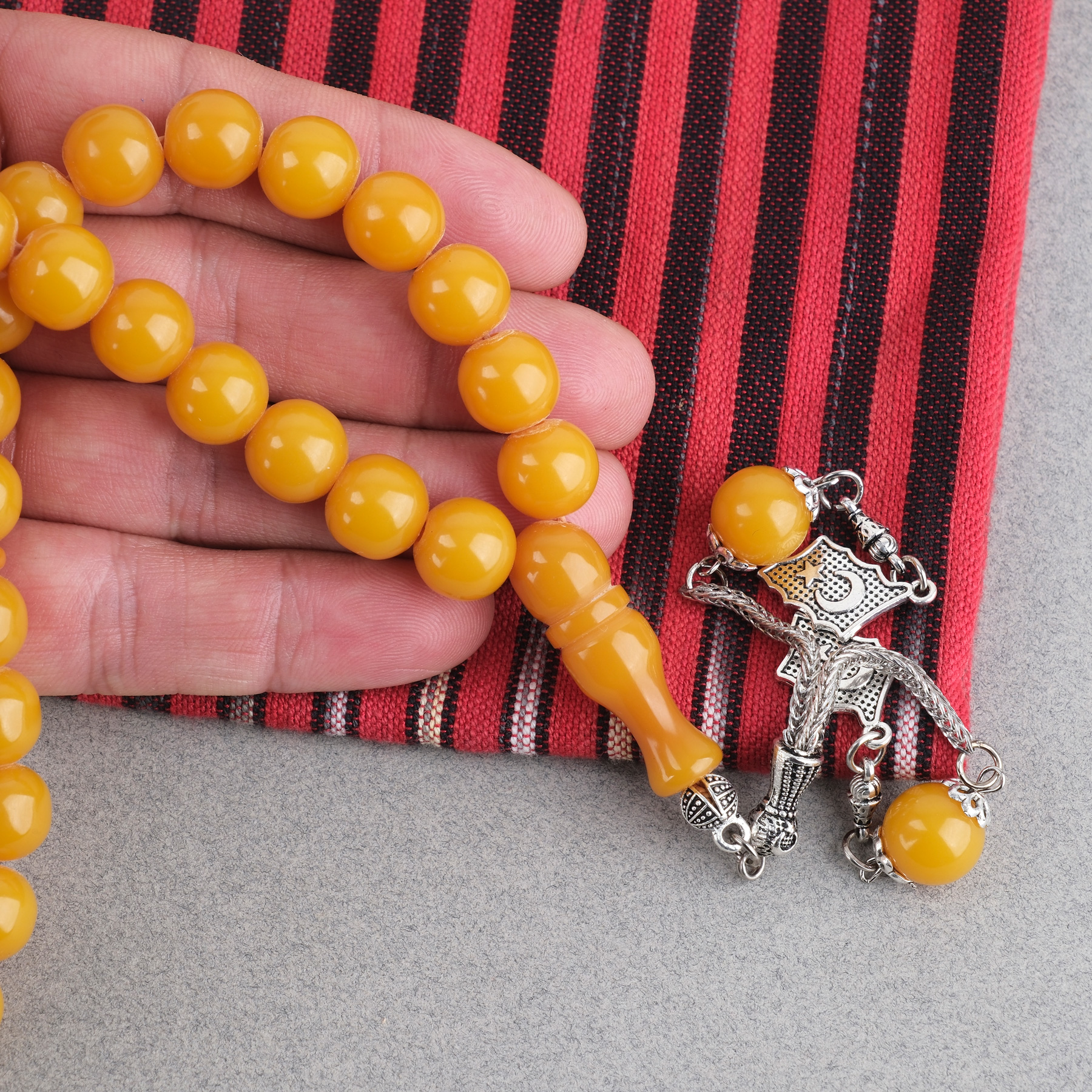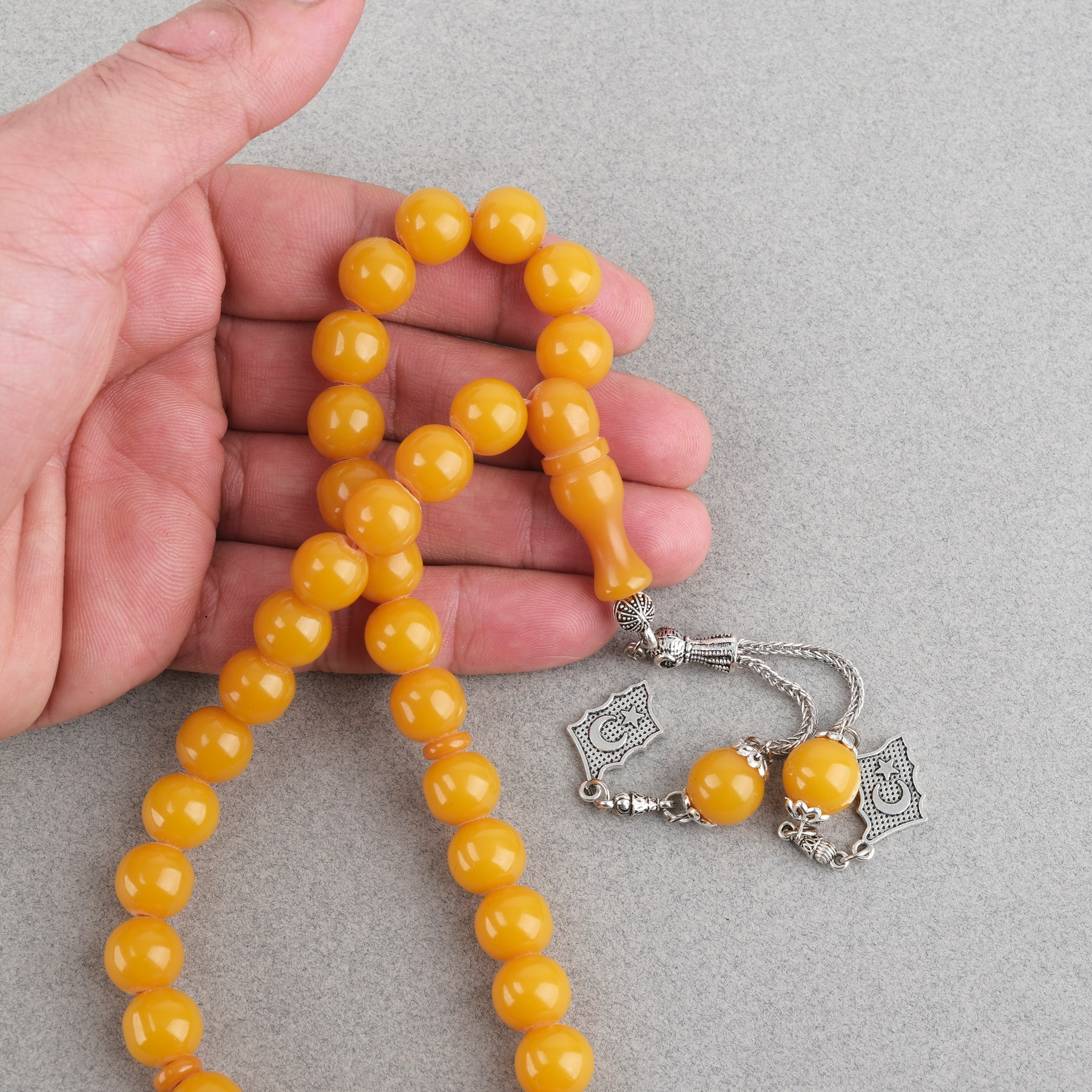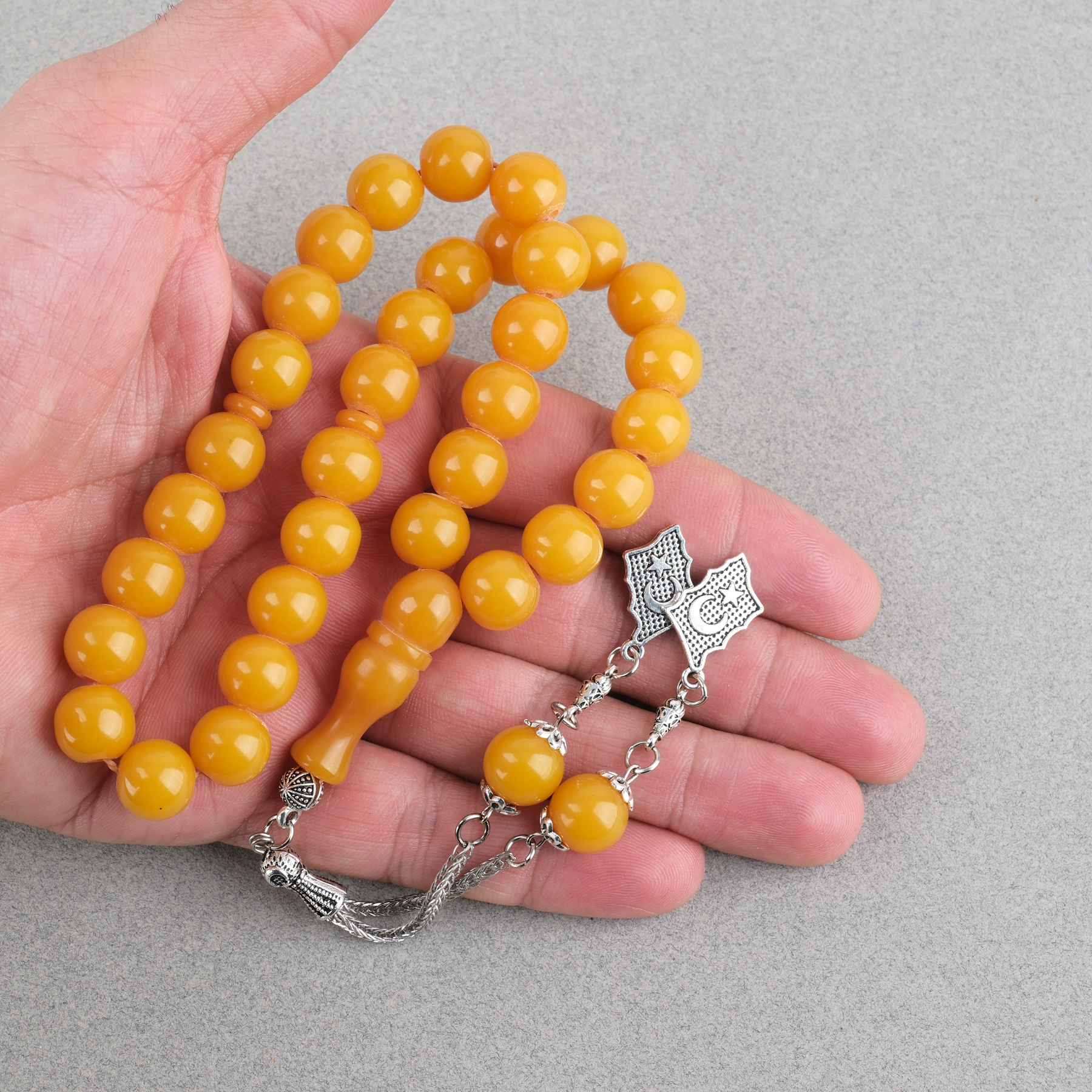 Sıkma Kehribar Alpaka Püsküllü Küre Kesim 11mm Tesbih