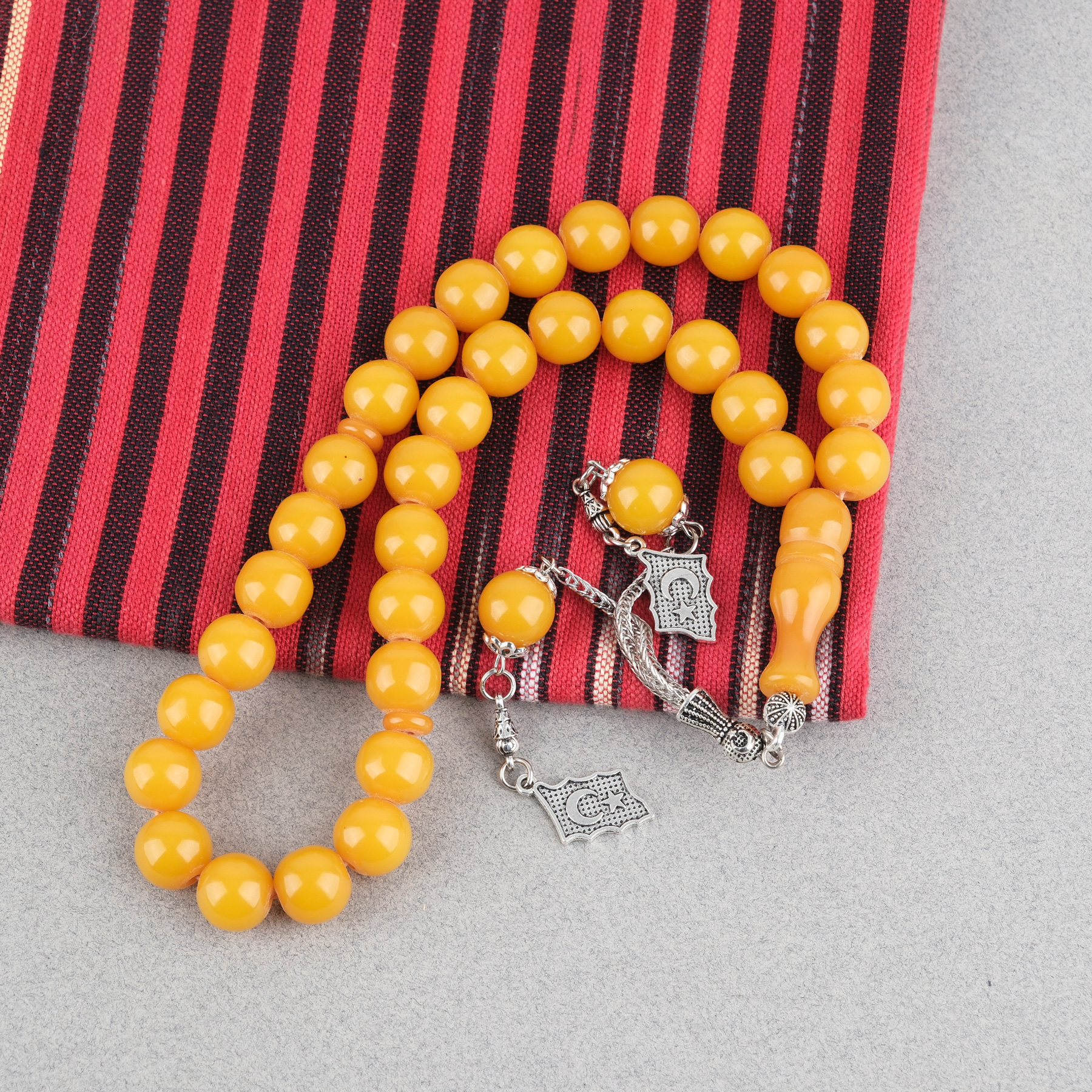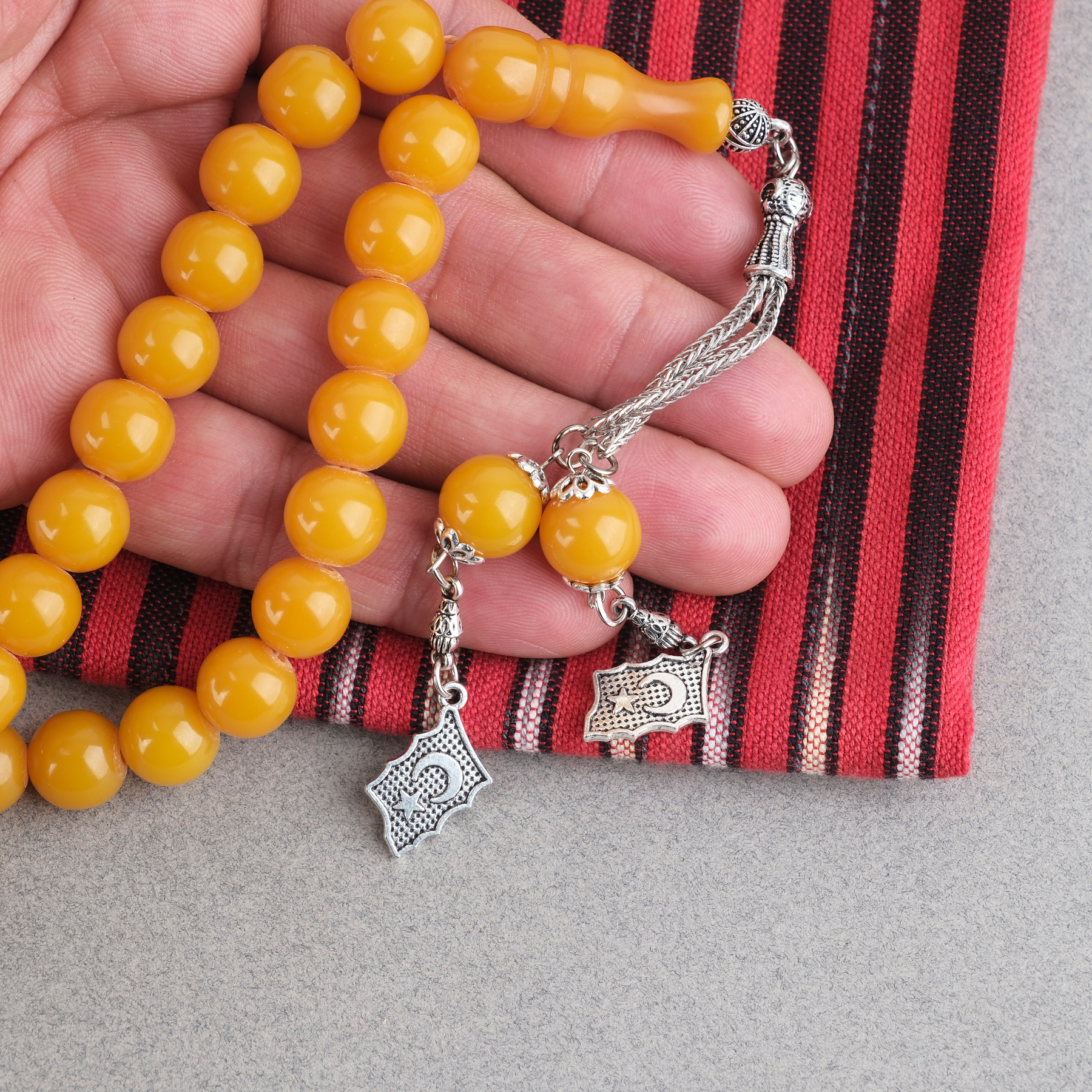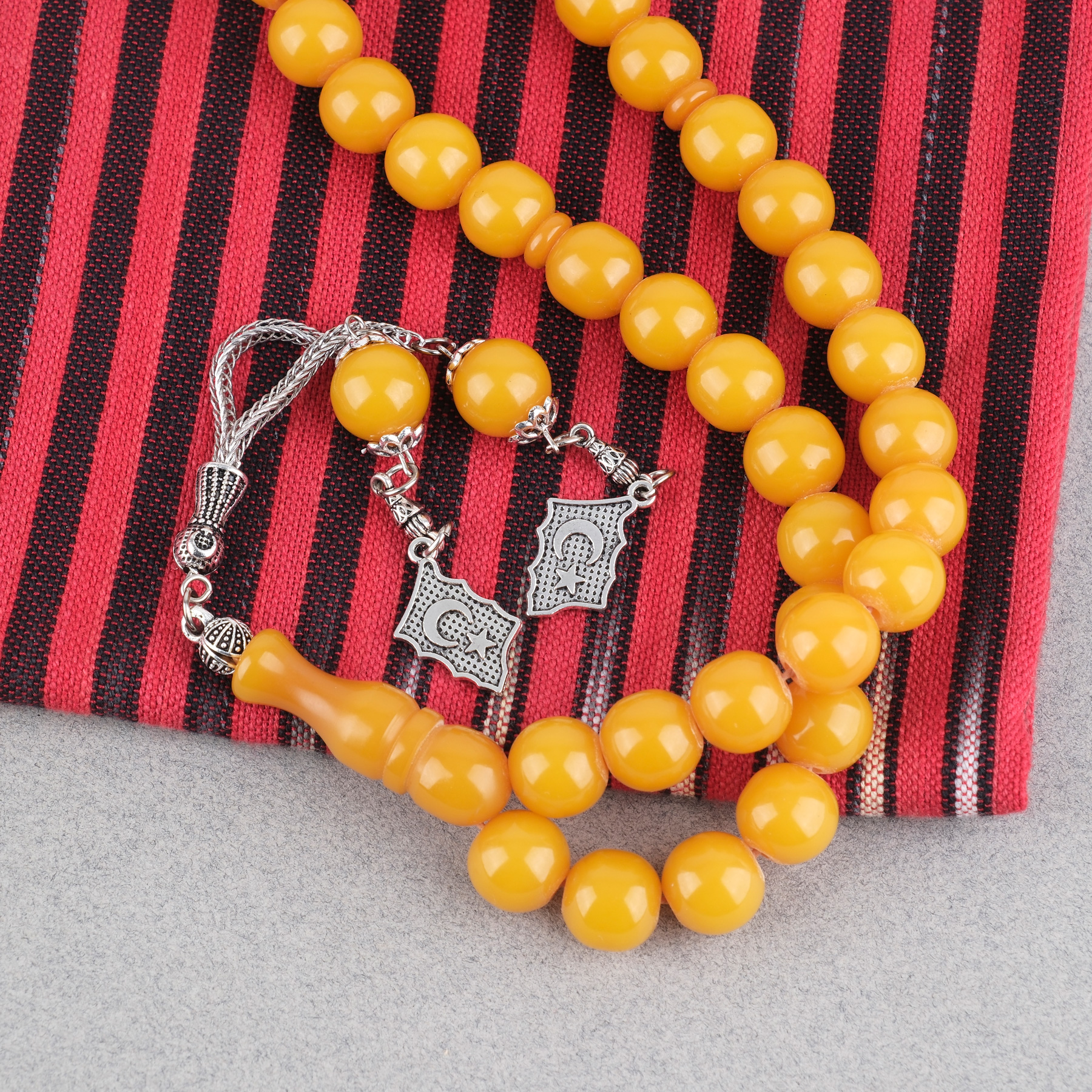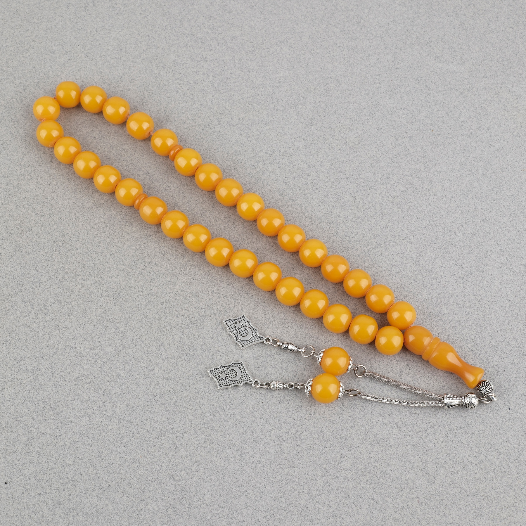 Sıkma Kehribar Alpaka Püsküllü Küre Kesim 11mm Tesbih