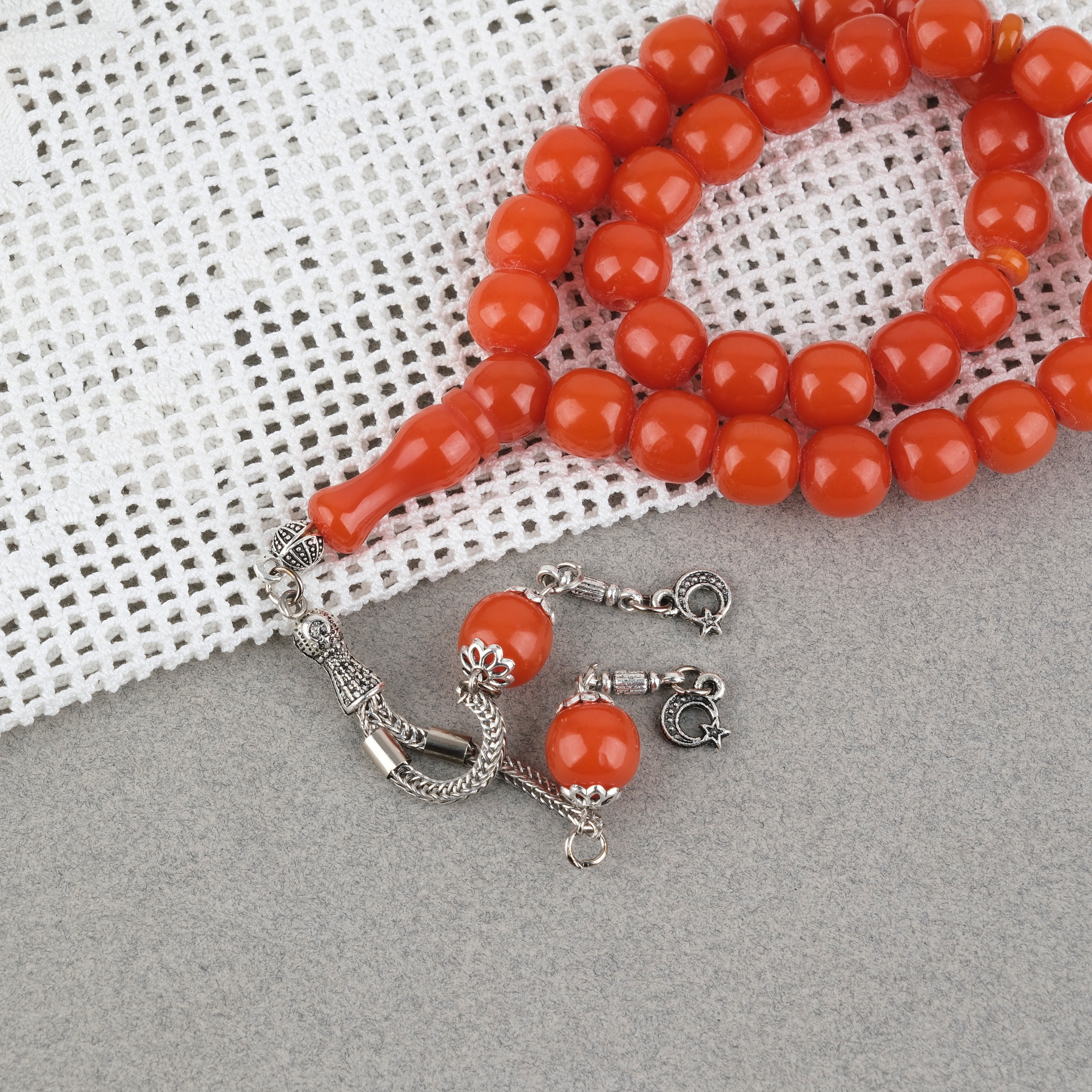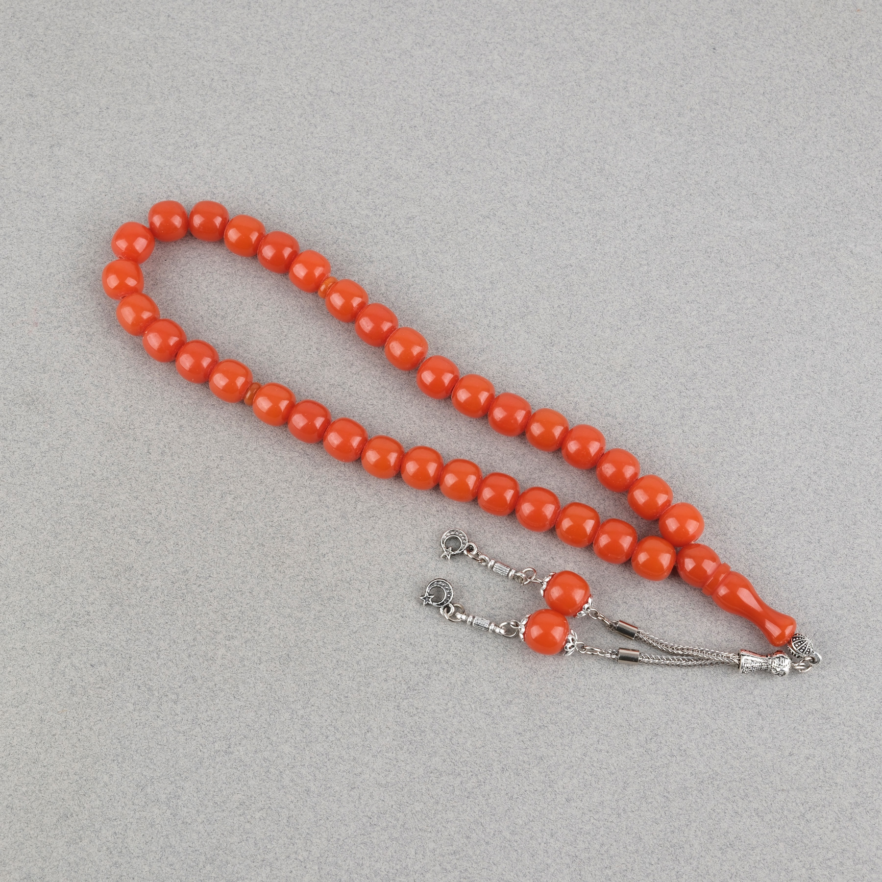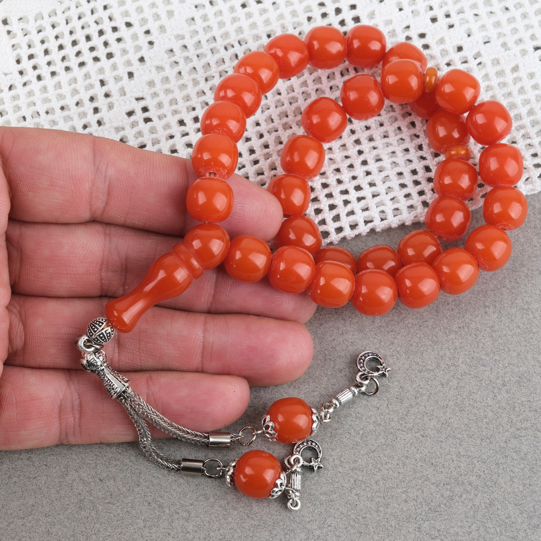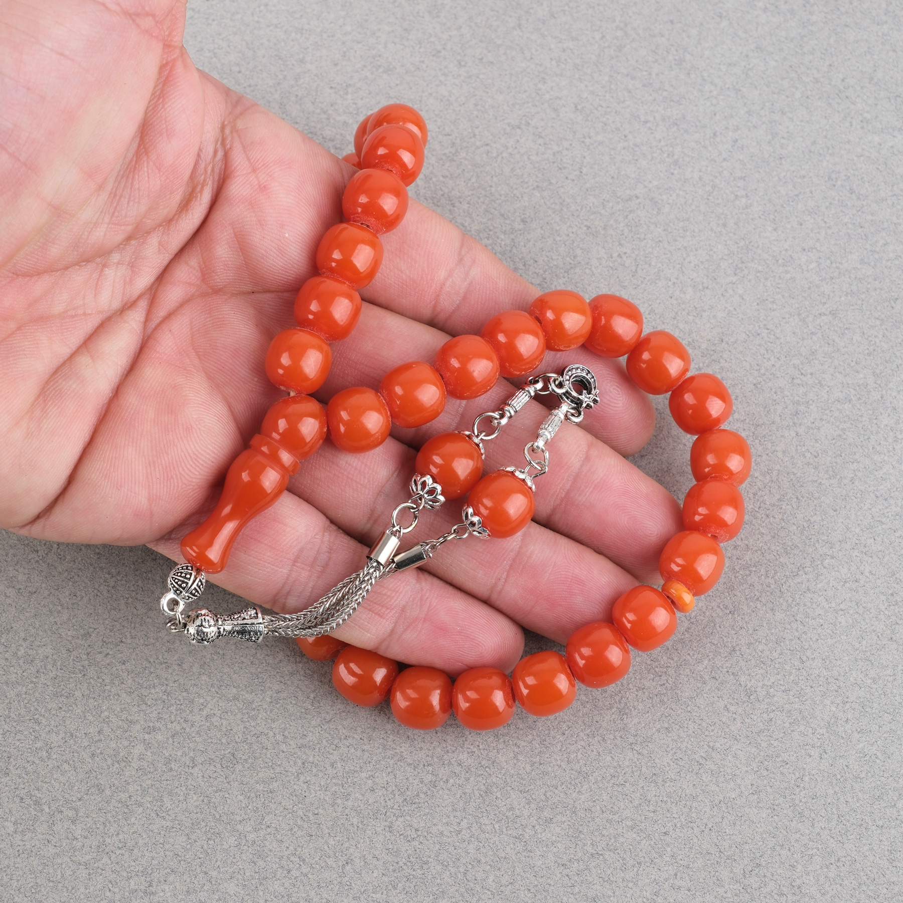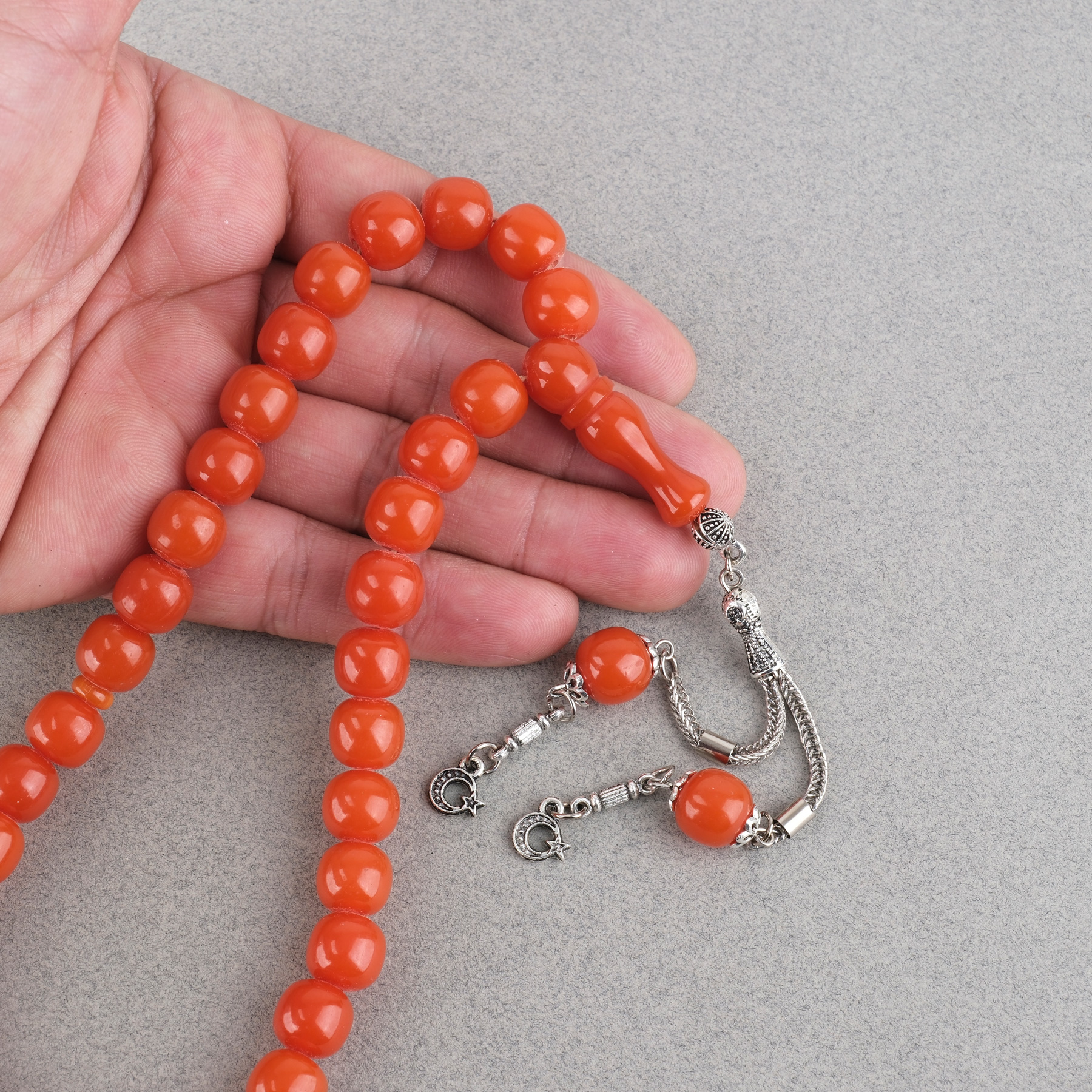 Sıkma Kehribar Alpaka Püsküllü Küre Kesim 11mm Tesbih - Turuncu