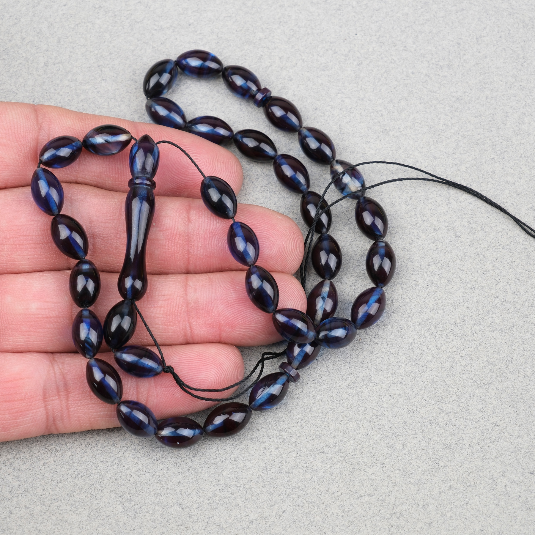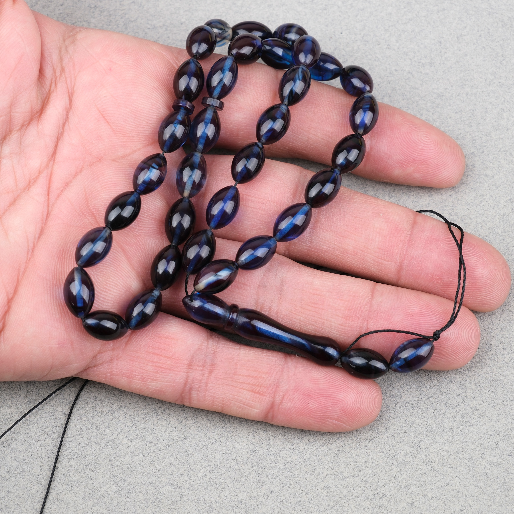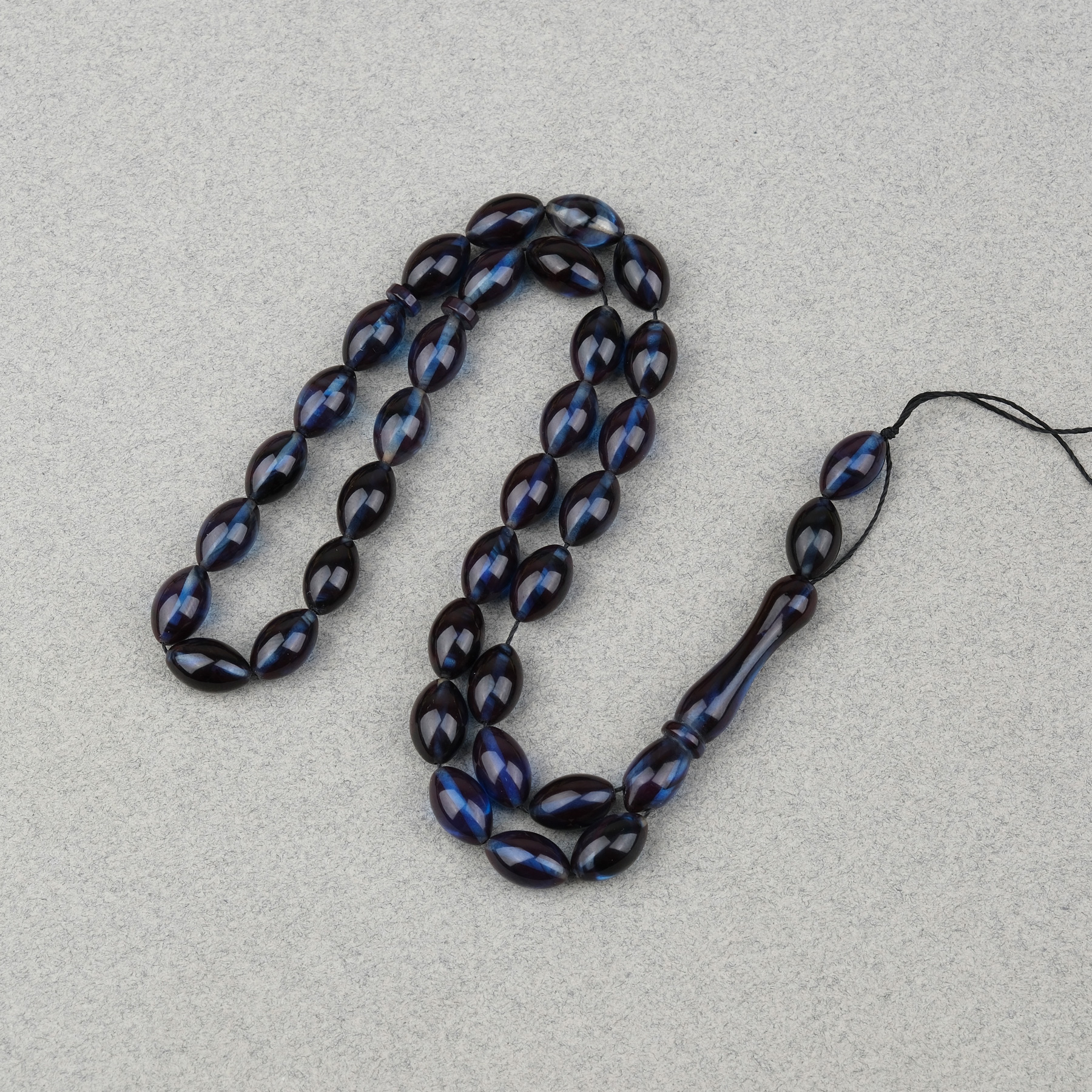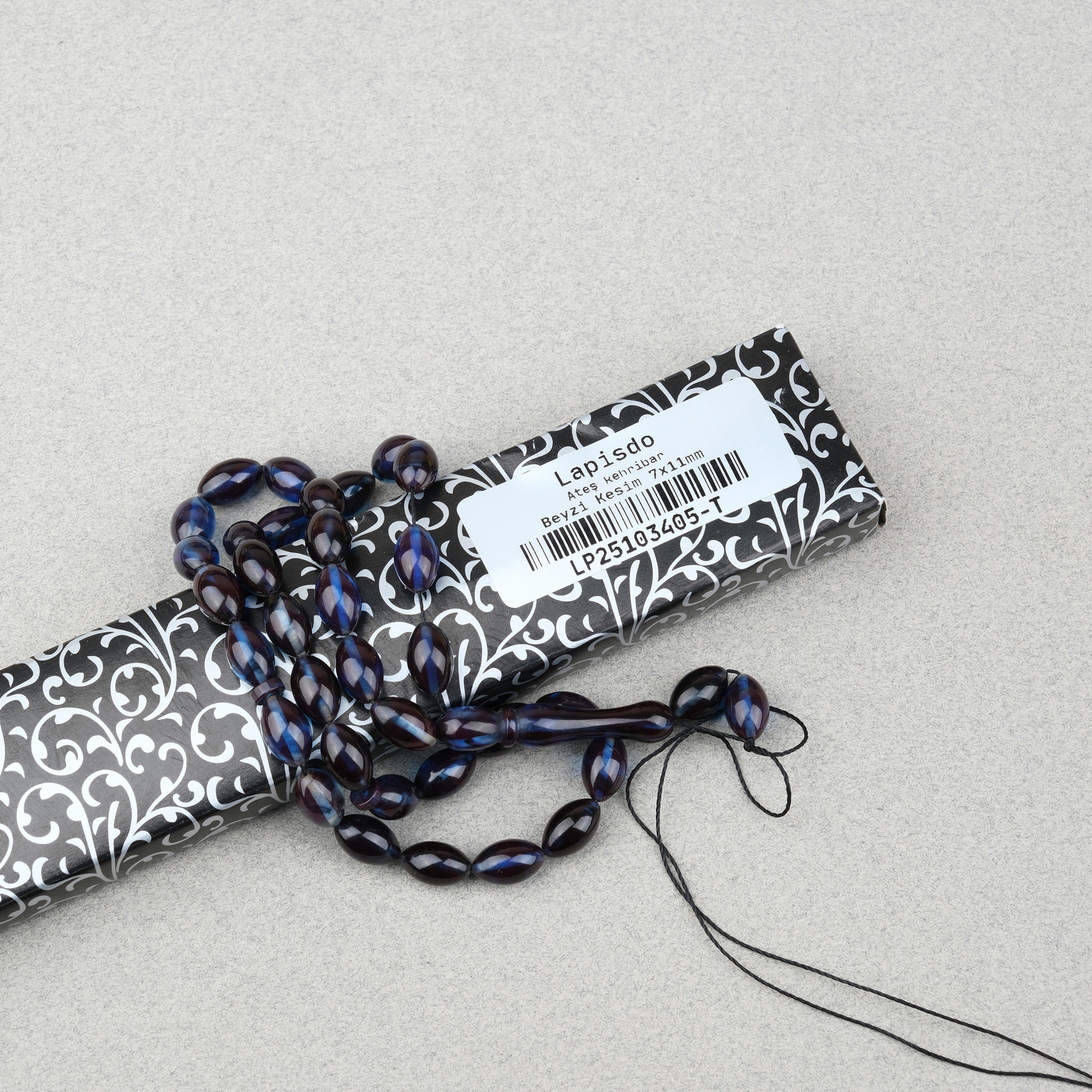 Sıkma Kehribar Beyzi Kesim 7x11mm Tesbih- Lacivert