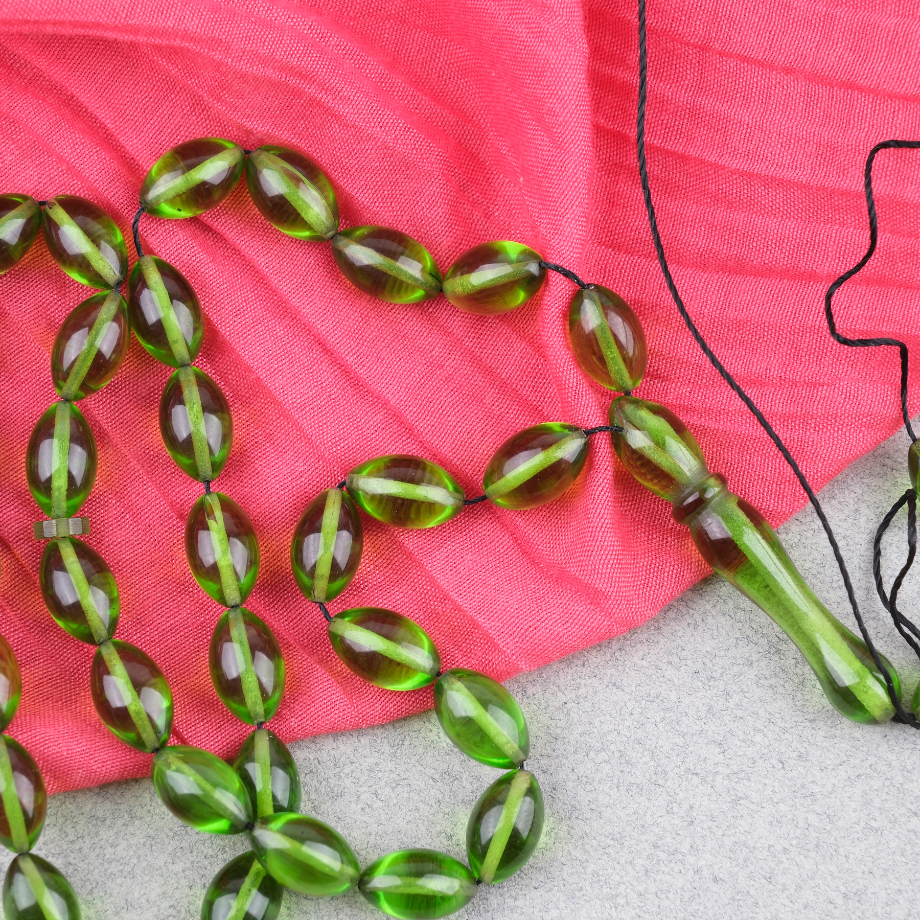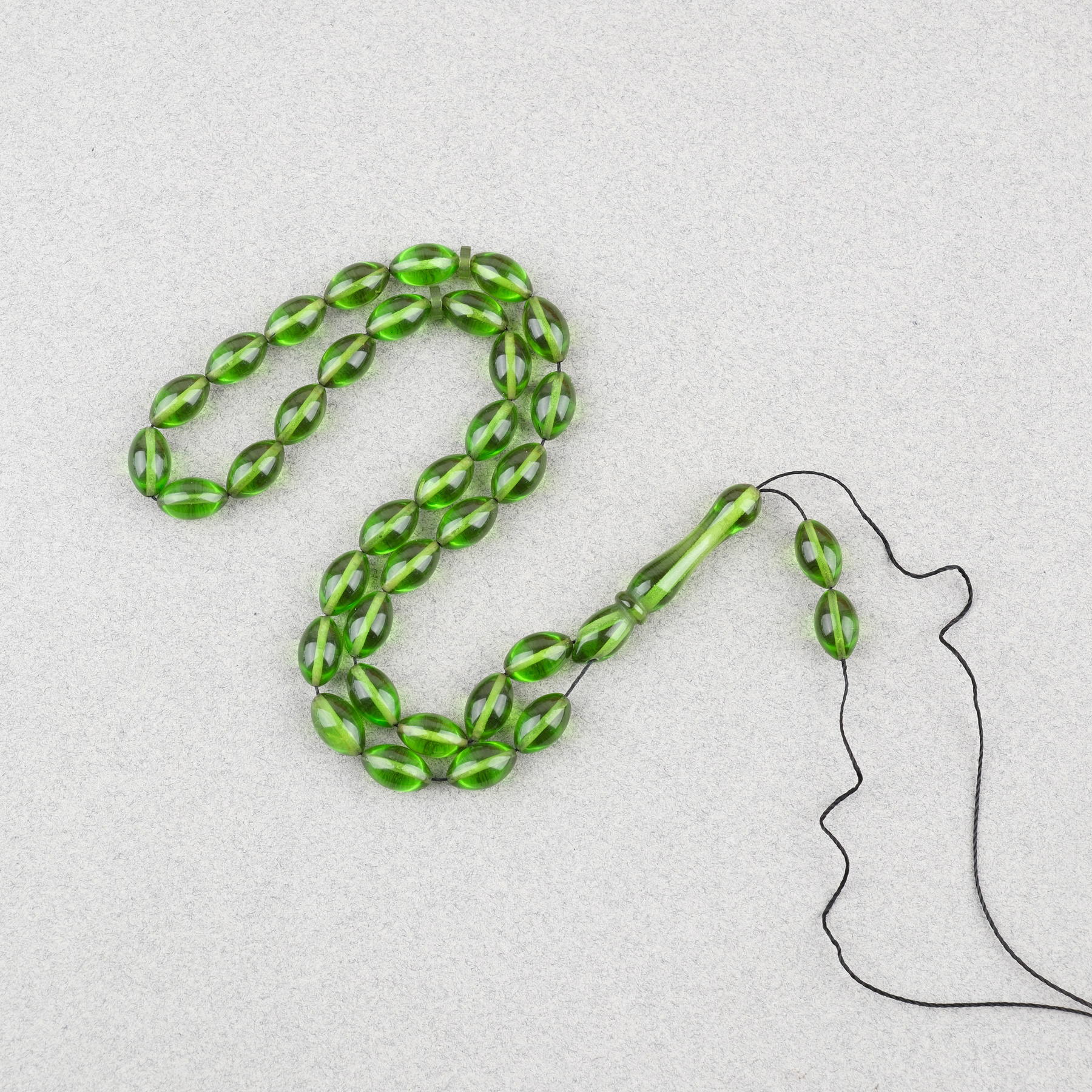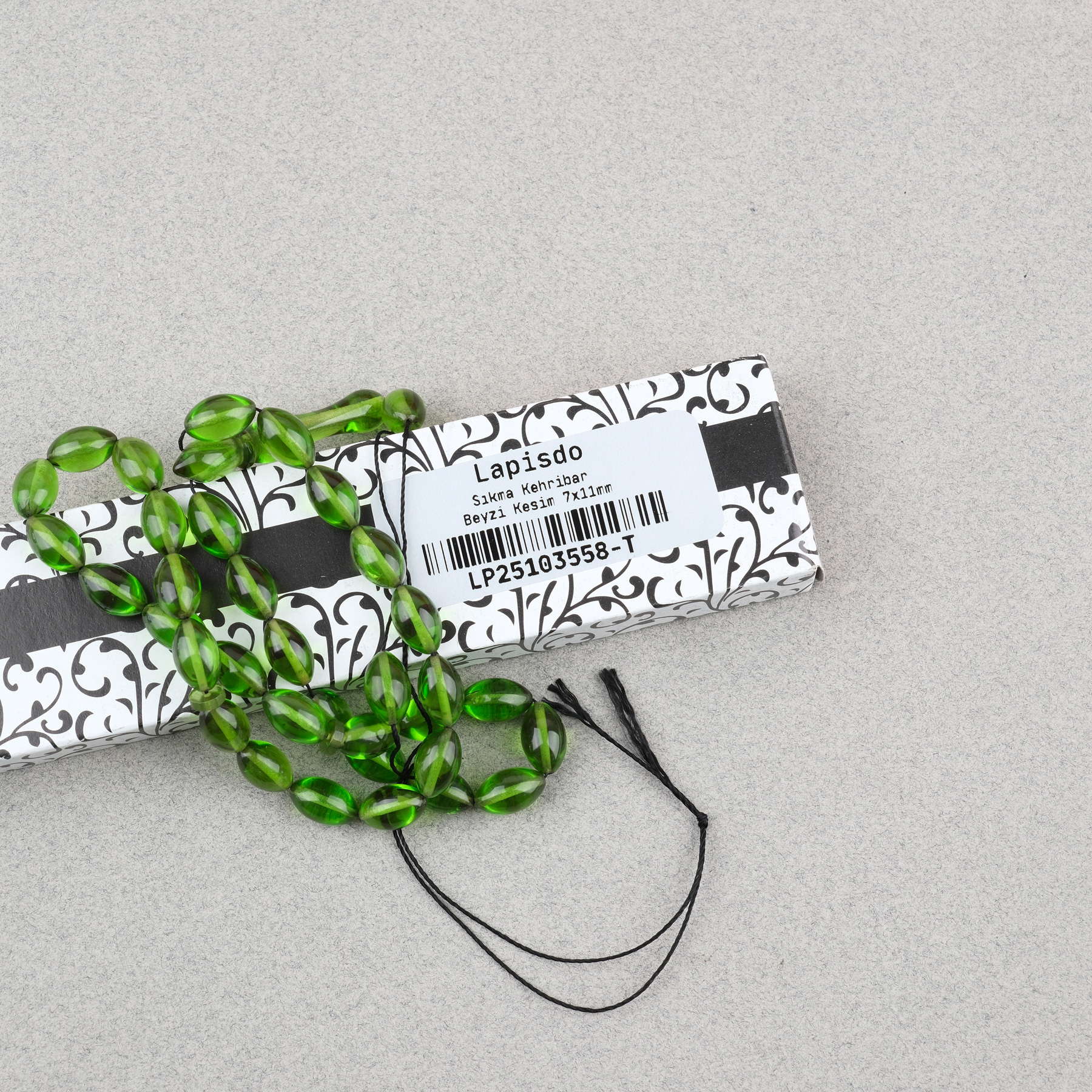 Sıkma Kehribar Beyzi Kesim 7x11mm Tesbih Püskülsüz Yeşil