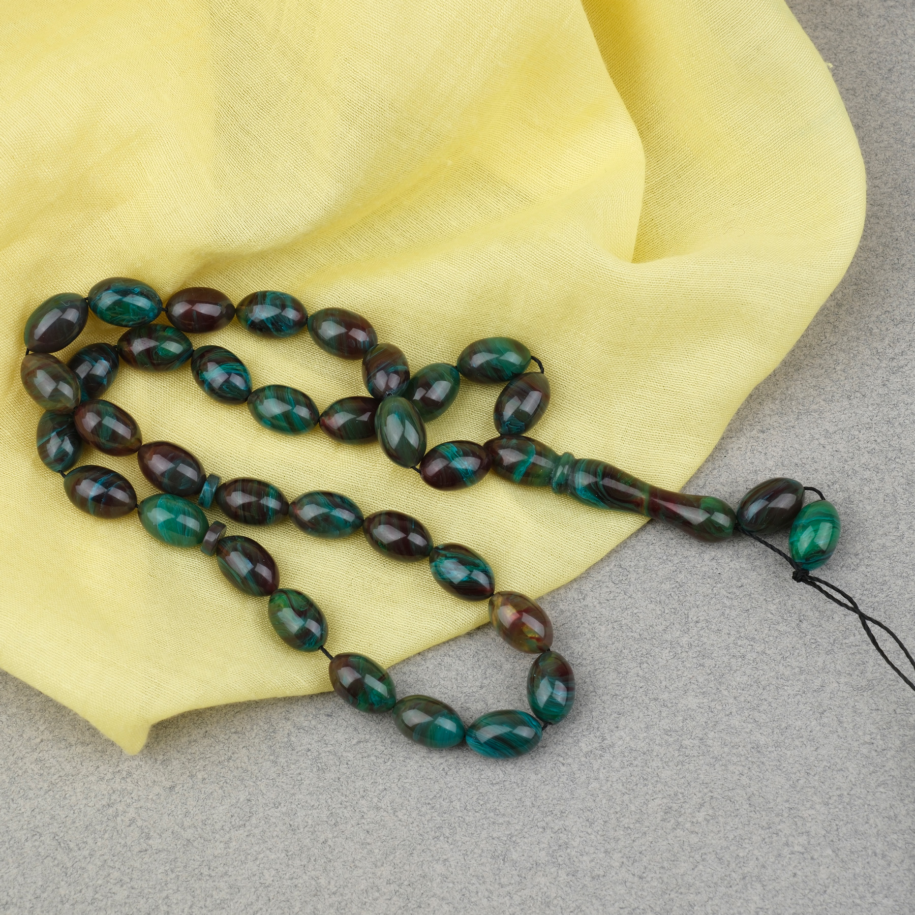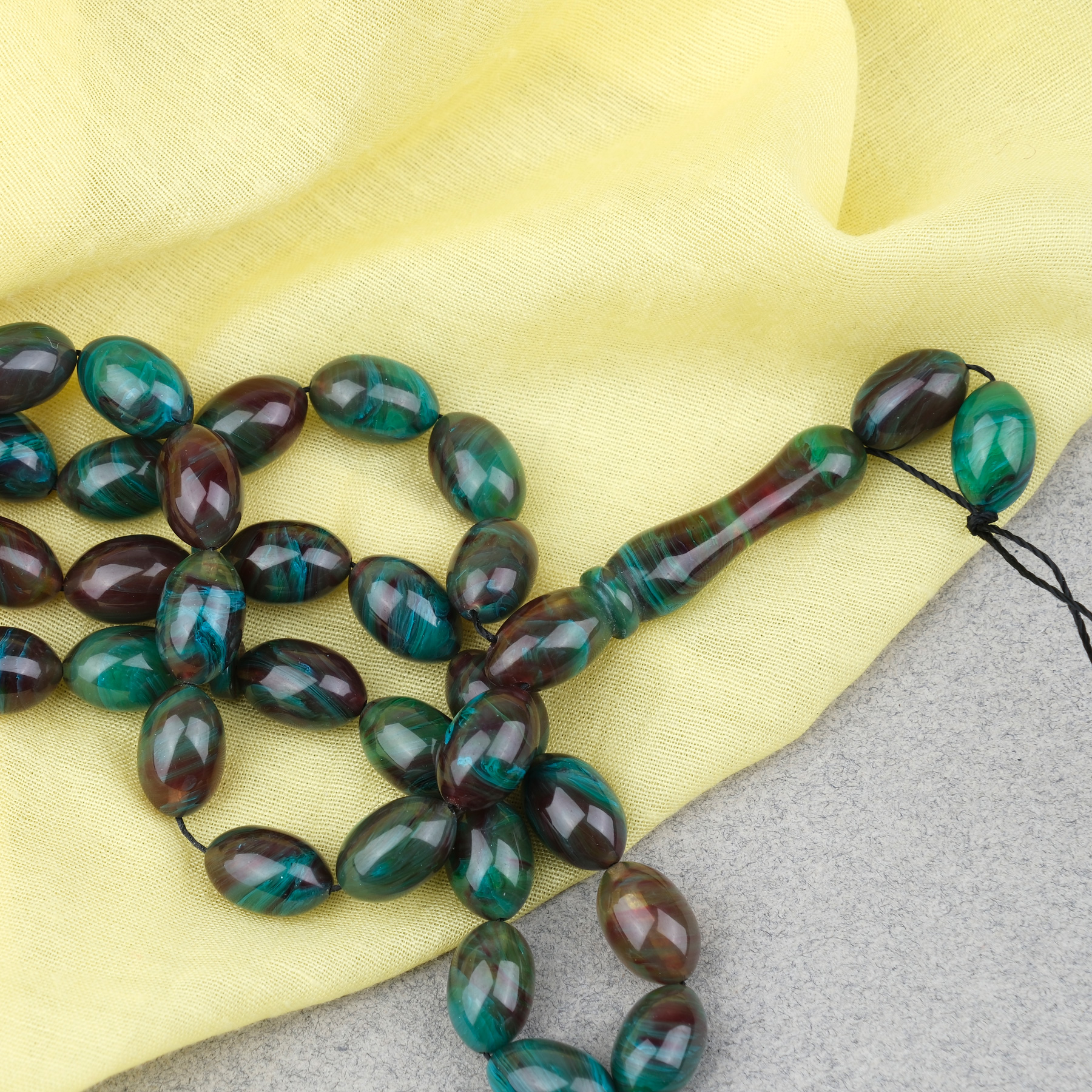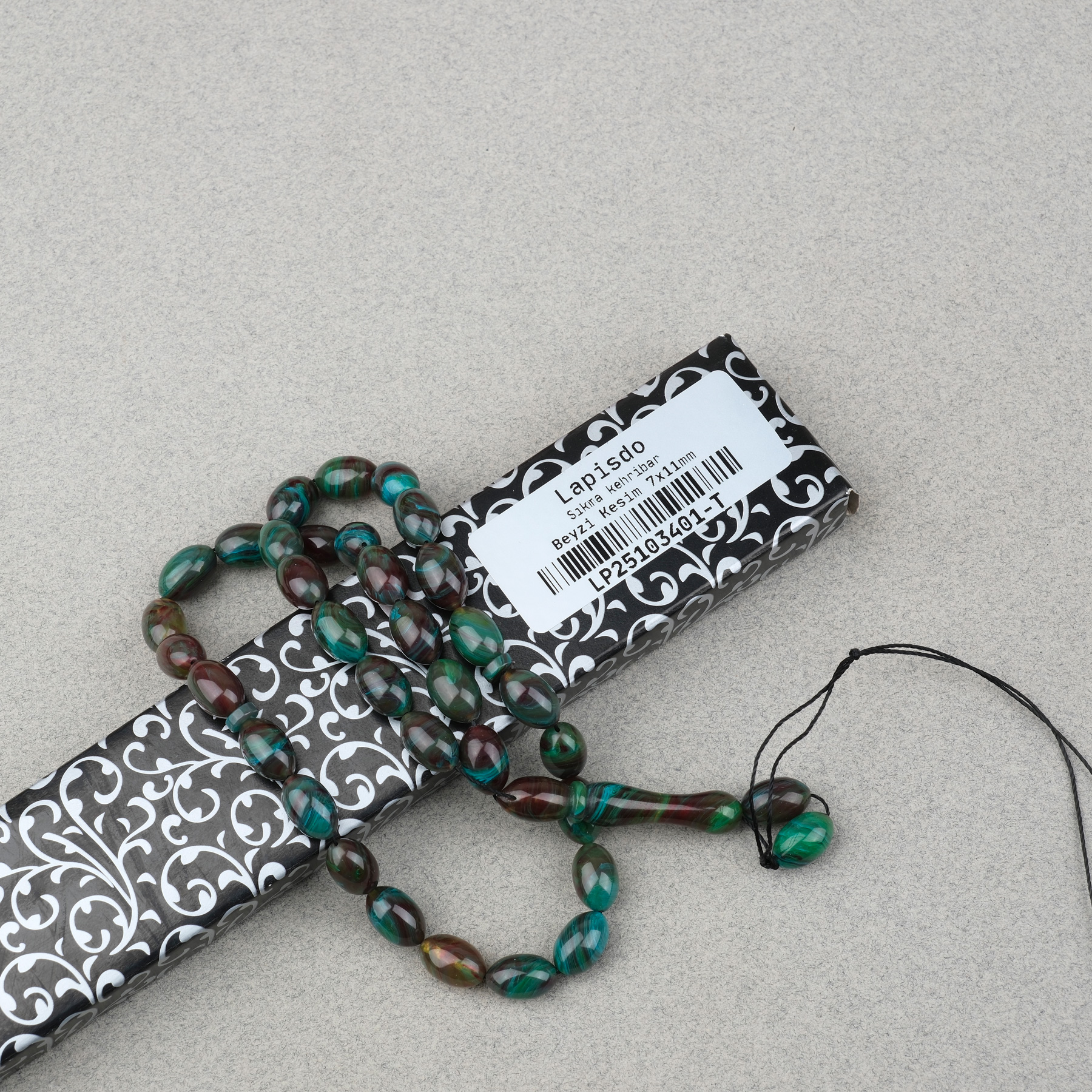 Sıkma Kehribar Beyzi Kesim 7x11mm Tesbih- Yeşil- Kahverengi