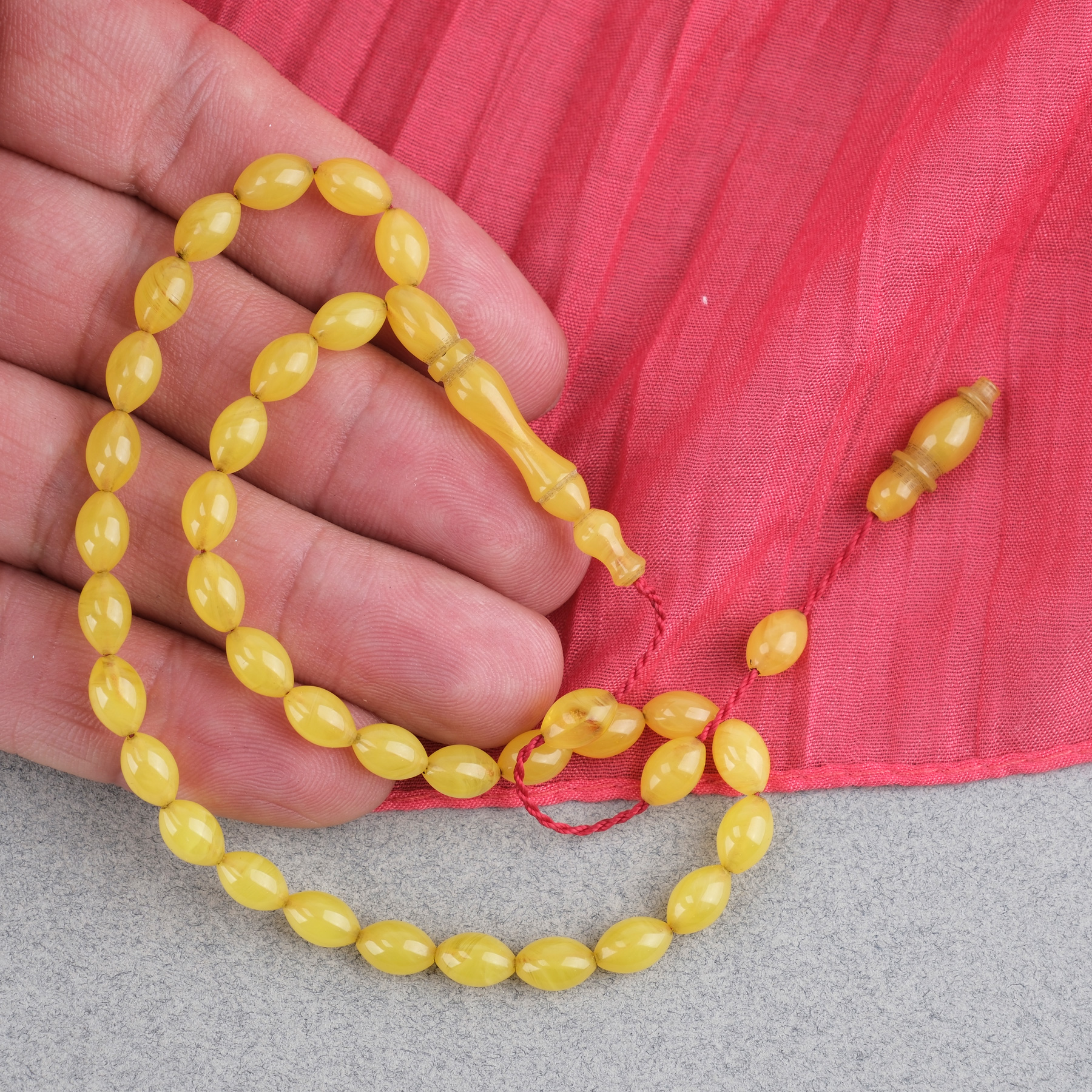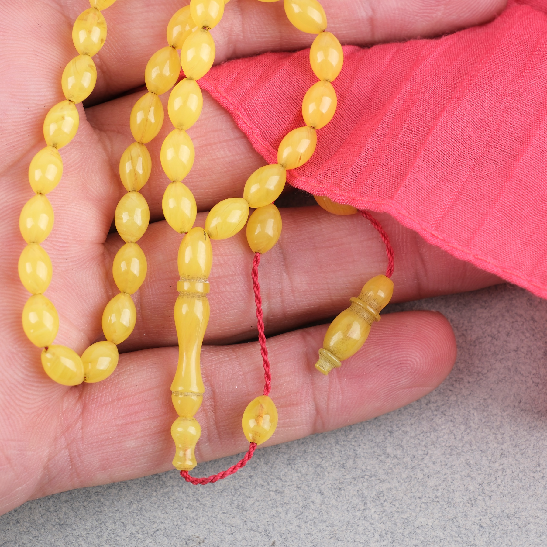 Sıkma Kehribar Beyzi Kesim Sistemli Bilek Boy 5x8mm Tesbih Hardal