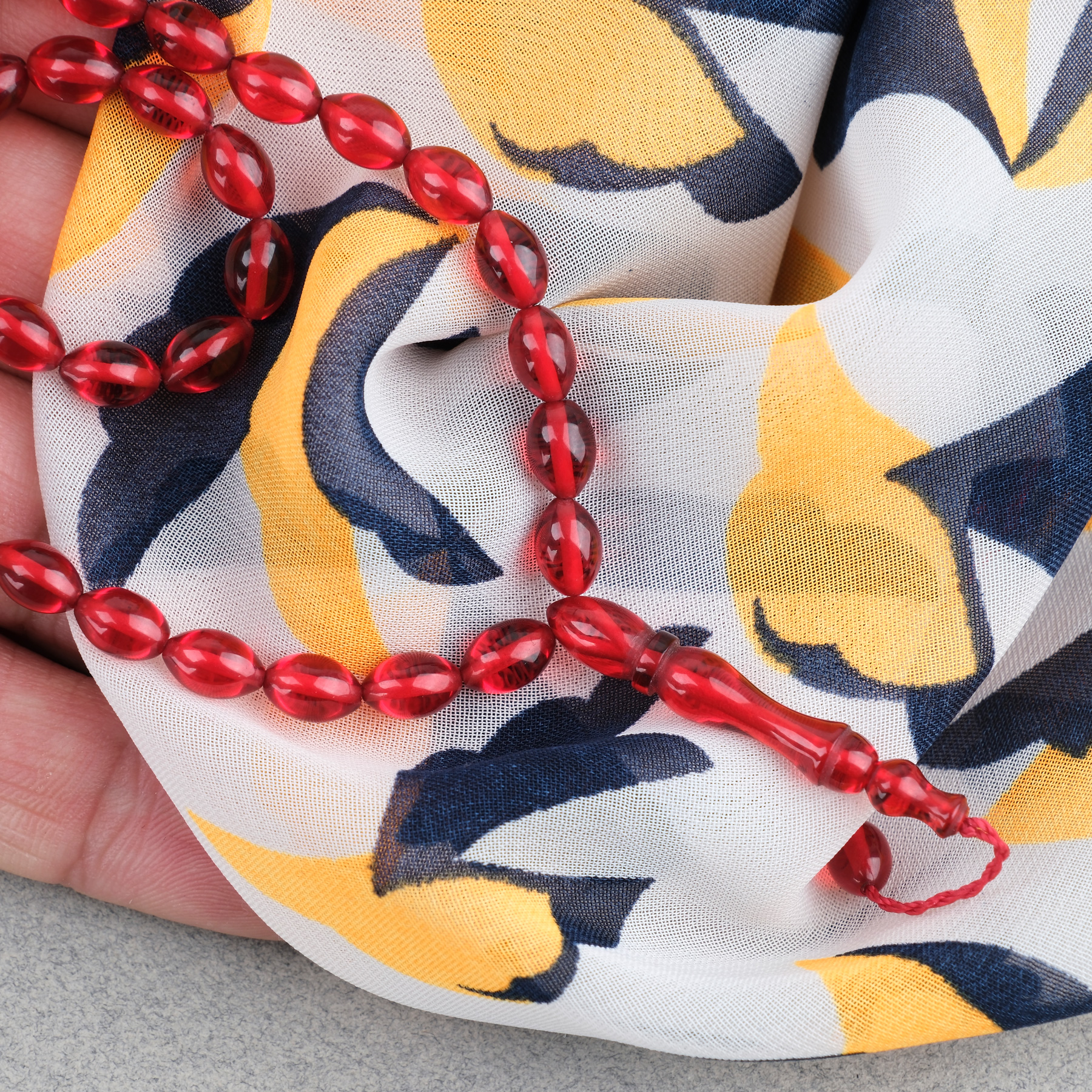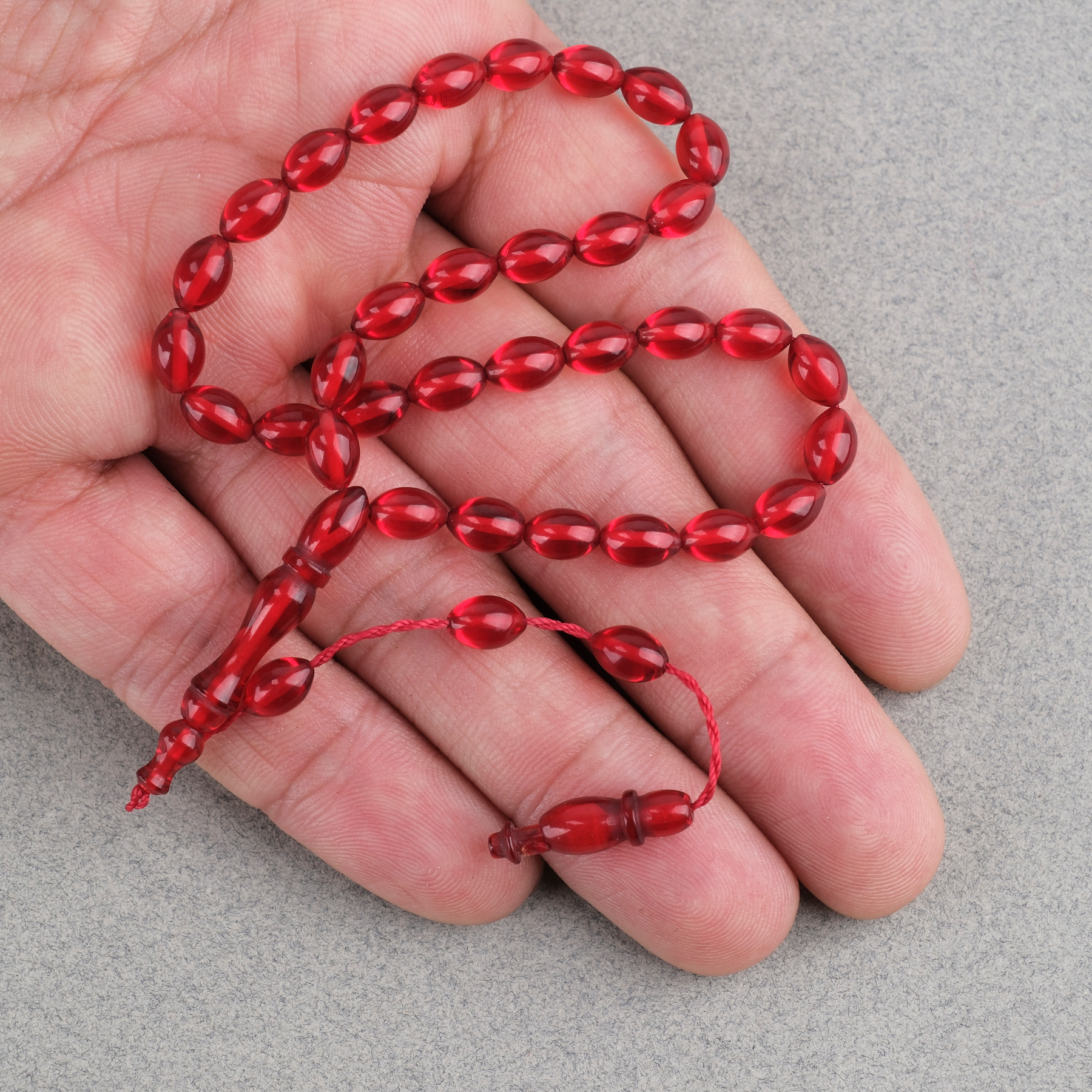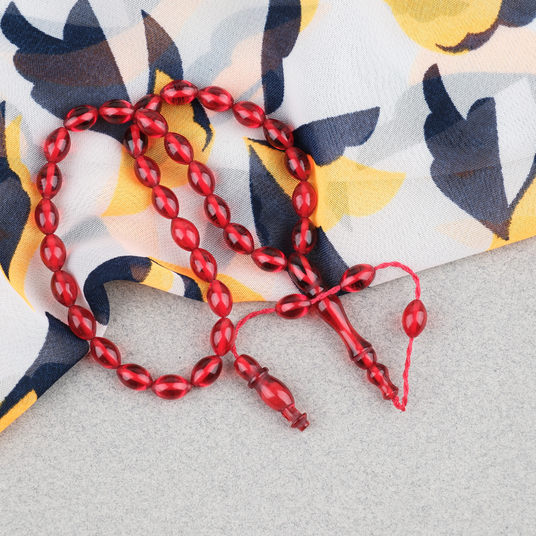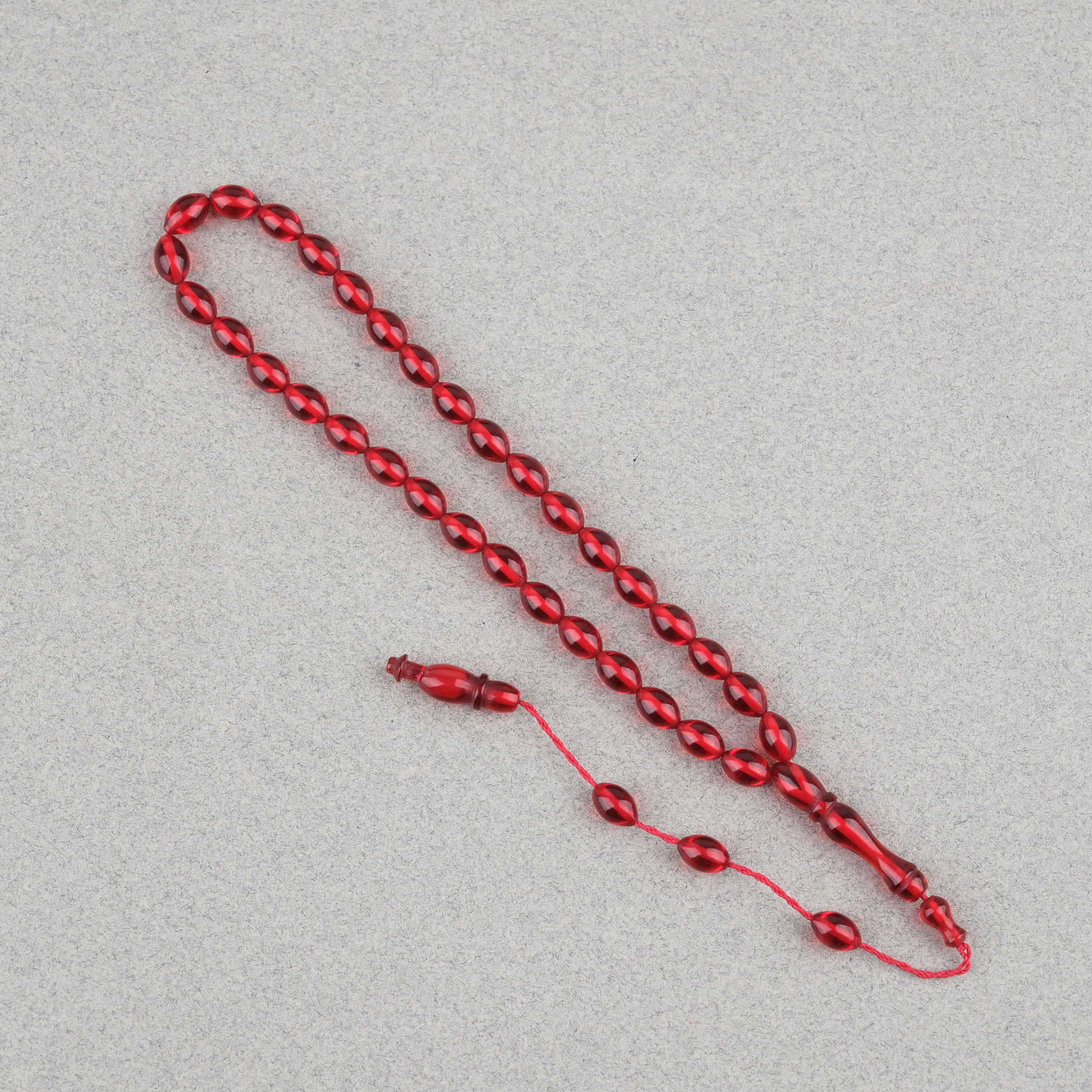Sıkma Kehribar Beyzi Kesim Sistemli Bilek Boy 5x8mm Tesbih Kırmızı