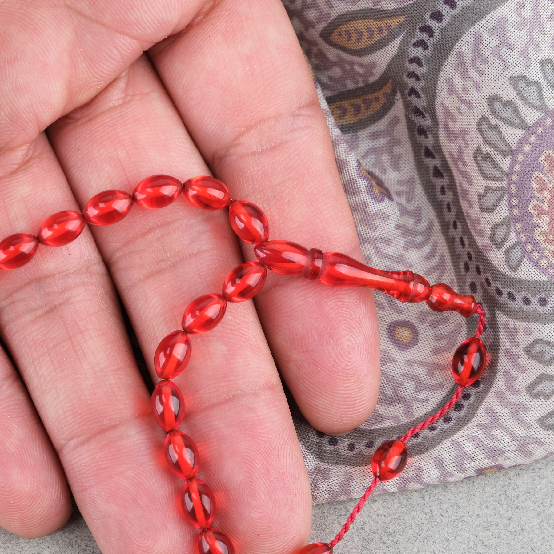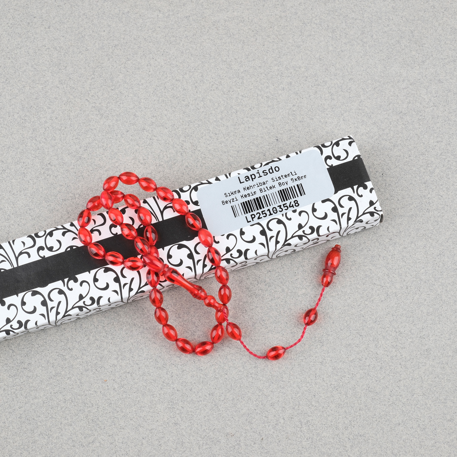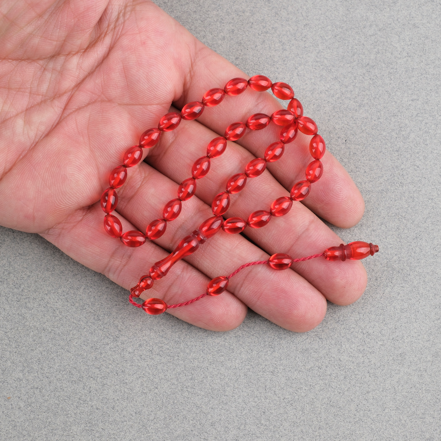 Sıkma Kehribar Beyzi Kesim Sistemli Bilek Boy 5x8mm Tesbih Kırmızı