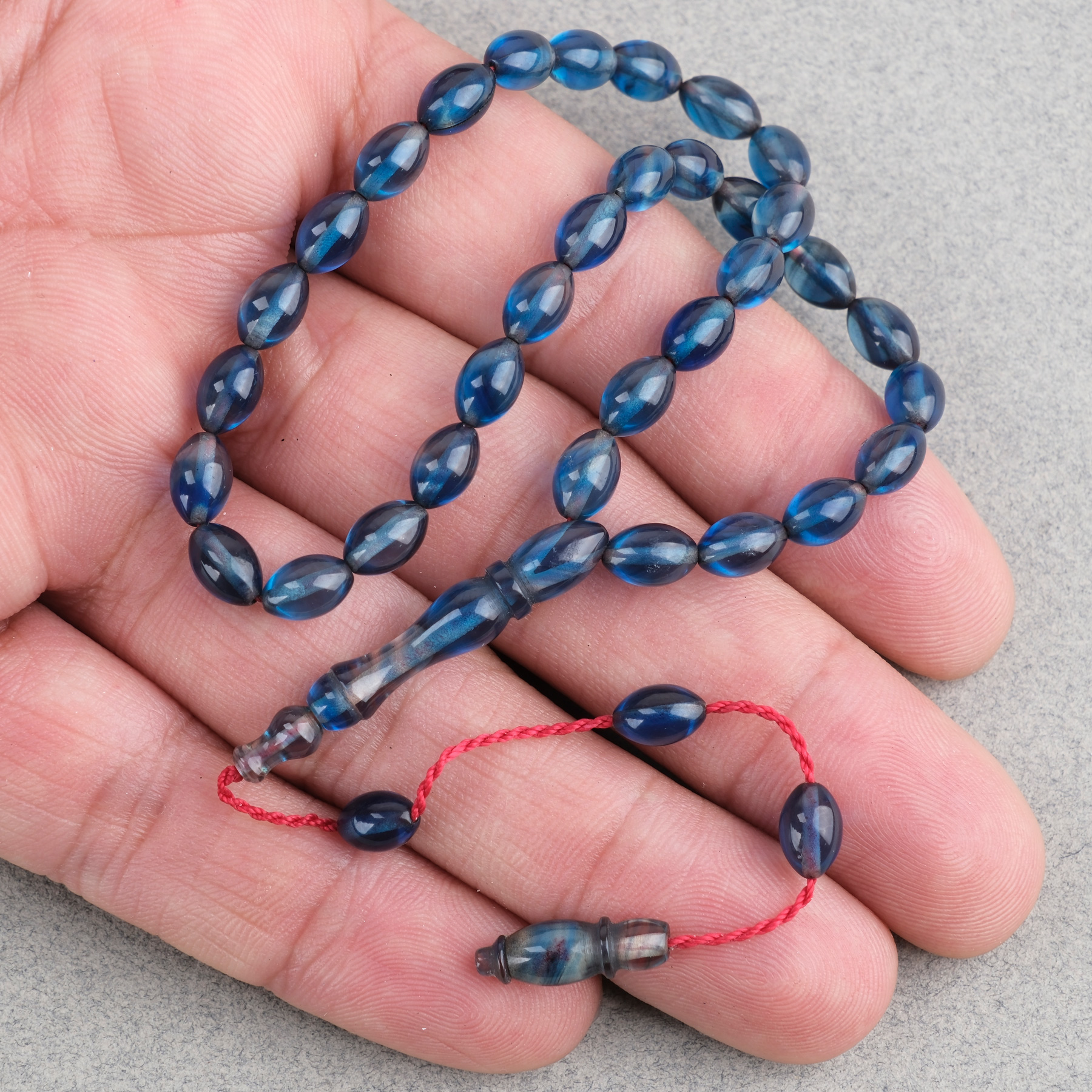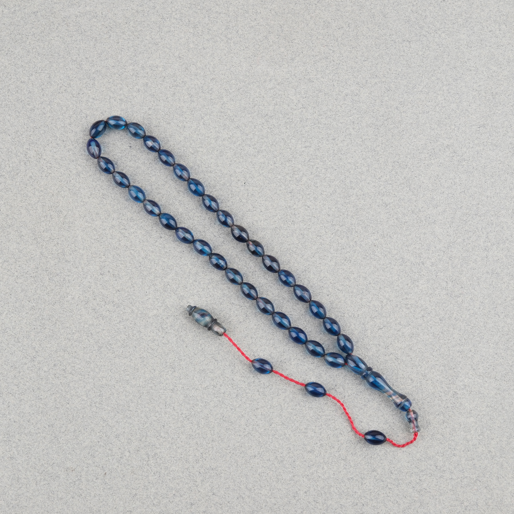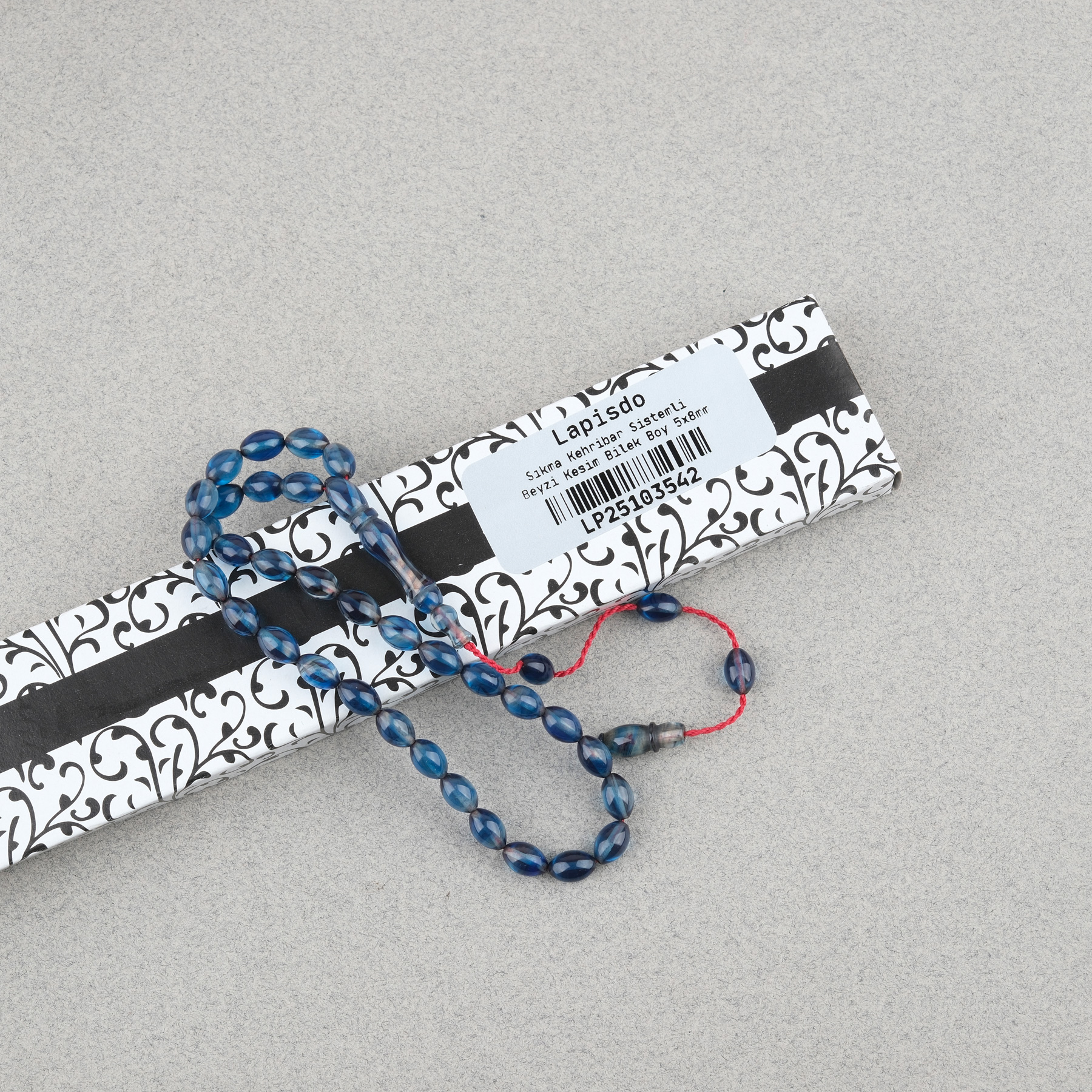 Sıkma Kehribar Beyzi Kesim Sistemli Bilek Boy 5x8mm Tesbih Mavi