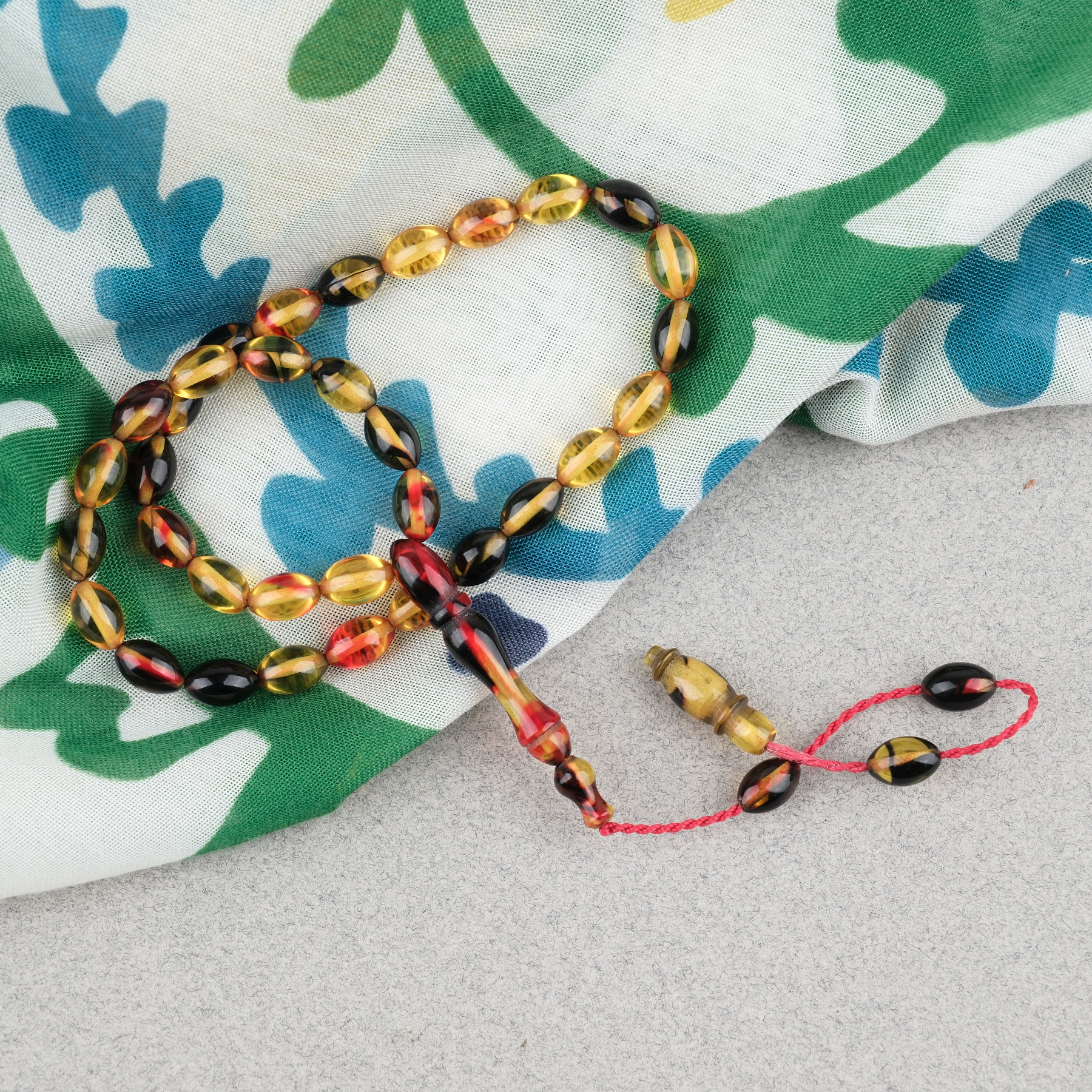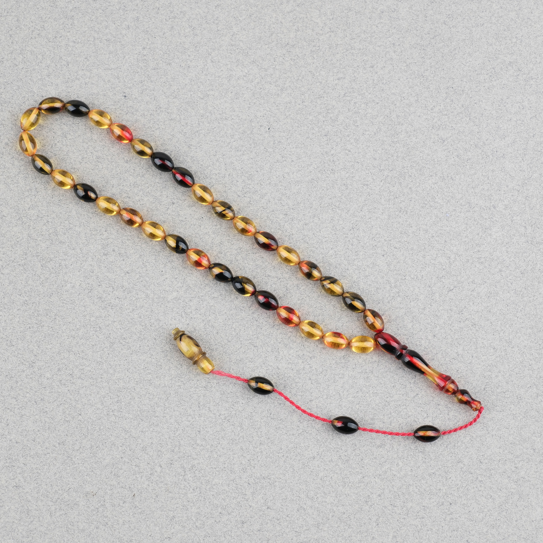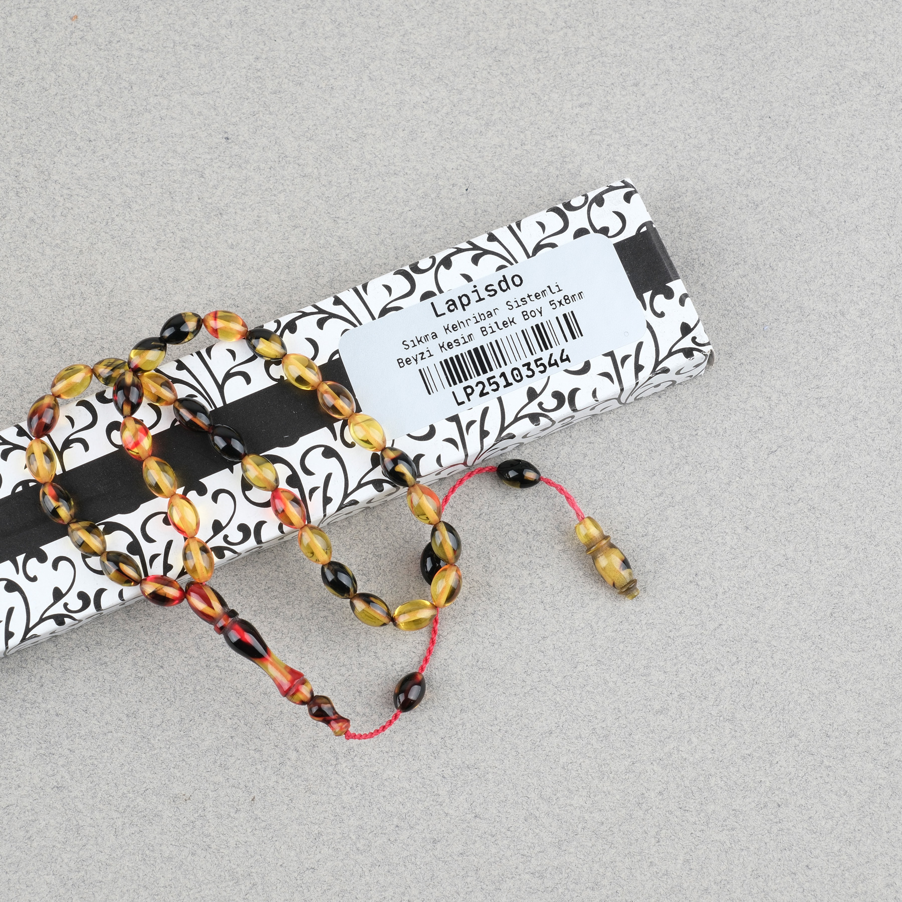 Sıkma Kehribar Beyzi Kesim Sistemli Bilek Boy 5x8mm Tesbih Sarı Kırmızı