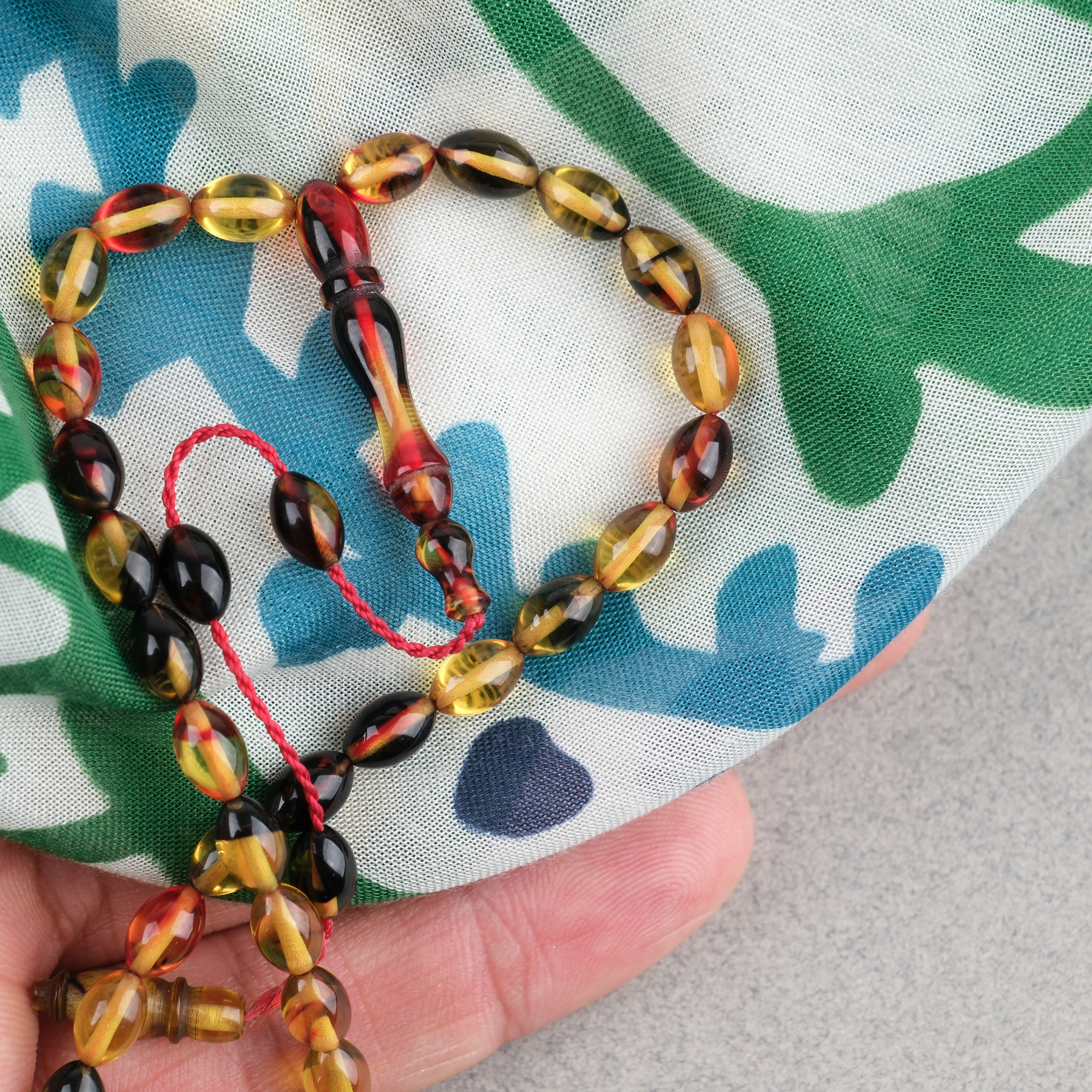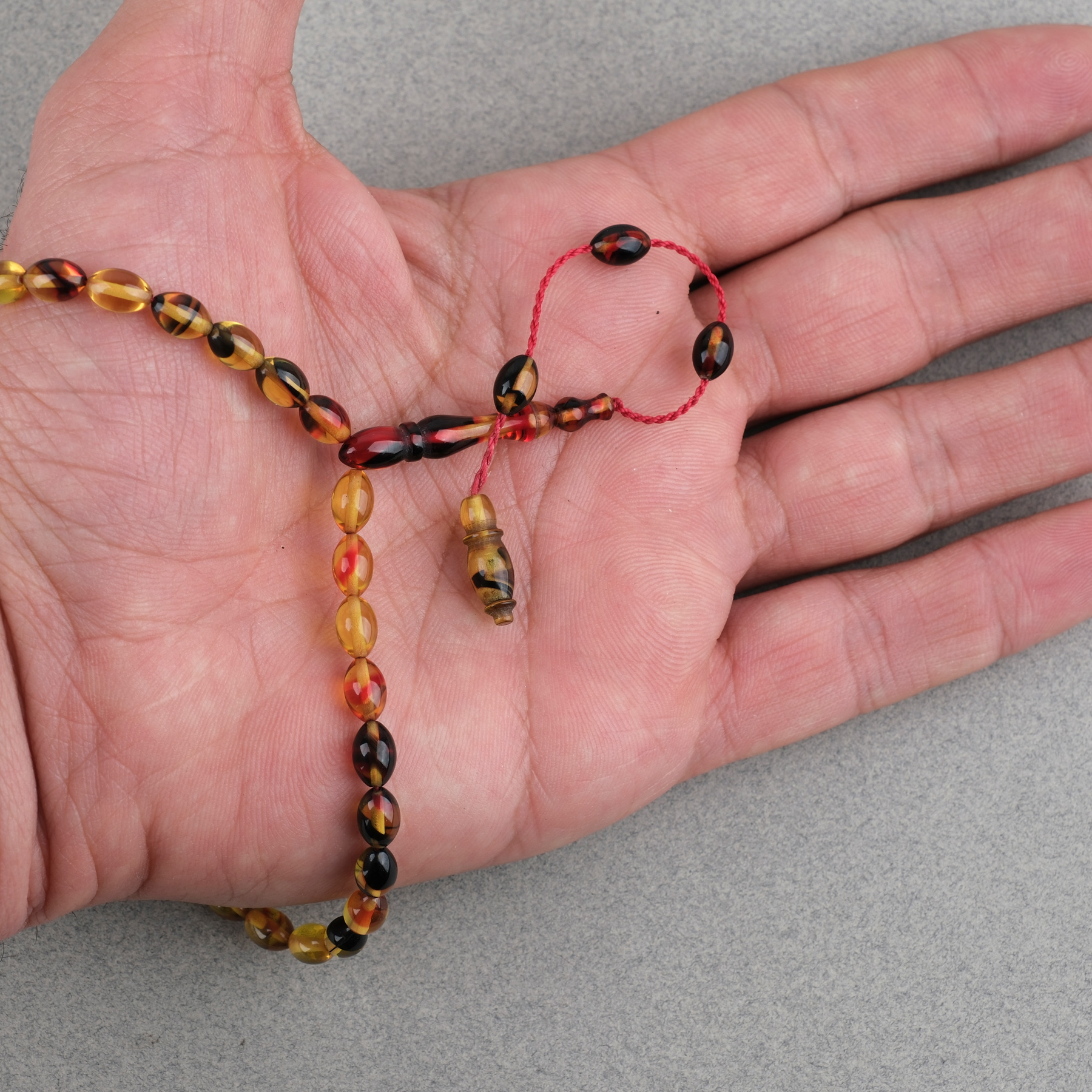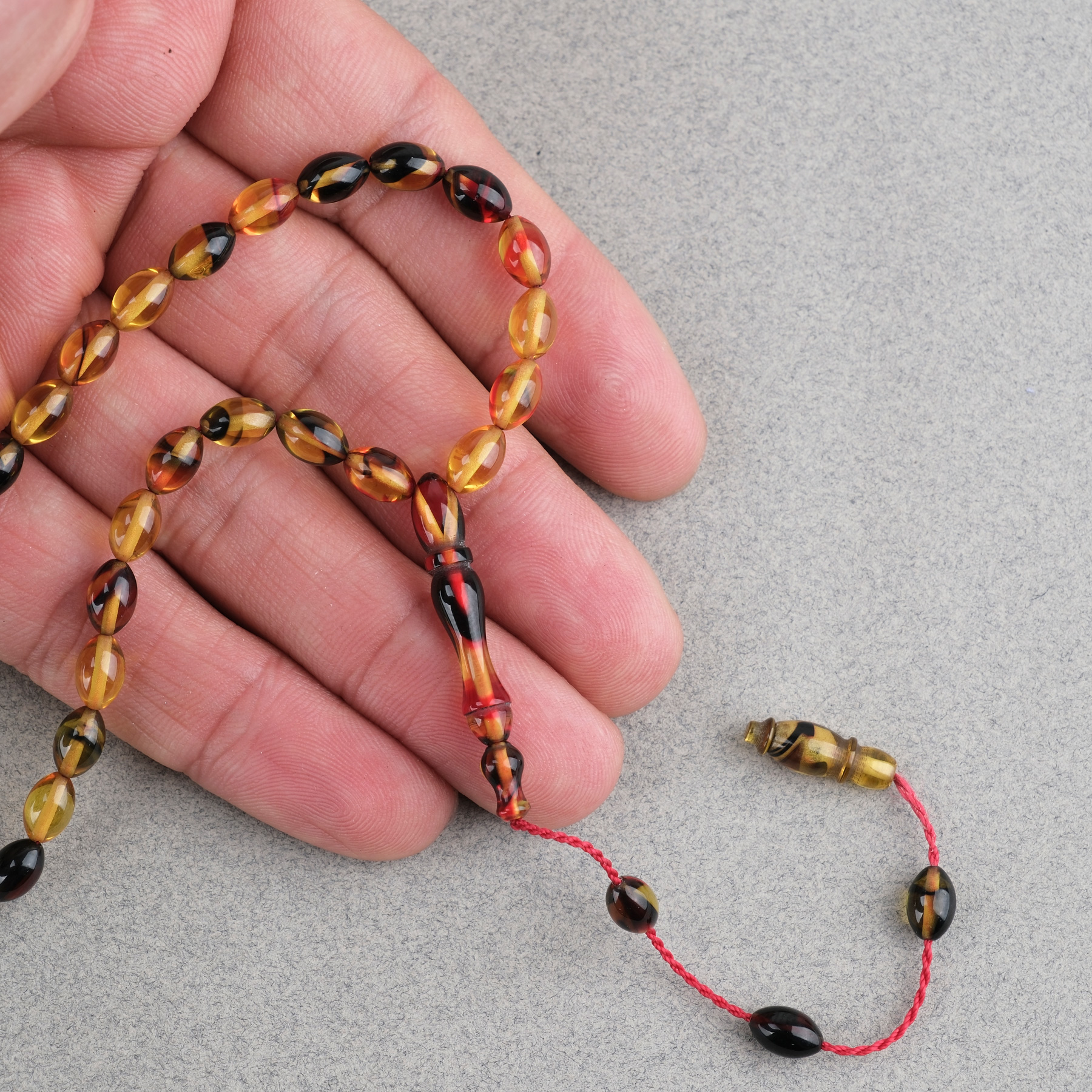 Sıkma Kehribar Beyzi Kesim Sistemli Bilek Boy 5x8mm Tesbih Sarı Kırmızı