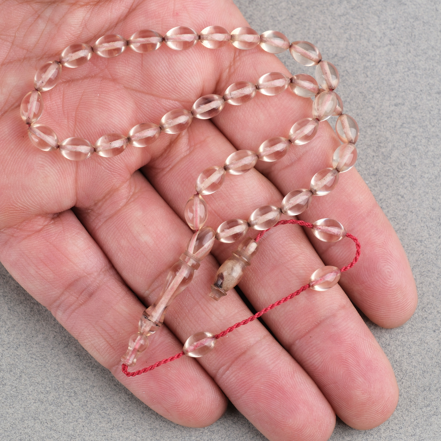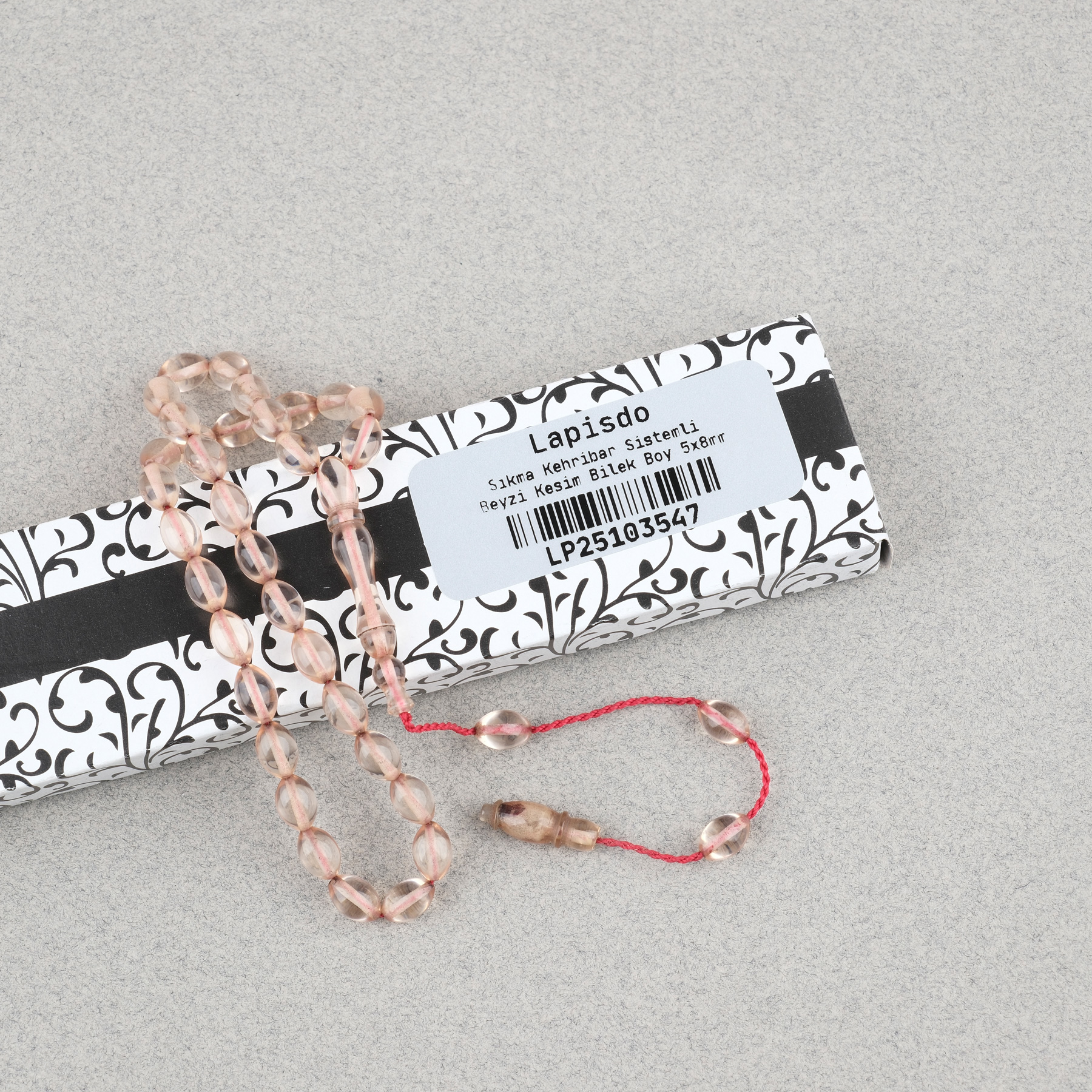 Sıkma Kehribar Beyzi Kesim Sistemli Bilek Boy 5x8mm Tesbih Şeffaf