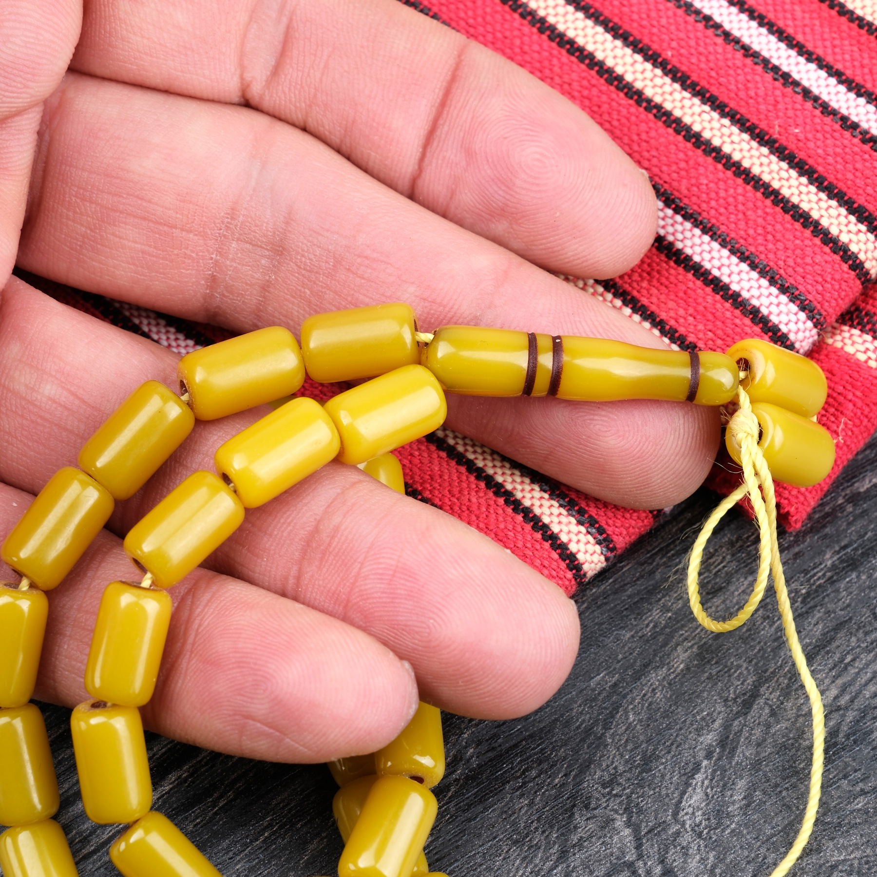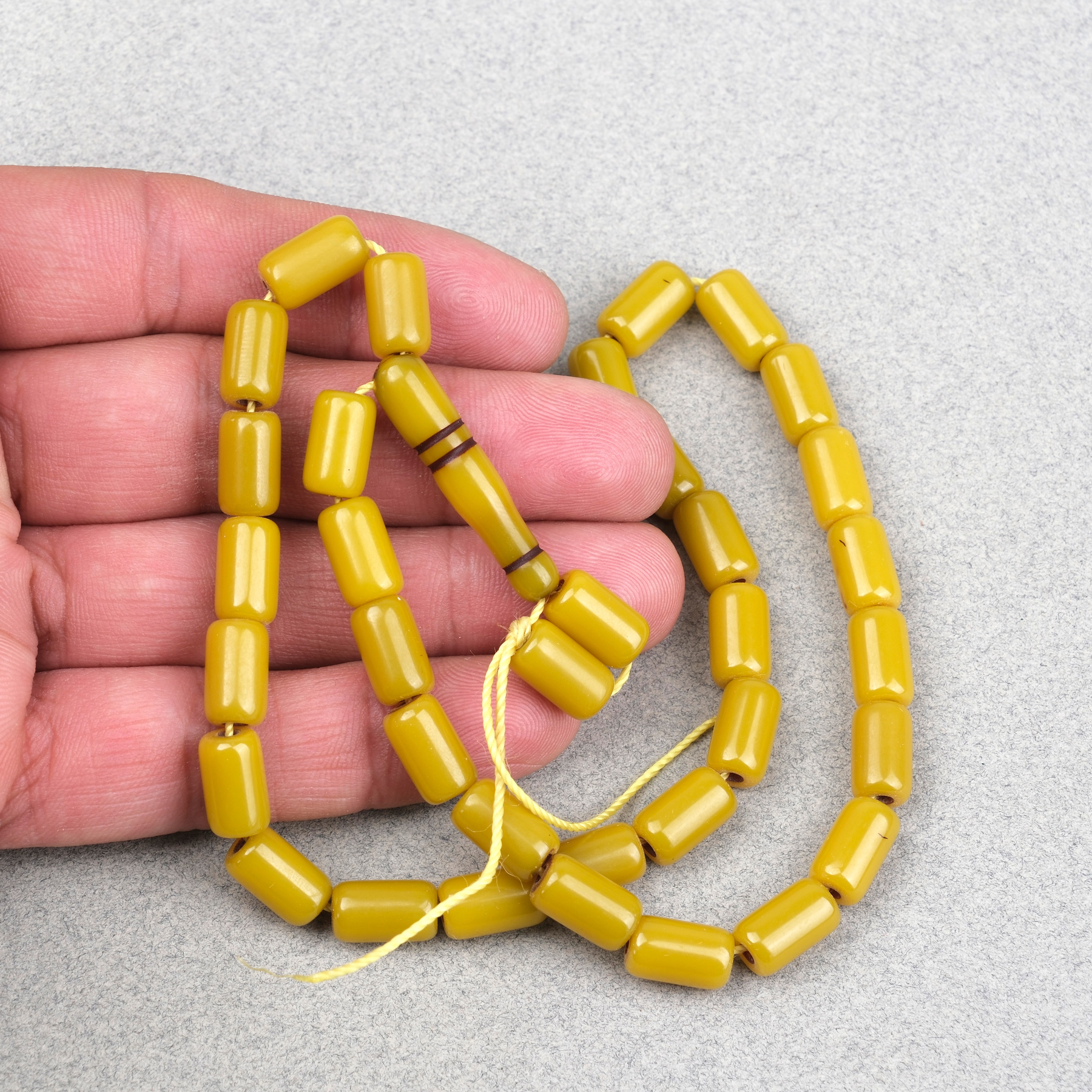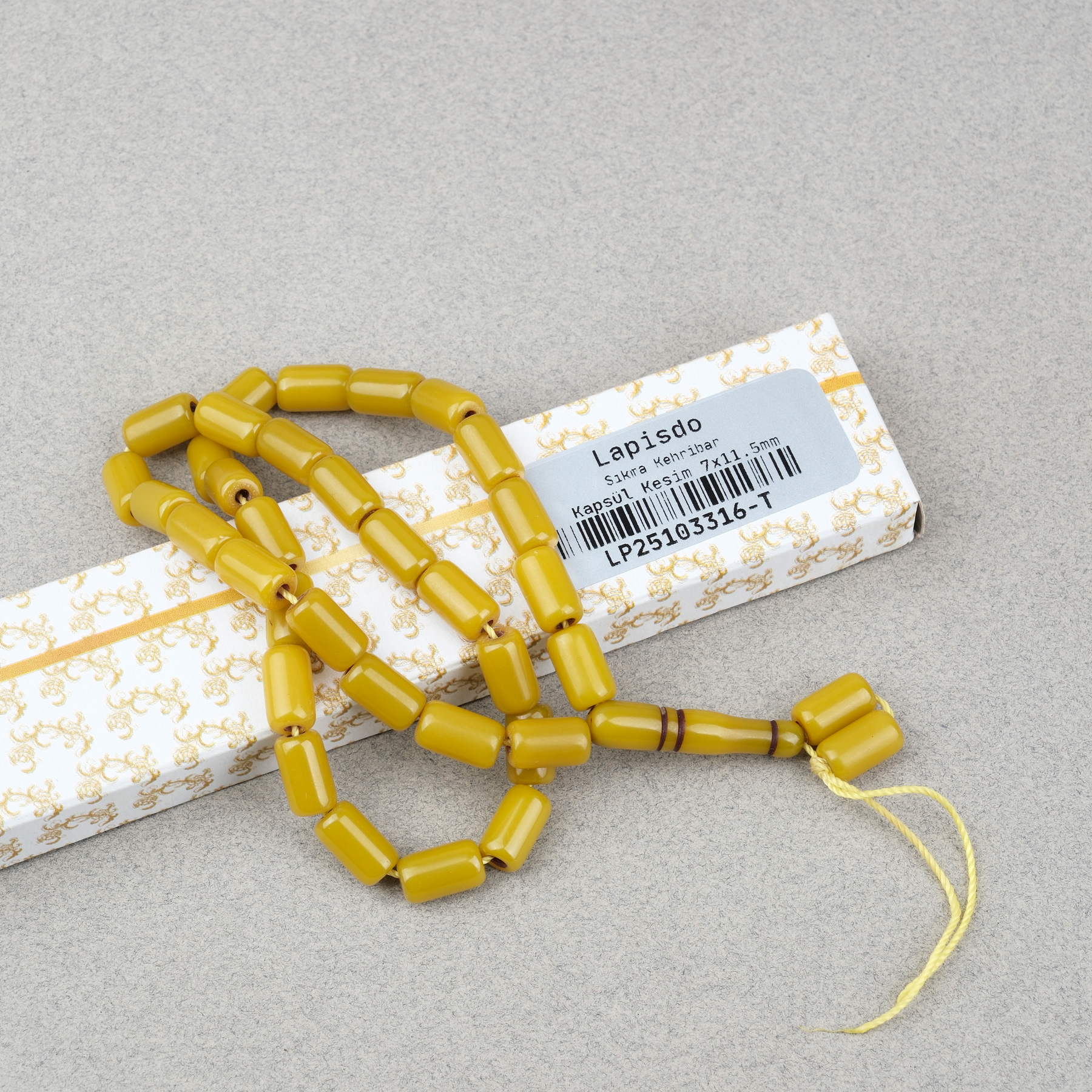 Sıkma Kehribar Kapsül Kesim 7x11.5mm Tesbih - Yağ Yeşili Püskülsüz